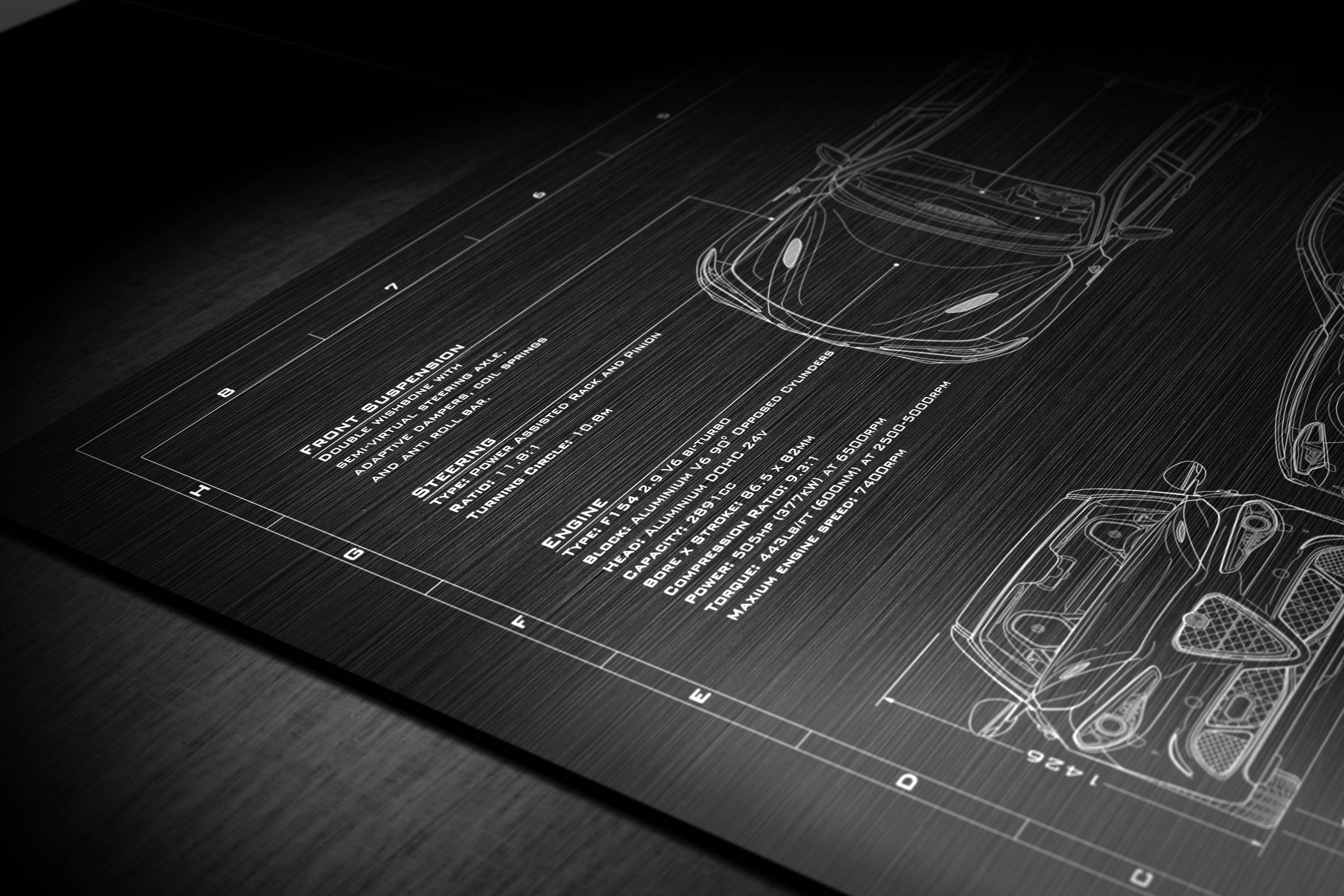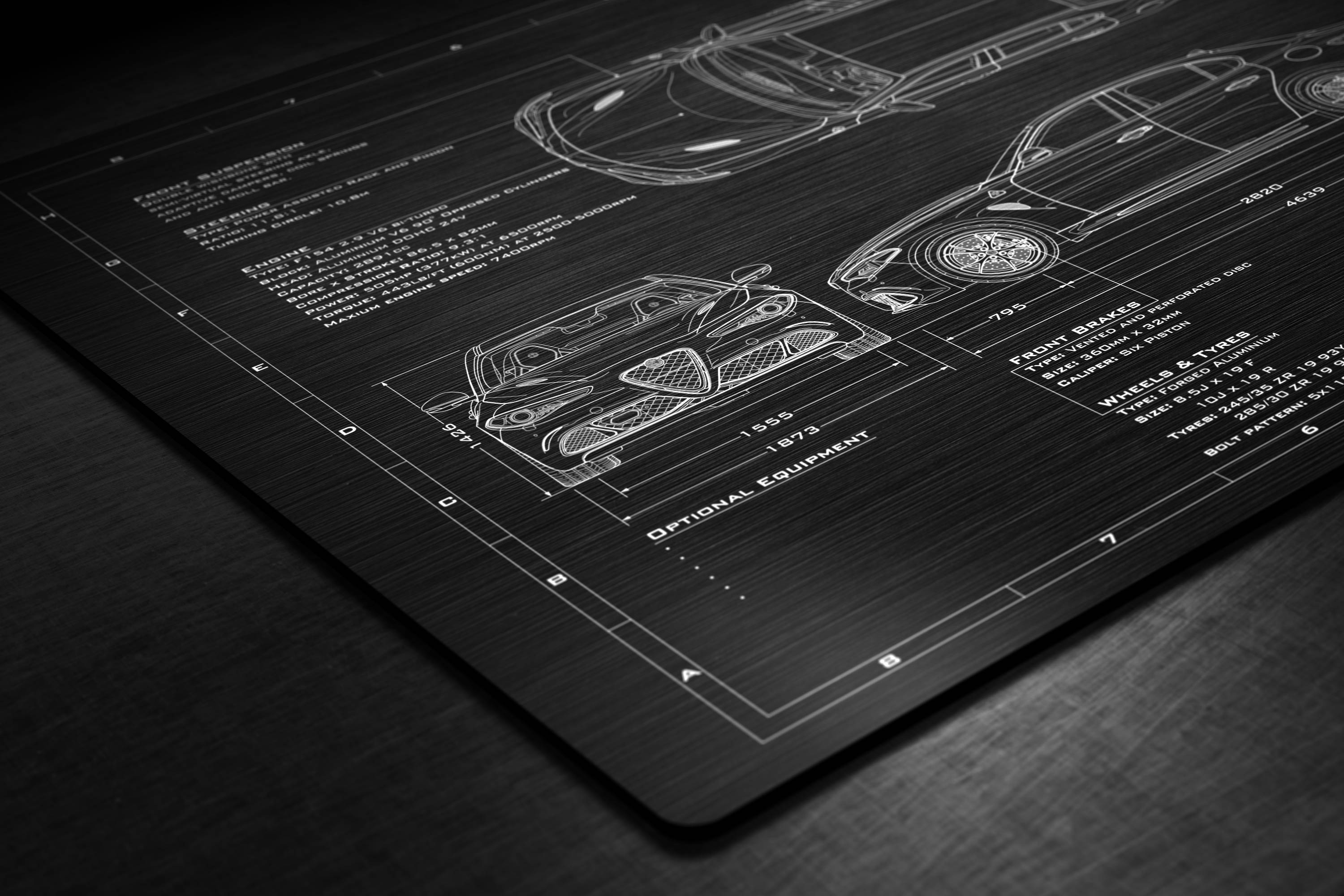 Laser Engraved 2016-2019 Giulia Quadrifoglio Blueprint