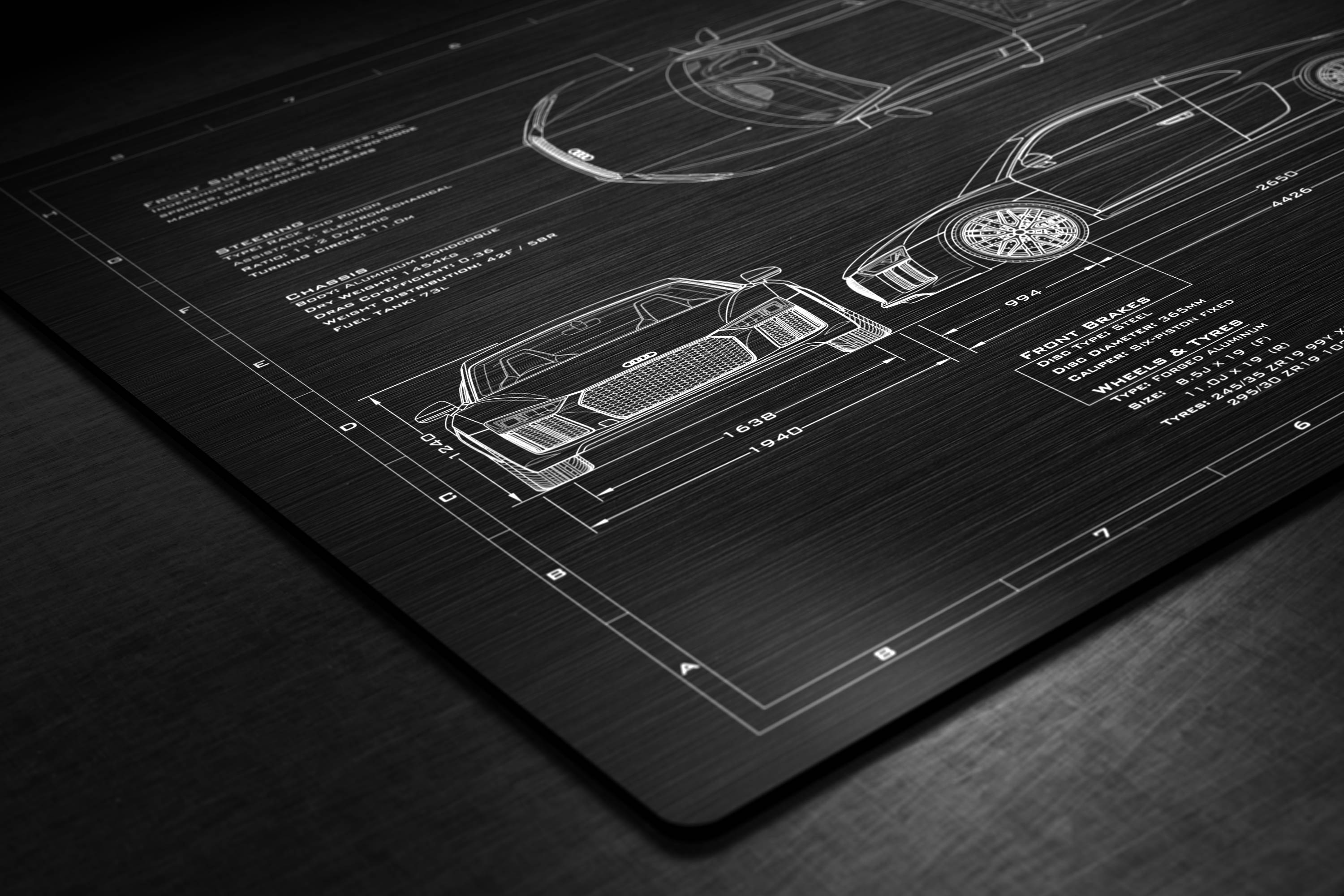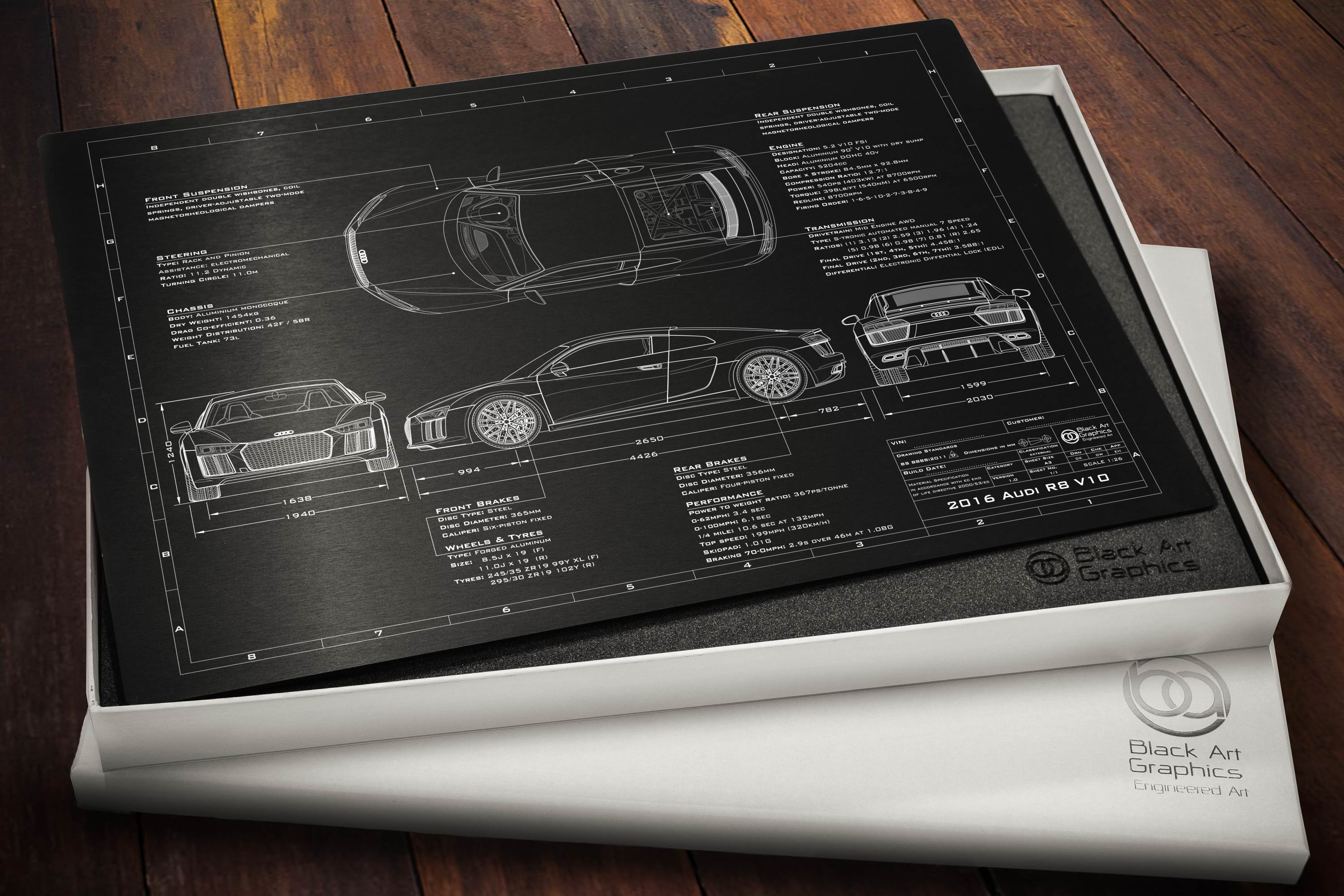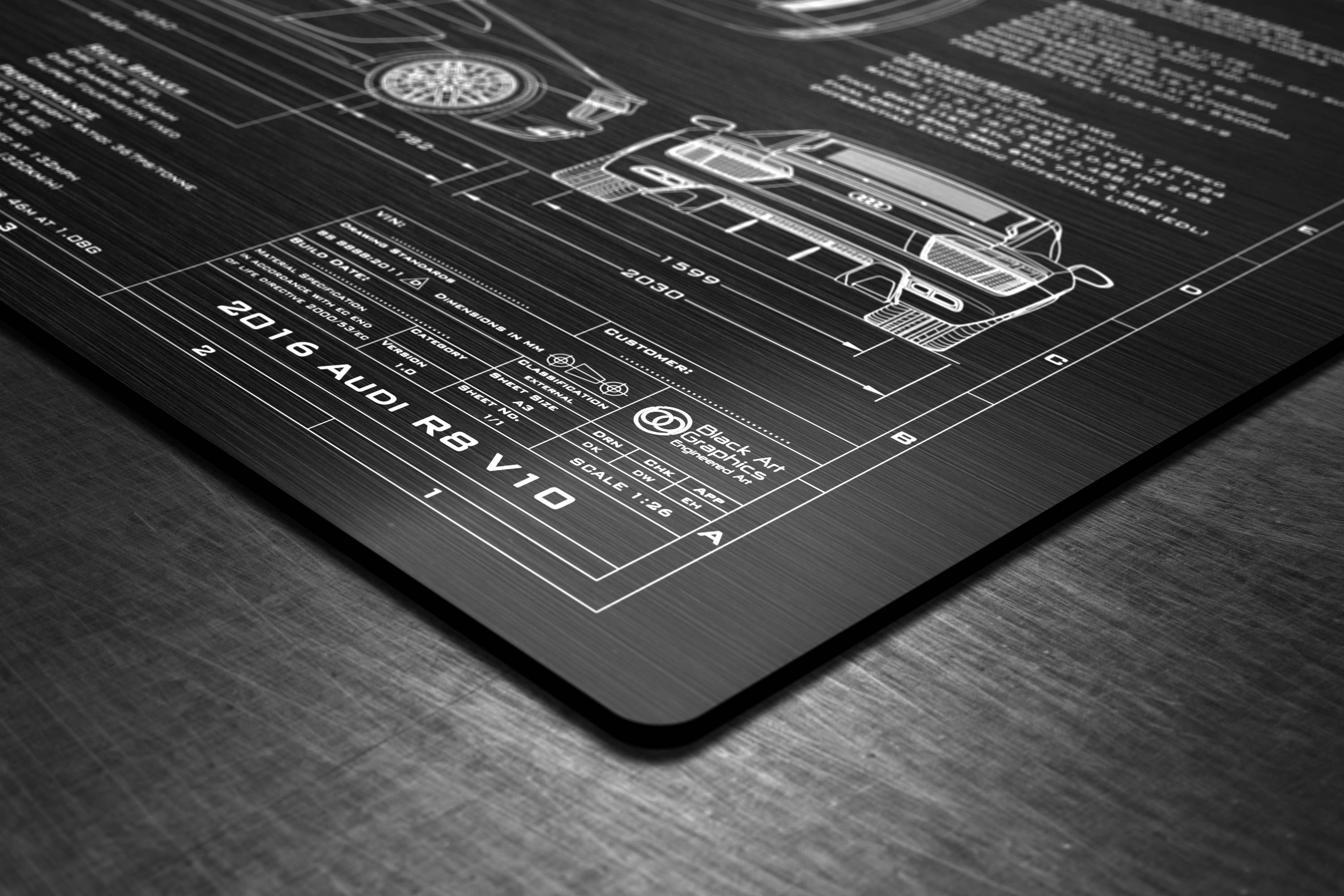 Laser Engraved 2016-2017 R8 V10 Blueprint