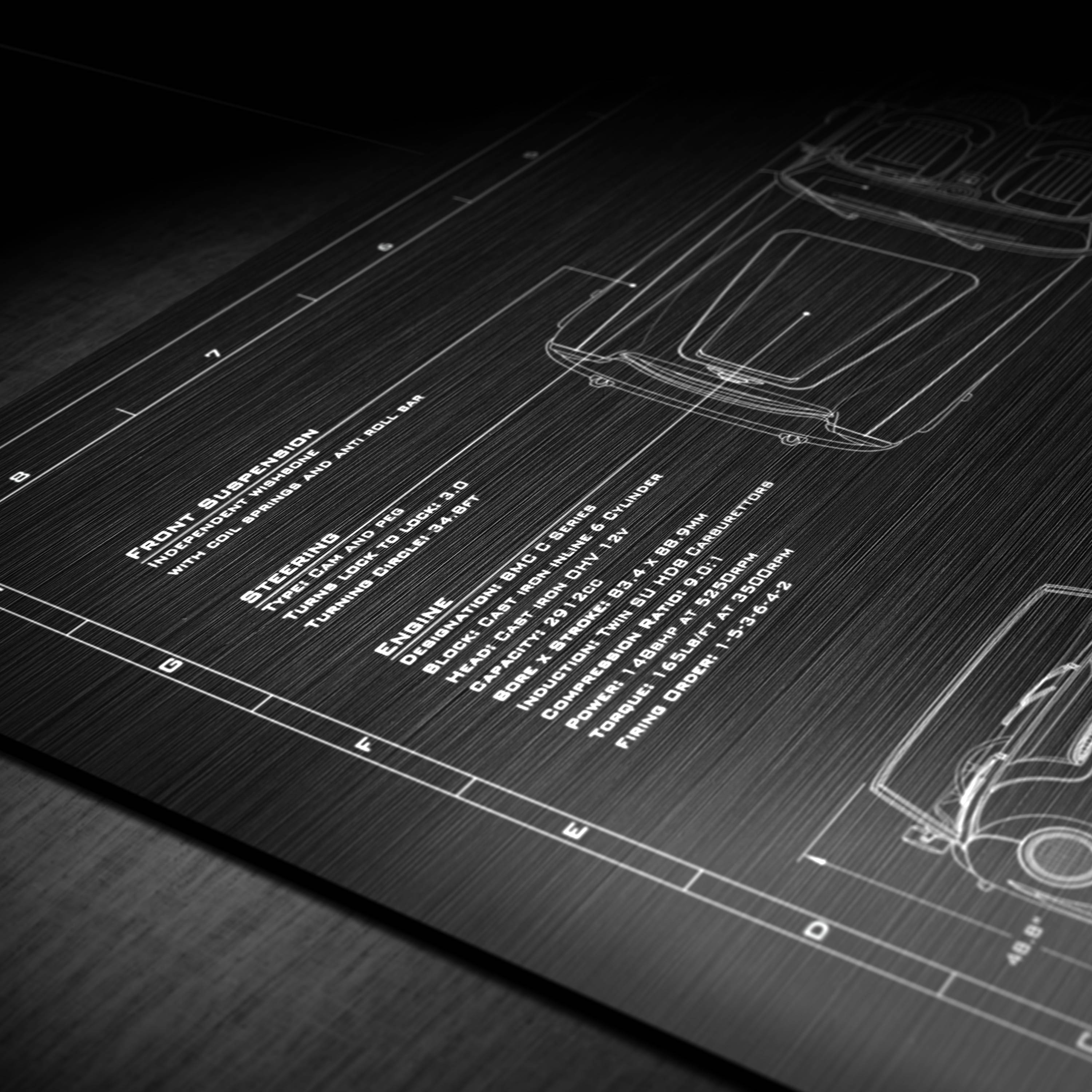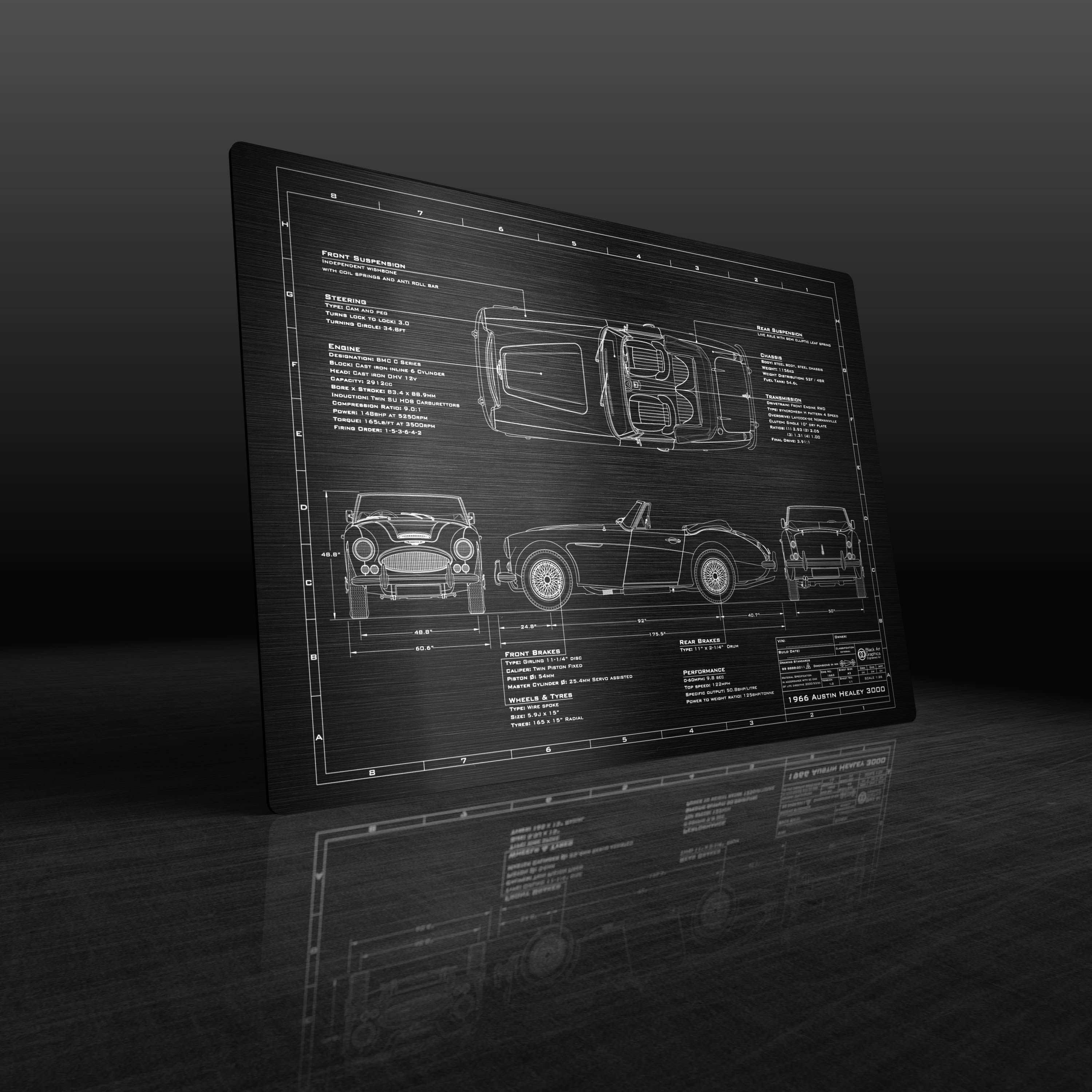 Laser Engraved 1964-1967 Healey 3000 MkIII Blueprint