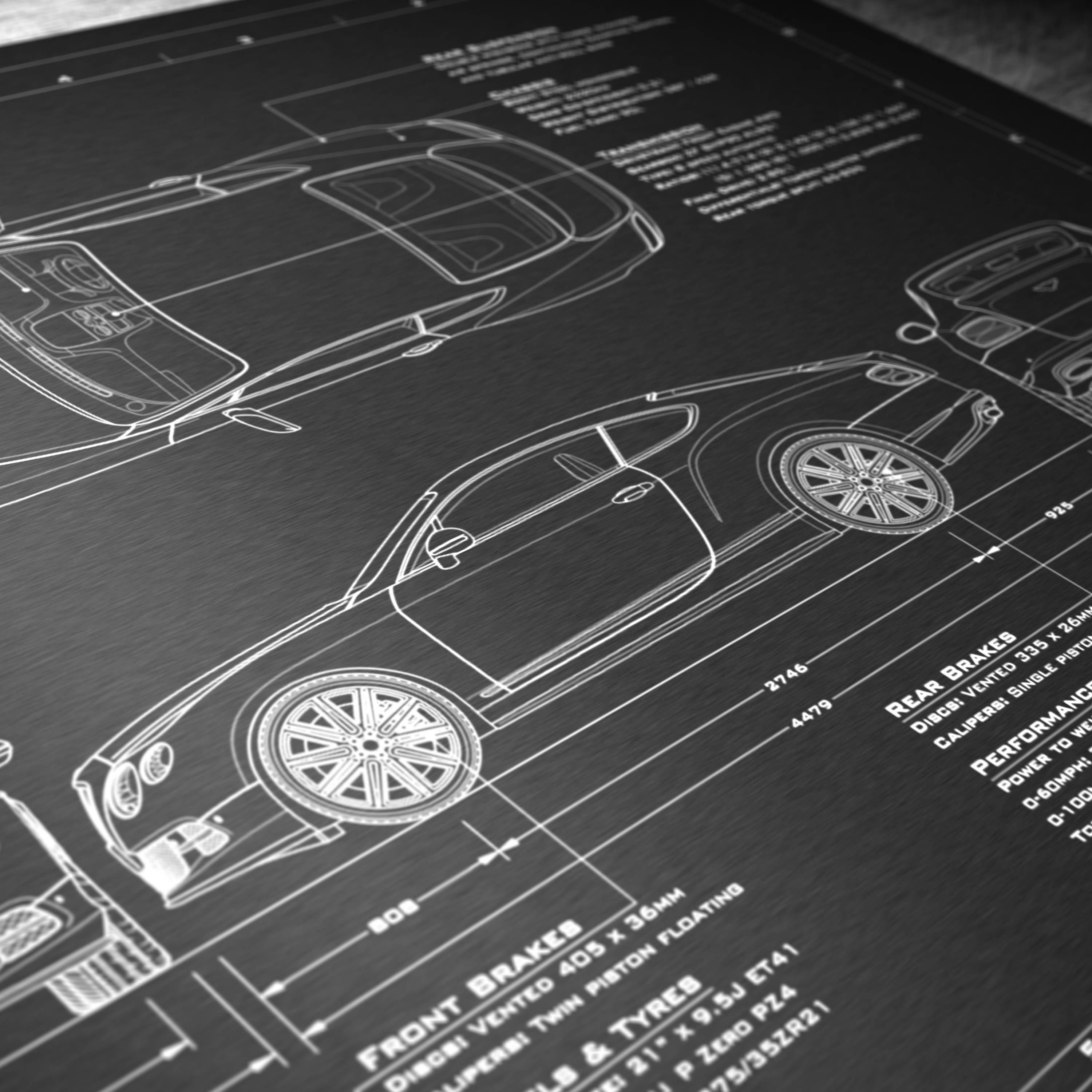 Our signature High Definition Orthographic™ illustrations are 100% original artwork, unavailable anywhere else. Each design begins with a specialist photography session with a real life example to generate the perfect reference images, before being digitally recreated by our talented in house artists to create a uniquely styled technical illustration of unparalleled detail and proportional accuracy.