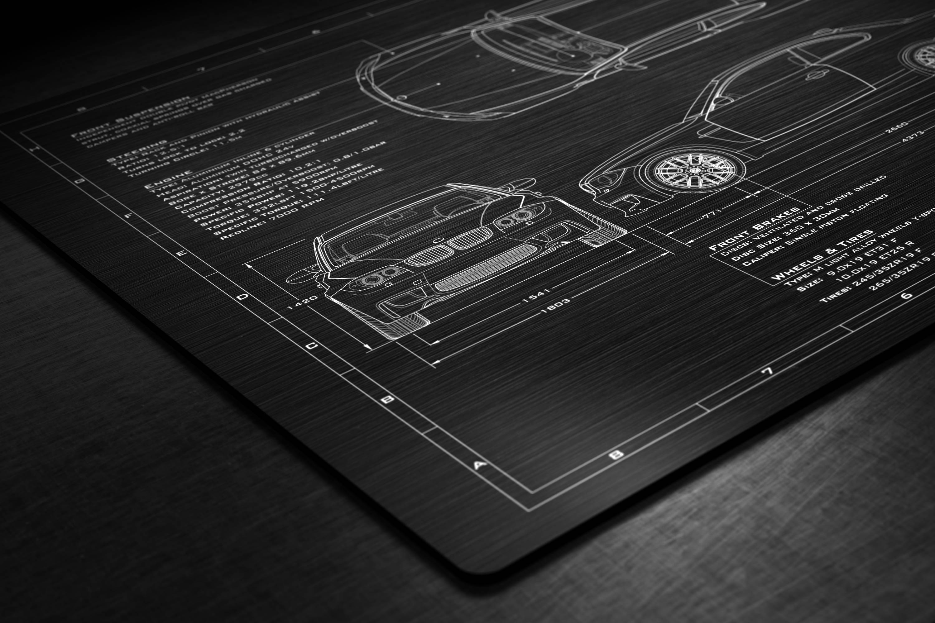Our signature High Definition Orthographic™ illustrations are 100% original artwork, unavailable anywhere else. Each design begins with a specialist photography session with a real life example to generate the perfect reference images, before being digitally recreated by our talented in house artists to create a uniquely styled technical illustration of unparalleled detail and proportional accuracy.