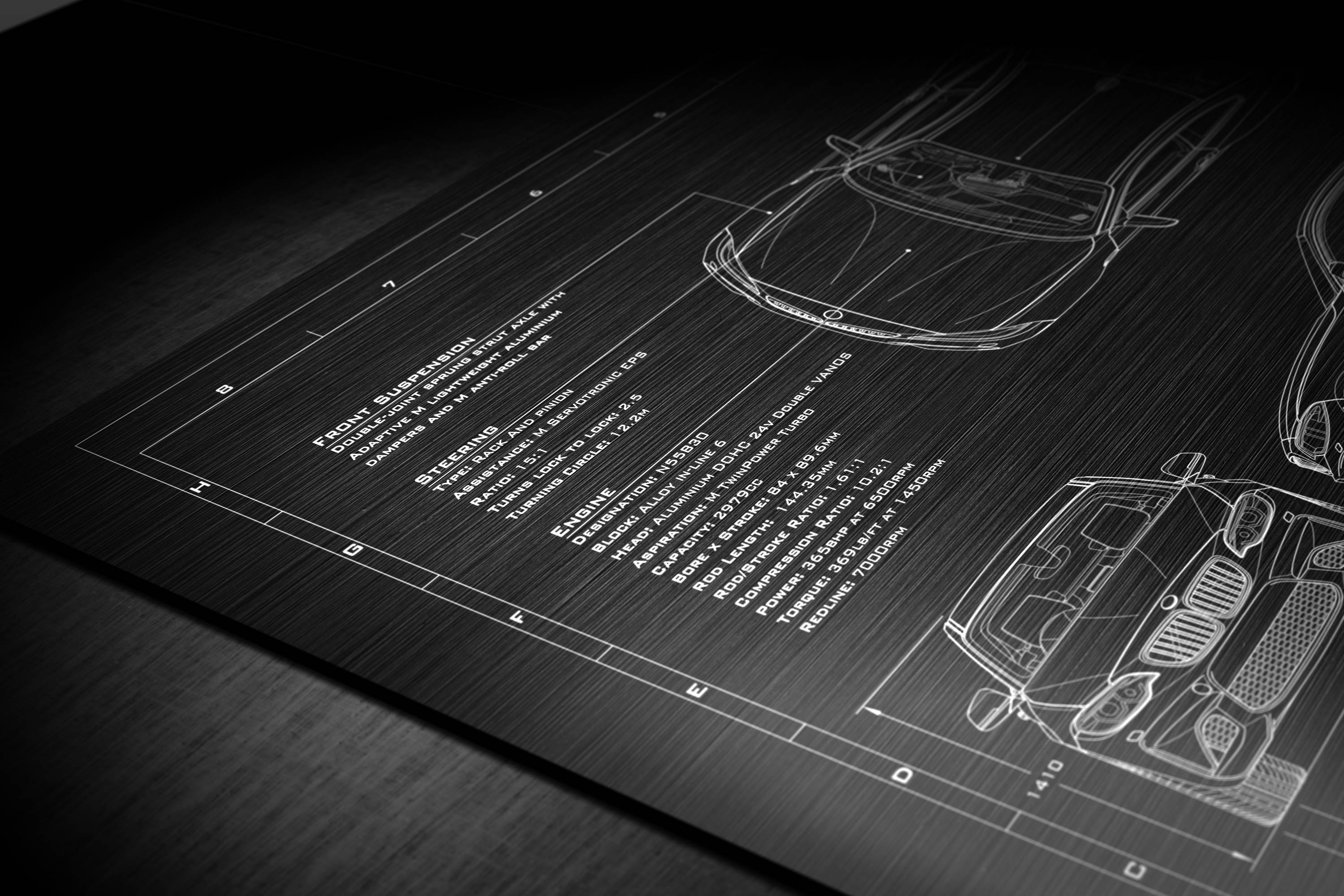 Our signature High Definition Orthographic™ illustrations are 100% original artwork, unavailable anywhere else. Each design begins with a specialist photography session with a real life example to generate the perfect reference images, before being digitally recreated by our talented in house artists to create a uniquely styled technical illustration of unparalleled detail and proportional accuracy.