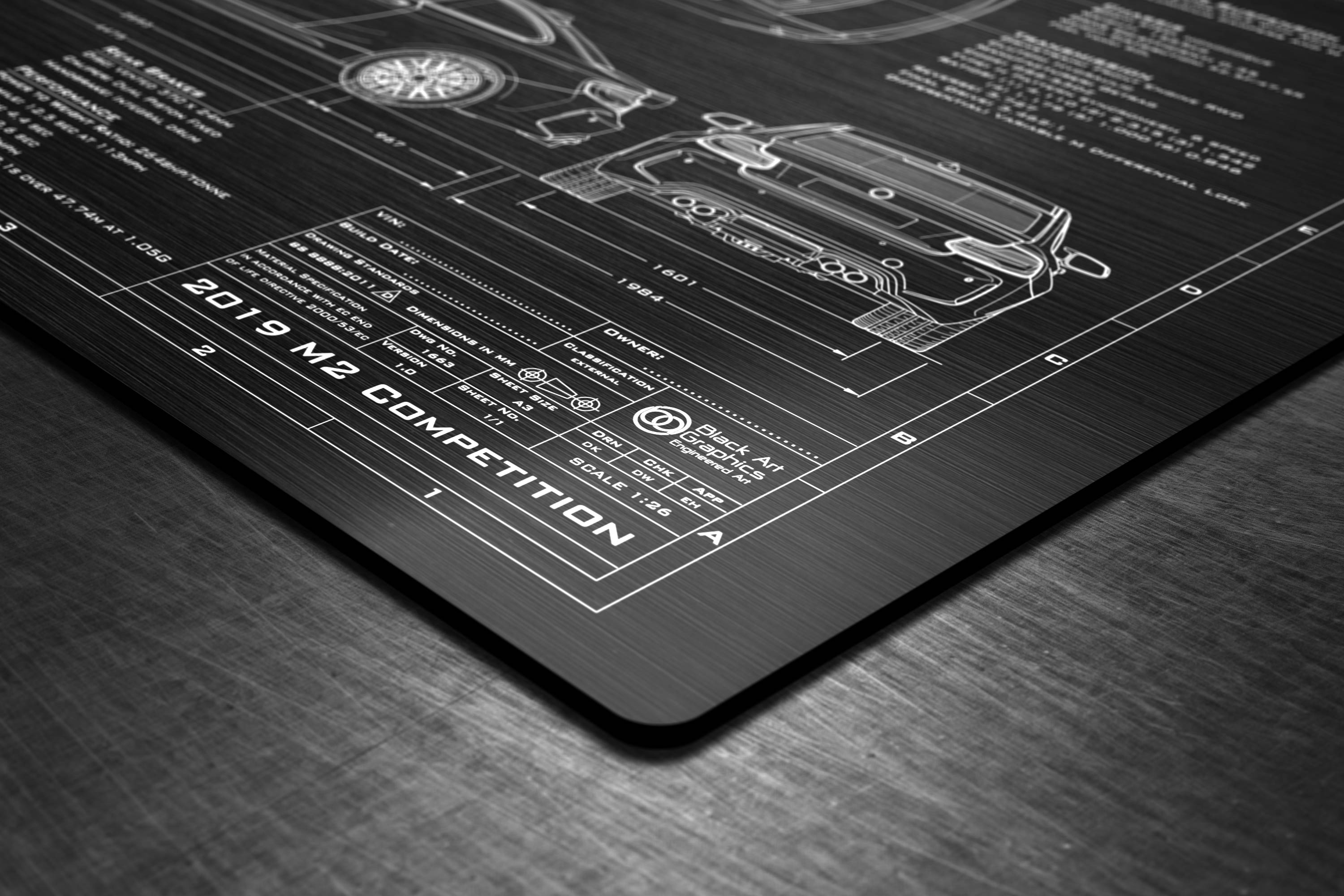 Laser Engraved 2018-2019 M2 Competition Blueprint