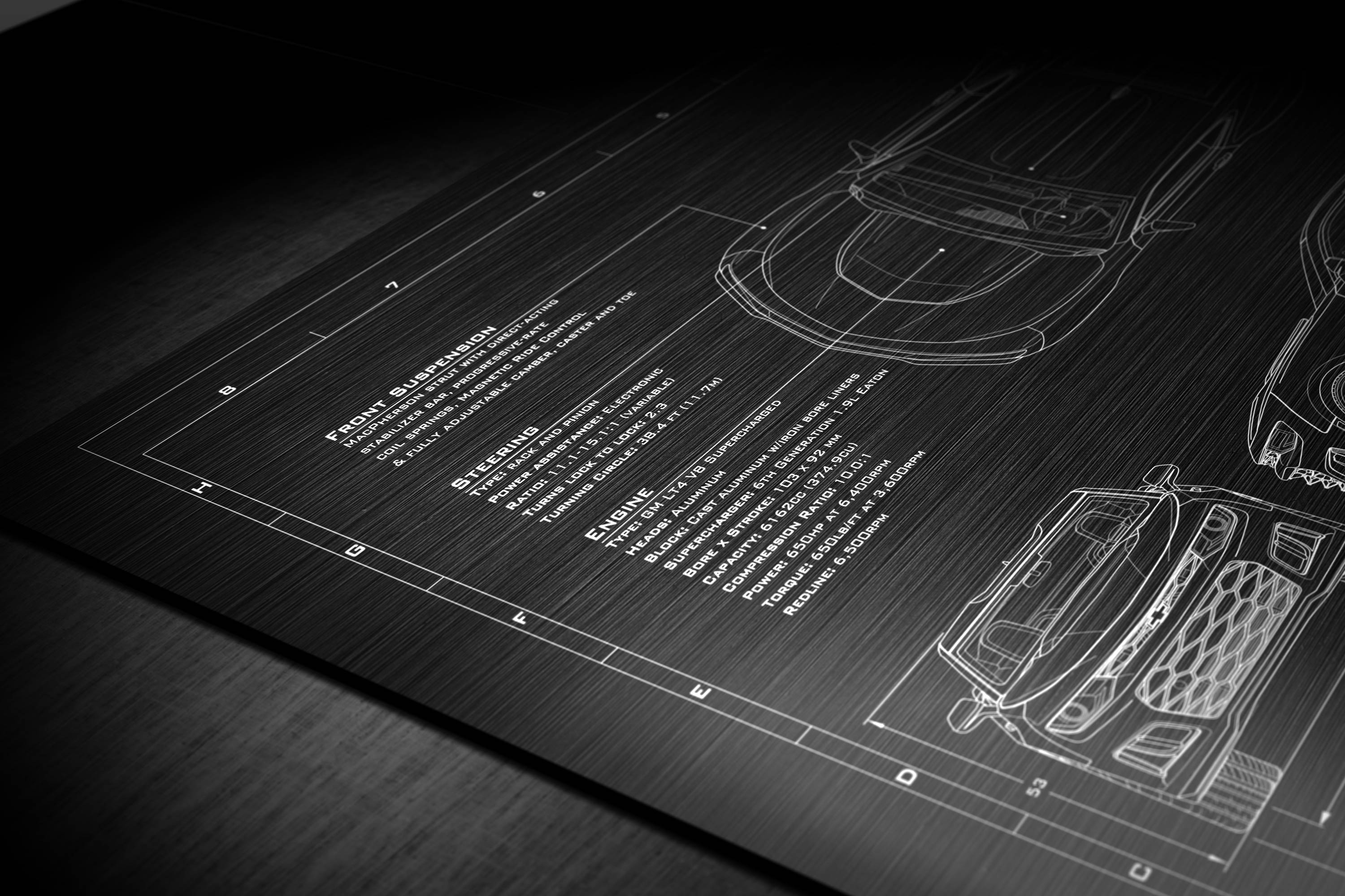 Our signature High Definition Orthographic™ illustrations are 100% original artwork, unavailable anywhere else. Each design begins with a specialist photography session with a real life example to generate the perfect reference images, before being digitally recreated by our talented in house artists to create a uniquely styled technical illustration of unparalleled detail and proportional accuracy.