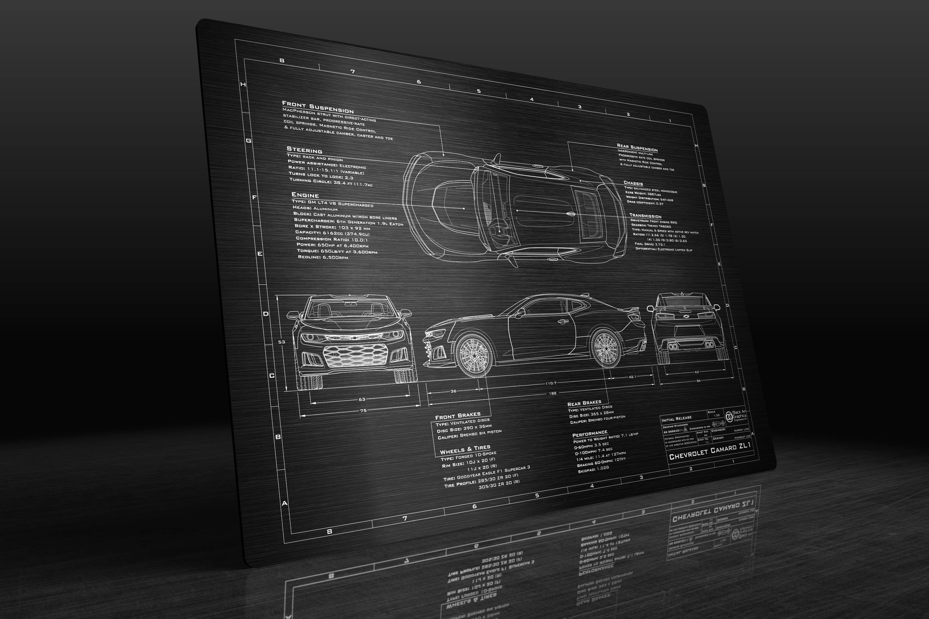 Laser Engraved 2017-2020 Camaro ZL1 Blueprint