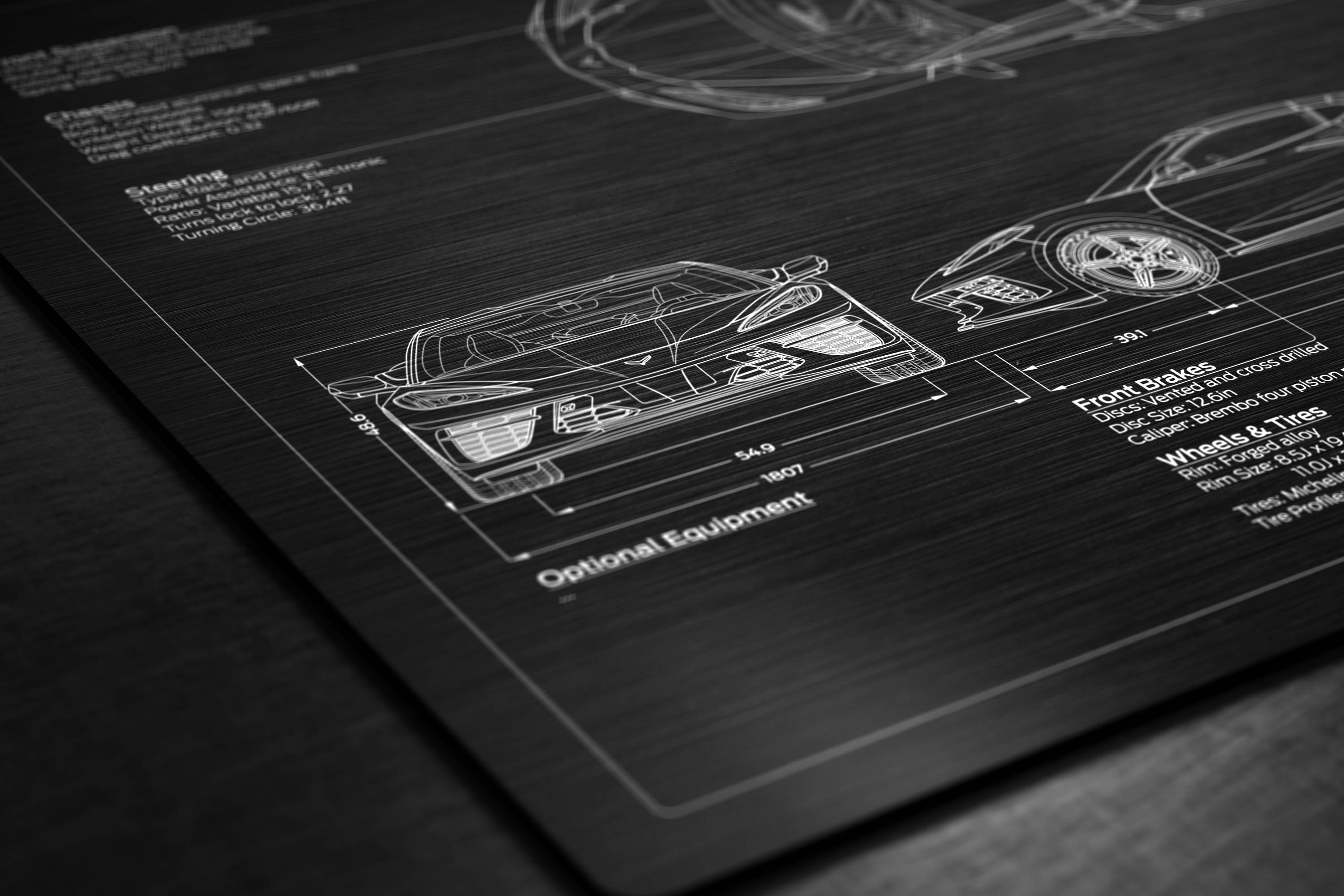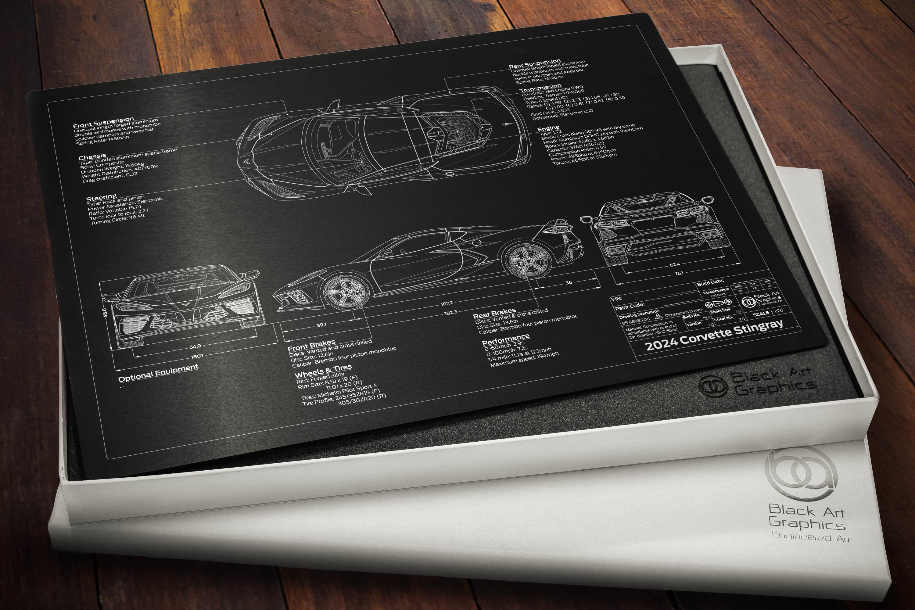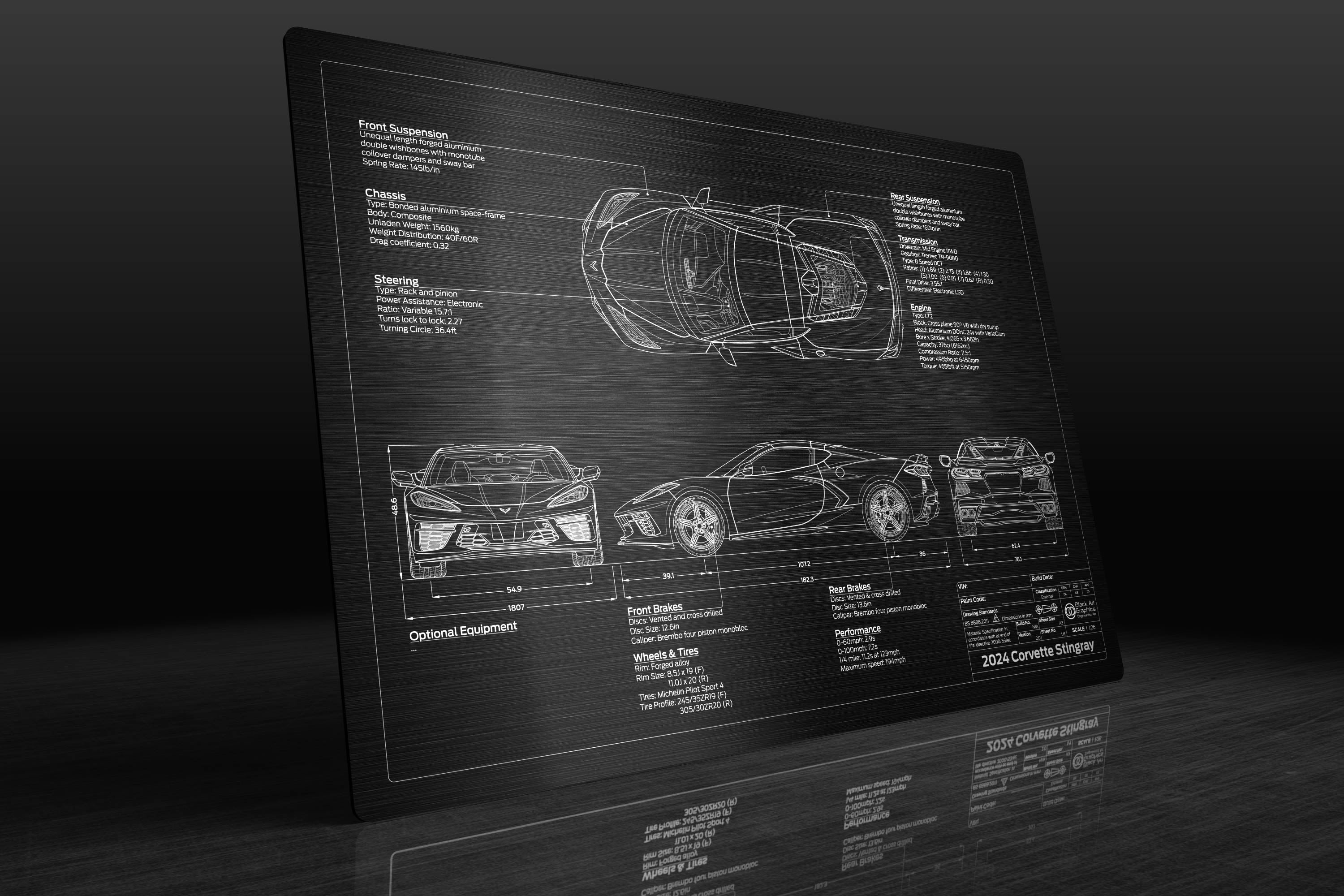 Laser Engraved 2020-2024 Corvette Stingray Blueprint
