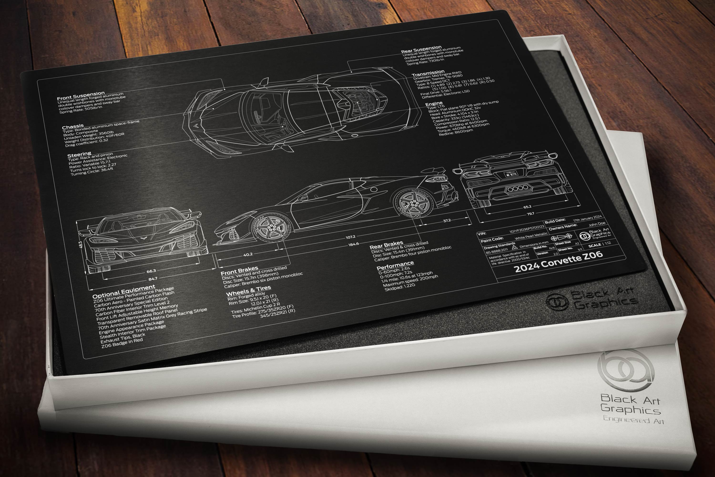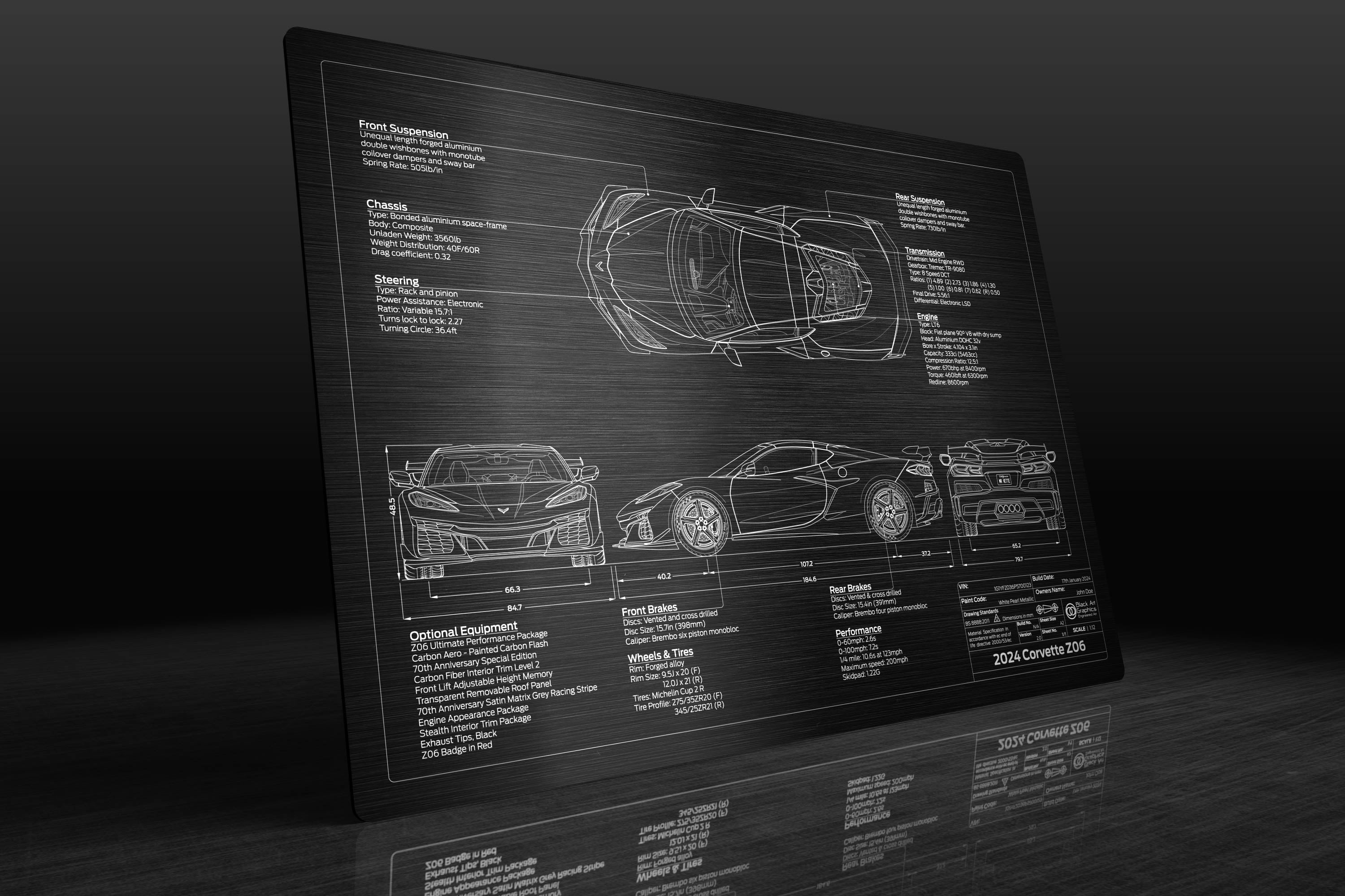 Whether you are looking for the perfect gift for a loved one, or simply a unique piece of art to commemorate your Corvette Z06 ownership, our 2021-2024 Chevrolet Corvette Z06 'Engineered Art' plaque is the perfect solution.