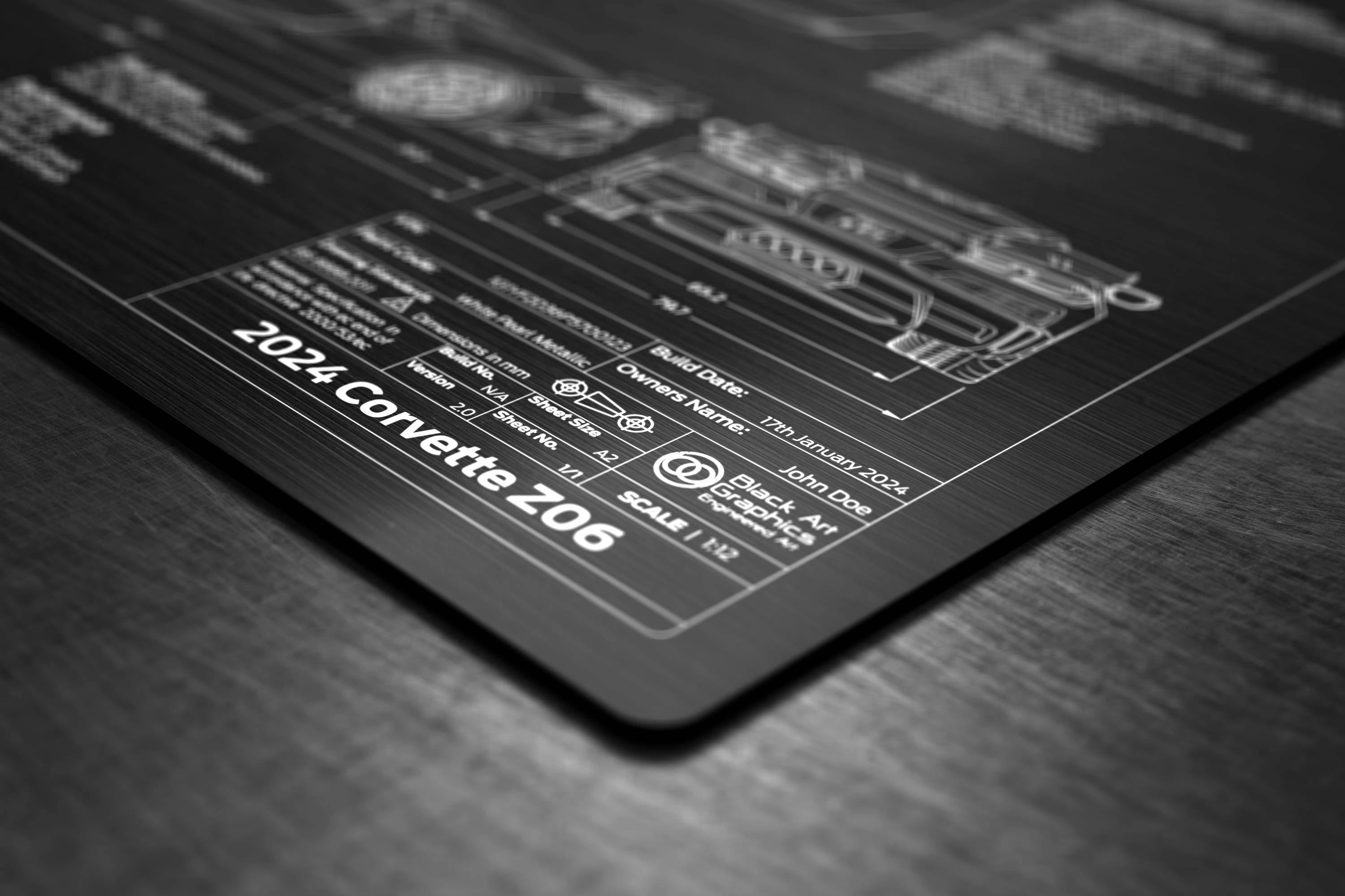 Laser Engraved 2021-2024 Corvette Z06 Blueprint