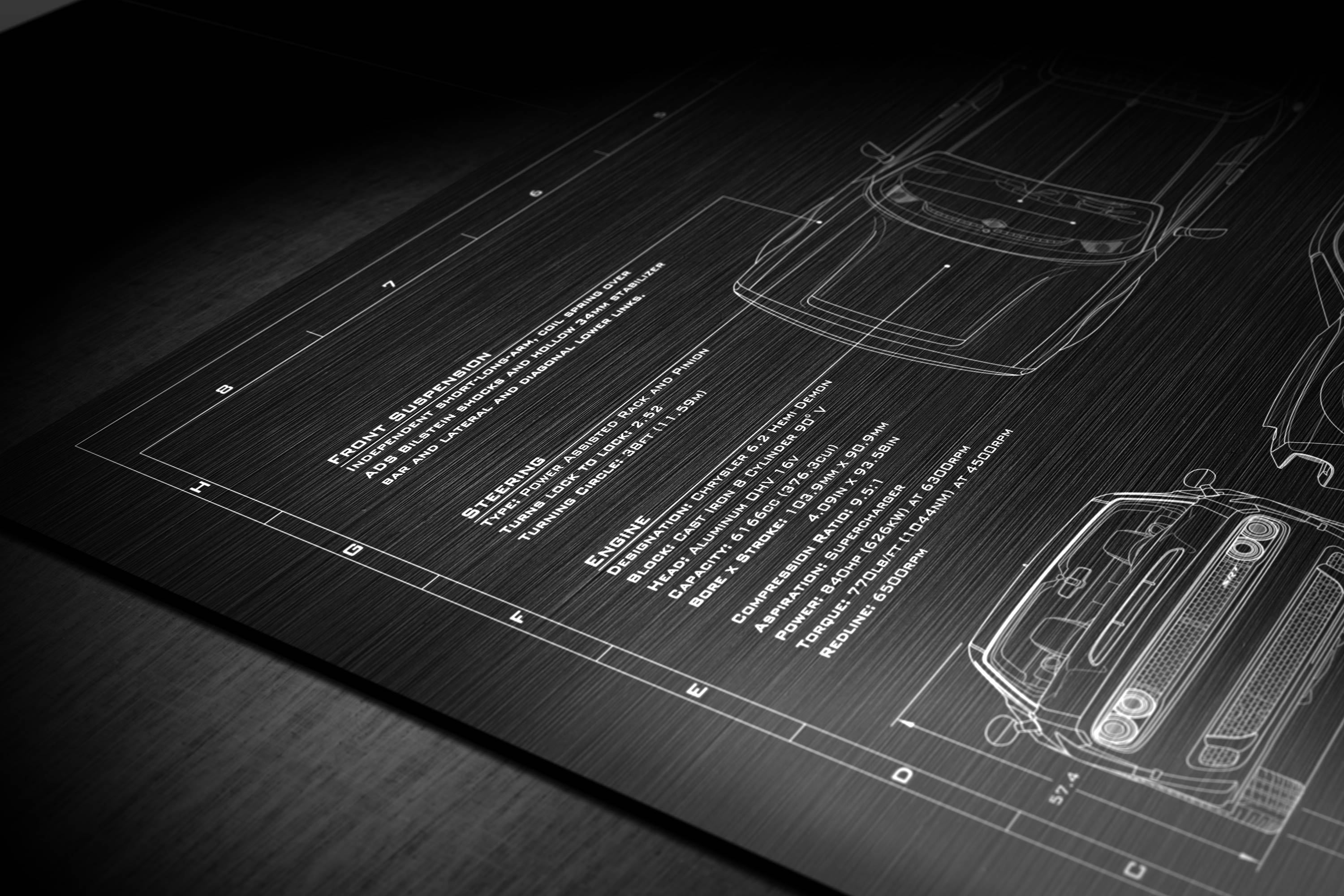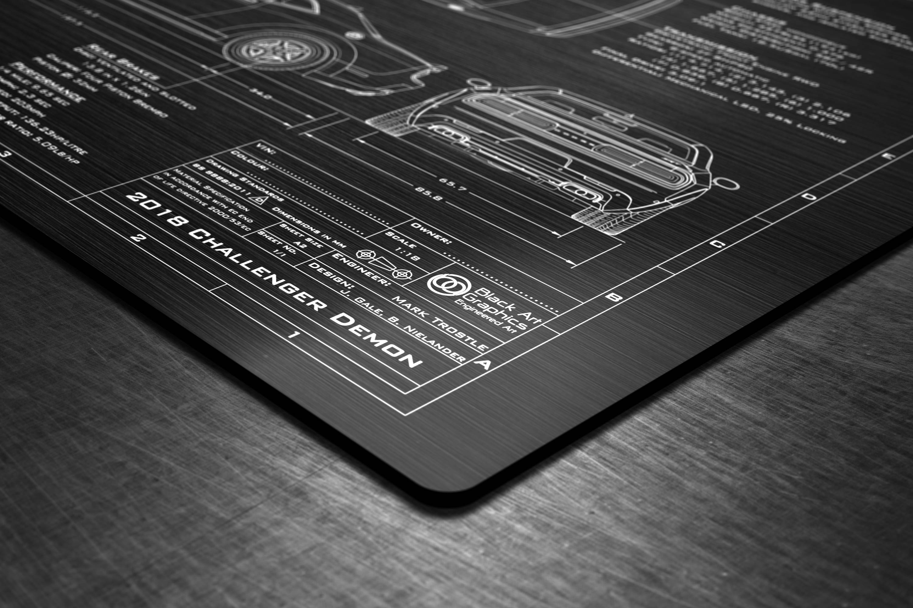 Laser Engraved 2017-2018 Challenger SRT Demon Blueprint