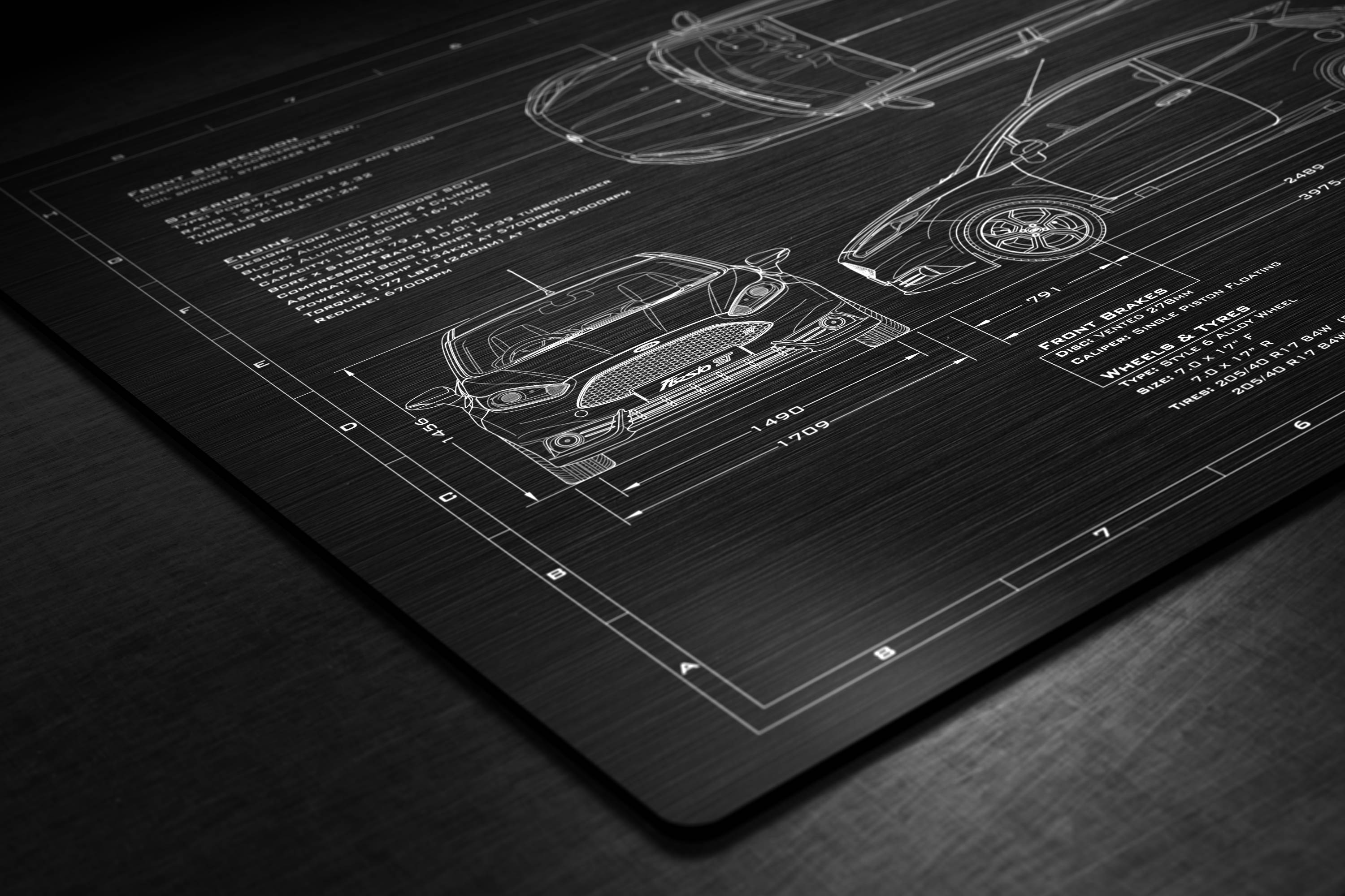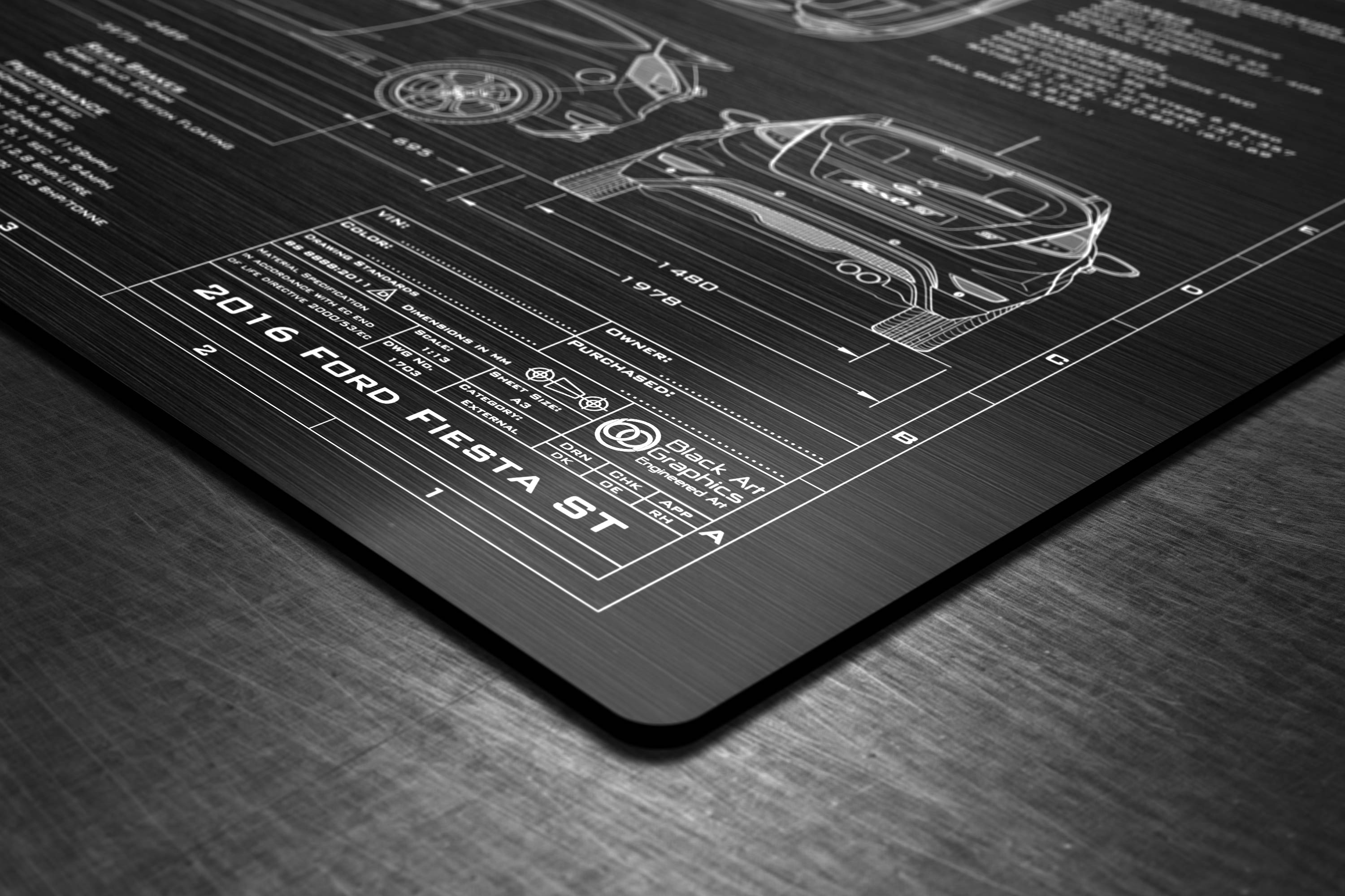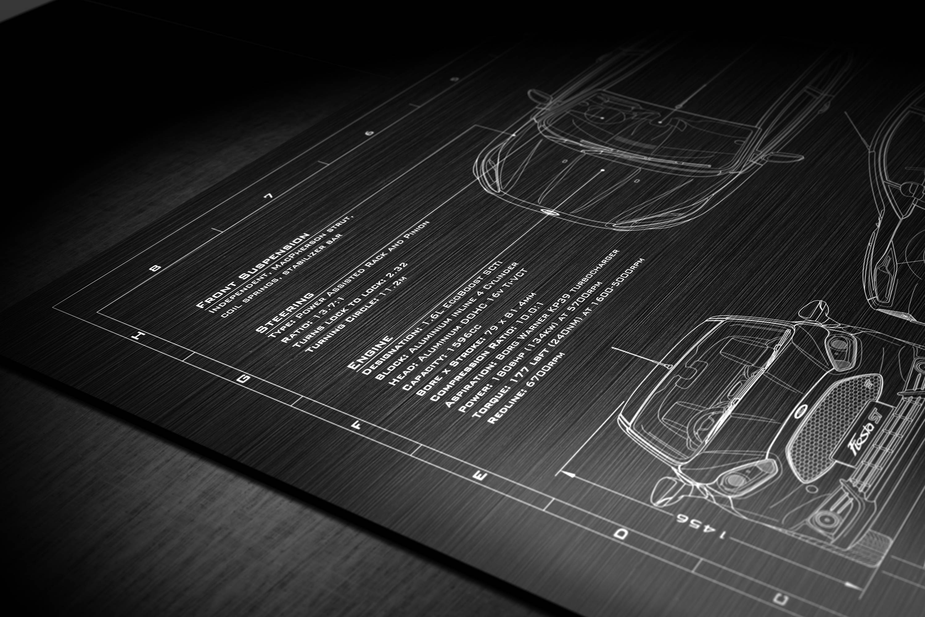 Laser Engraved 2013-2017 Fiesta ST Blueprint