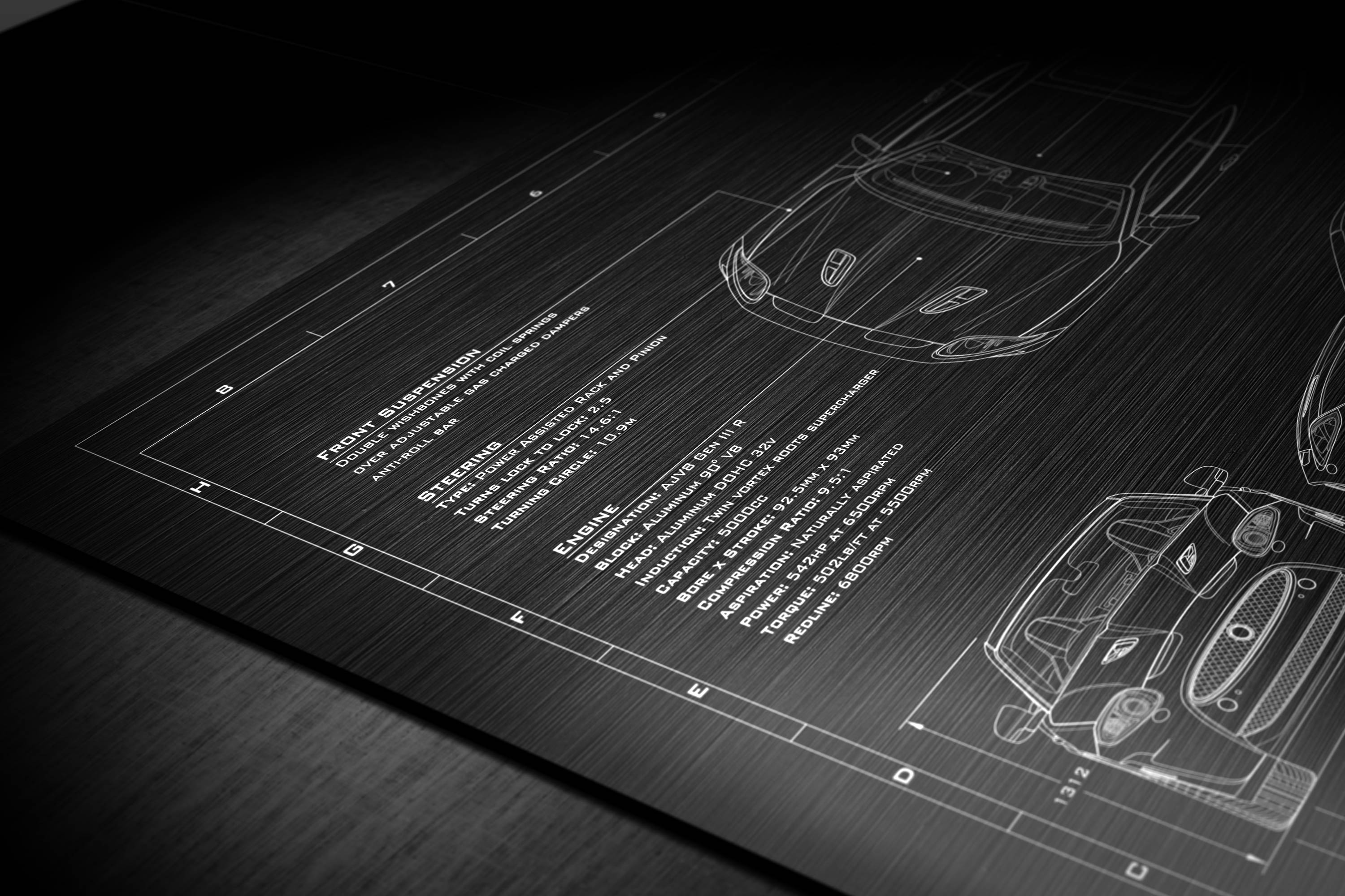 Our signature High Definition Orthographic™ illustrations are 100% original artwork, unavailable anywhere else. Each design begins with a specialist photography session with a real life example to generate the perfect reference images, before being digitally recreated by our talented in house artists to create a uniquely styled technical illustration of unparalleled detail and proportional accuracy.