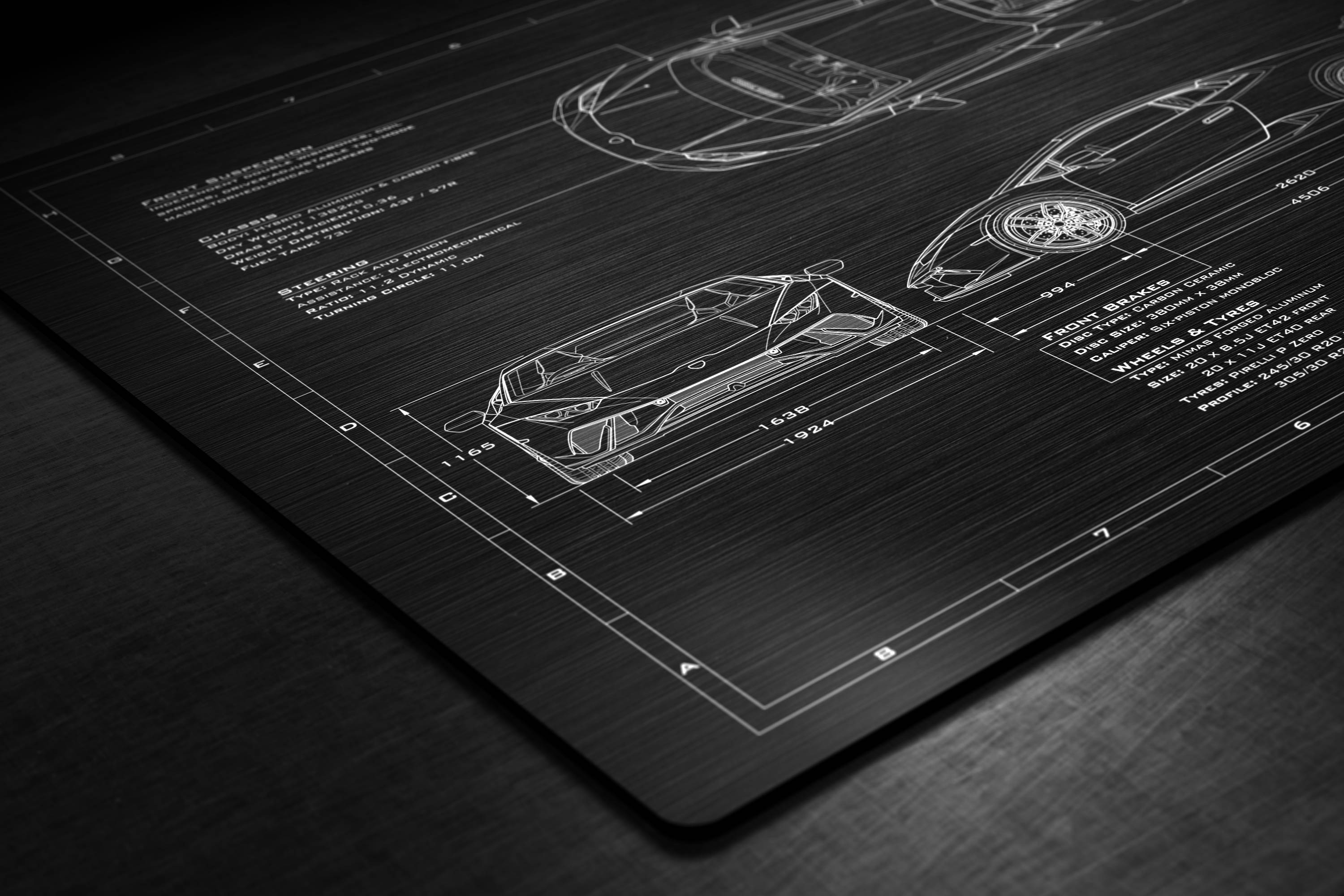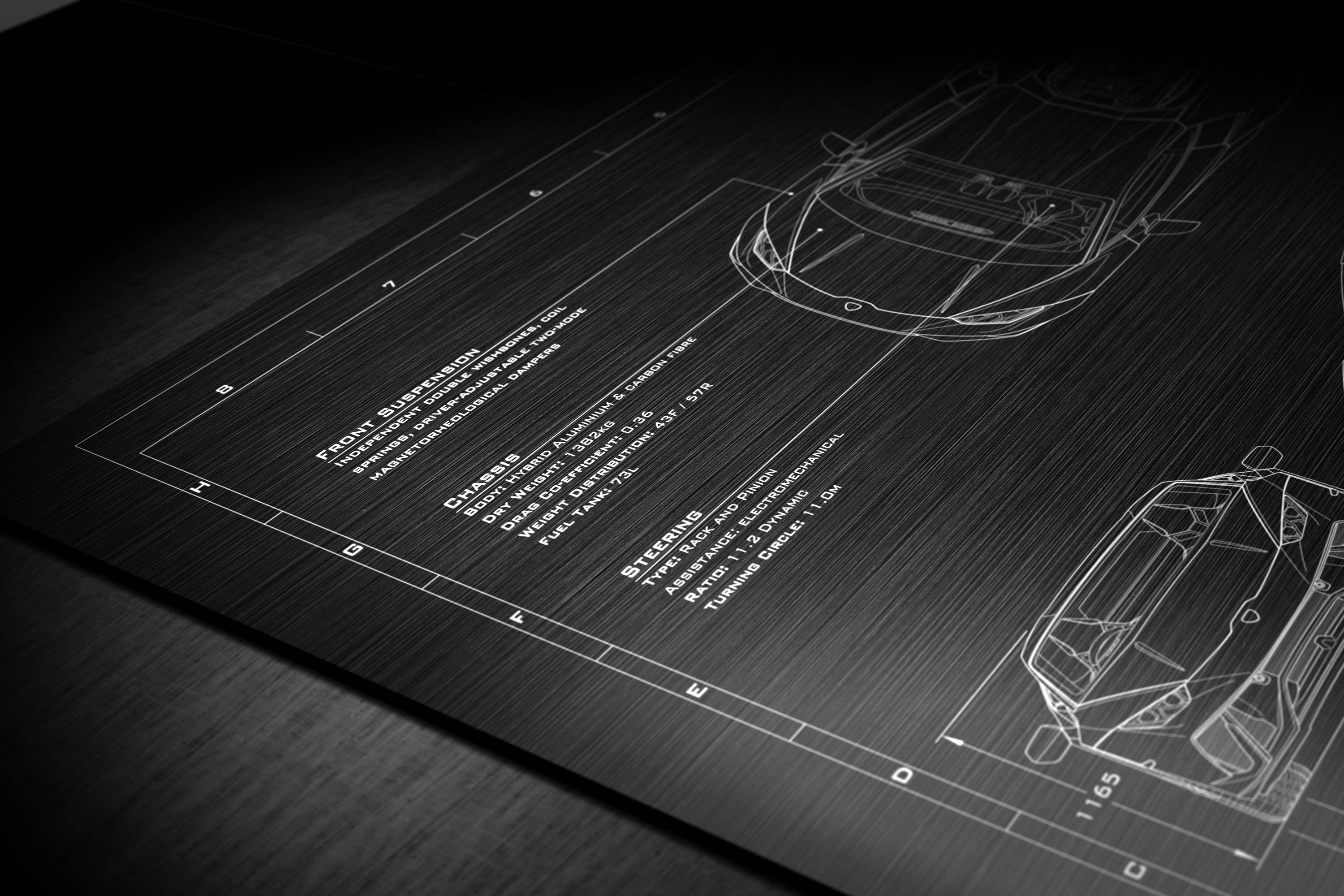Laser Engraved 2016-2018 Huracan Performante Blueprint