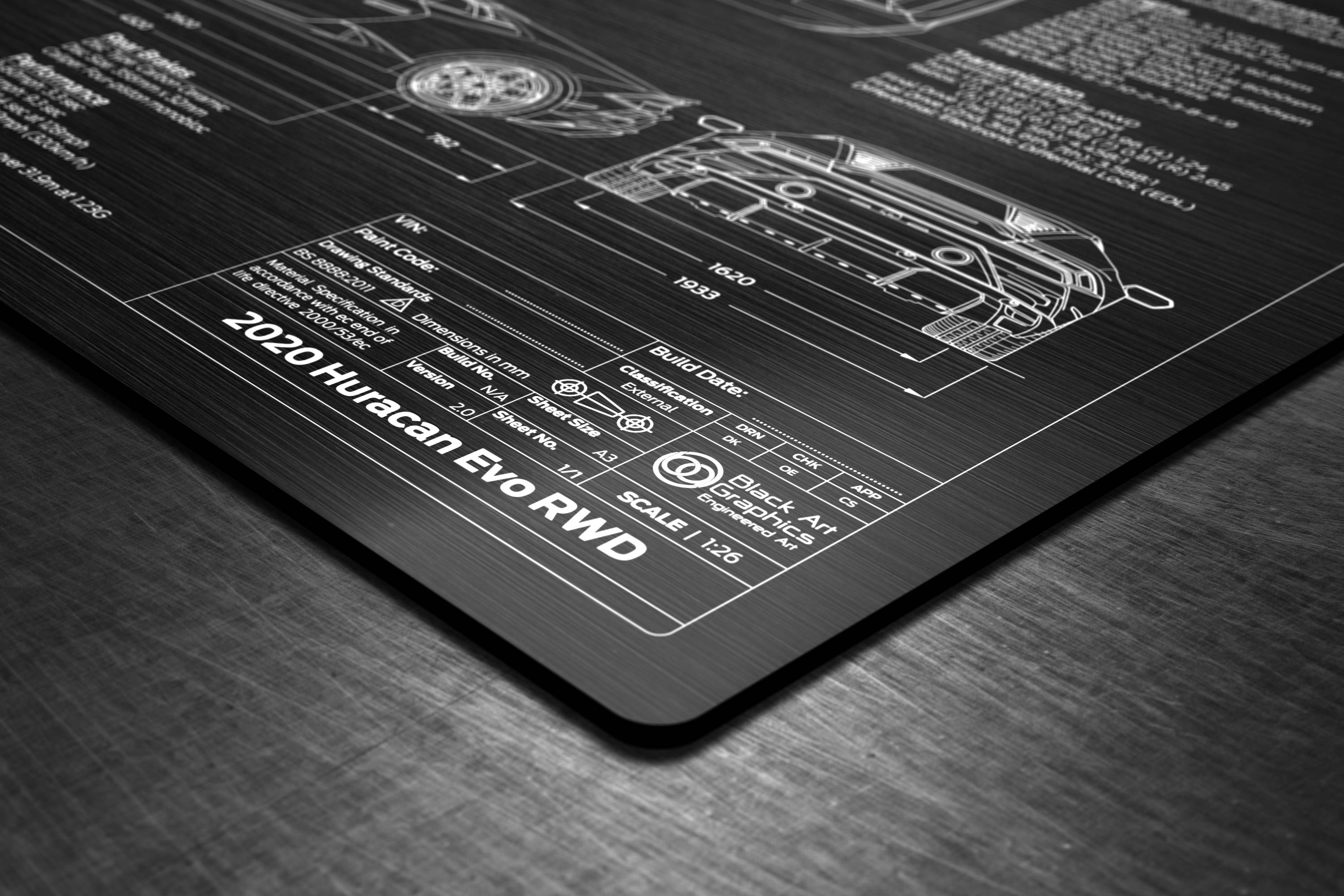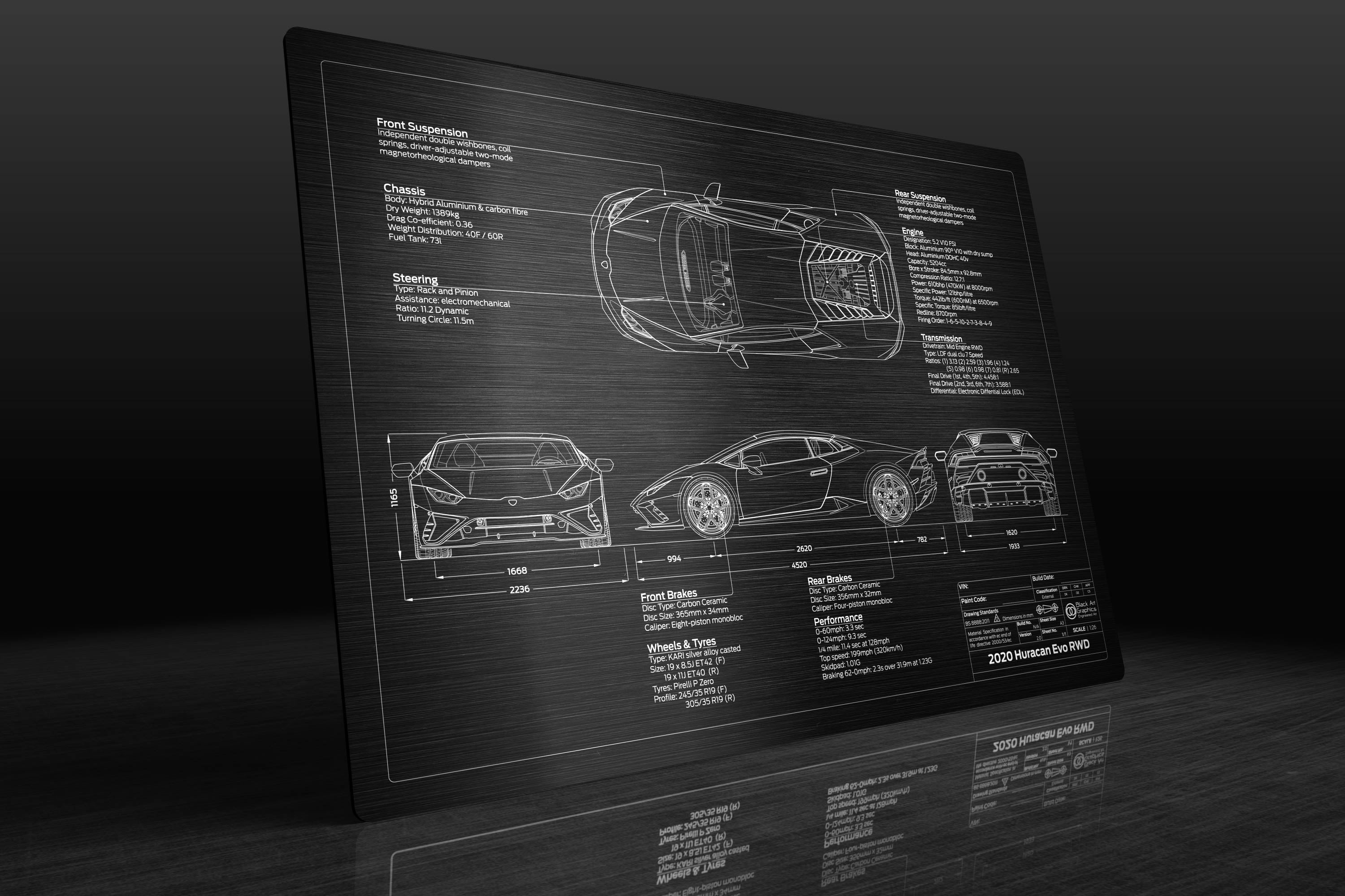 Laser Engraved 2019-2022 Huracan Evo Blueprint