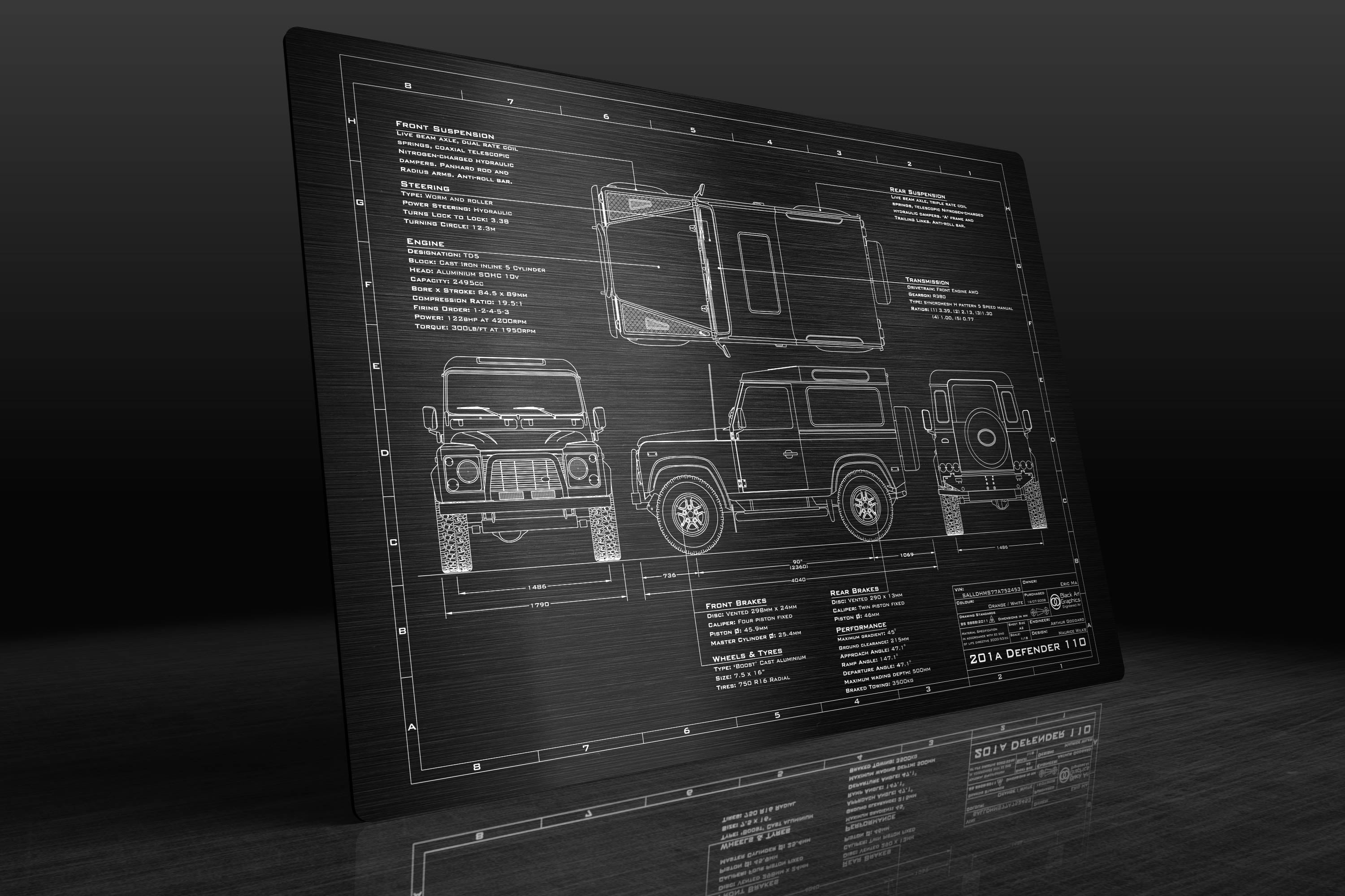 Laser Engraved 1990-2015 Defender 90 Blueprint