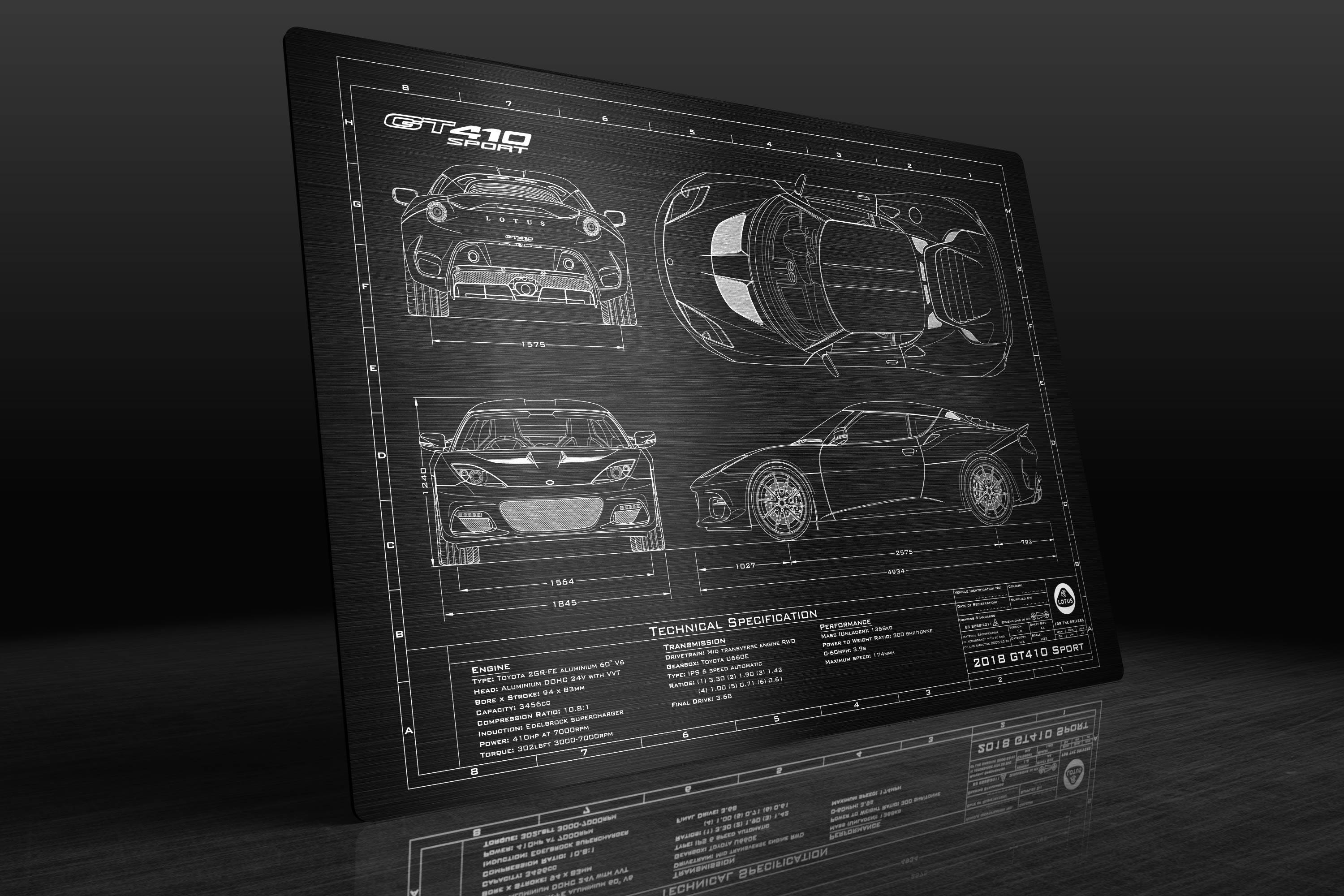 Laser Engraved 2018-2020 Evora GT Blueprint