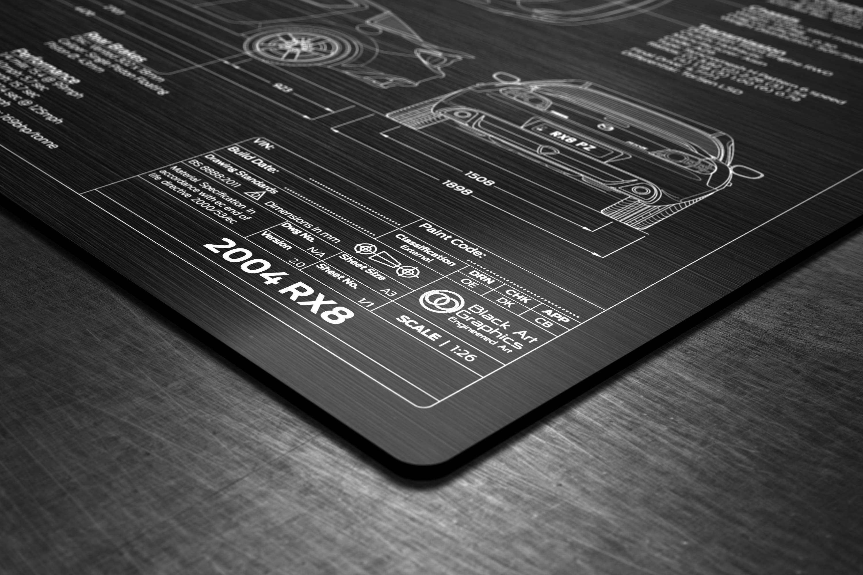Whether you are looking for the perfect gift for a loved one, or simply a unique piece of art to commemorate your RX8 ownership, our 2003-2012 Mazda RX8 'Engineered Art' plaque is the perfect solution.