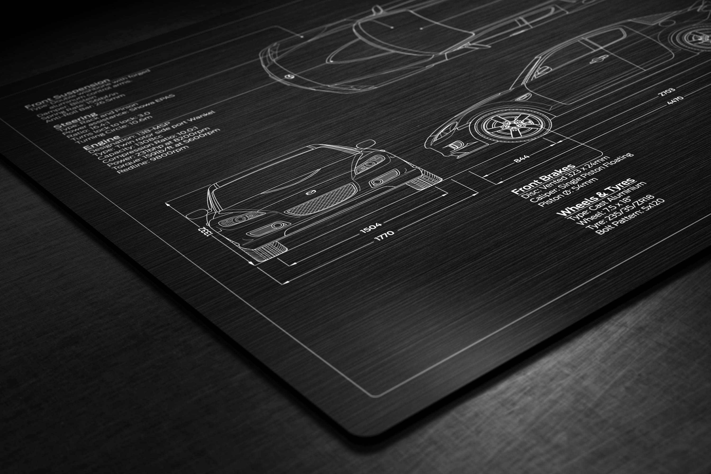 Our signature High Definition Orthographic™ illustrations are 100% original artwork, unavailable anywhere else. Each design begins with a specialist photography session with a real life example to generate the perfect reference images, before being digitally recreated by our talented in house artists to create a uniquely styled technical illustration of unparalleled detail and proportional accuracy.