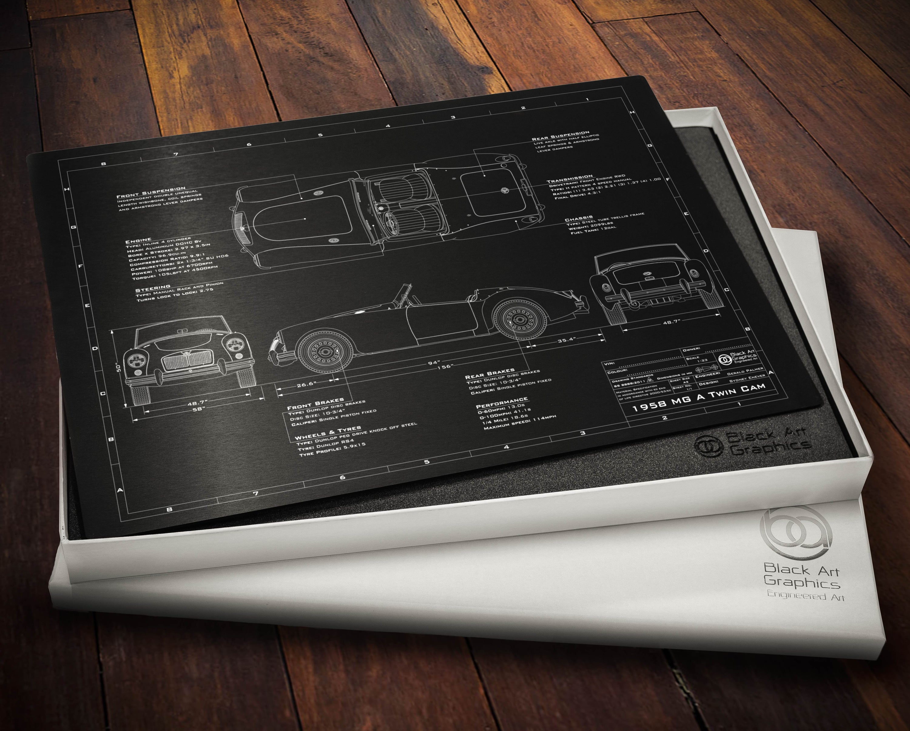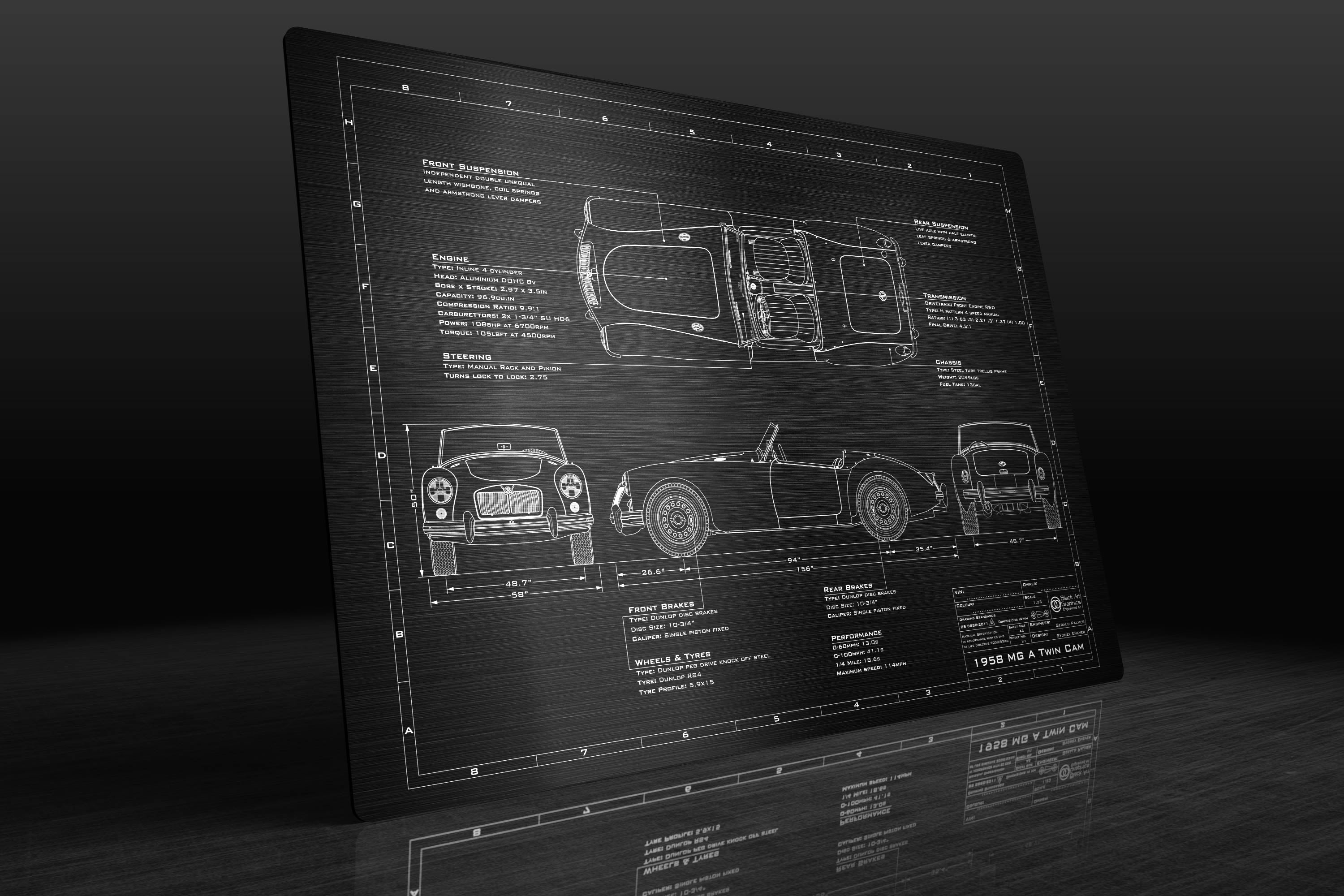 Laser Engraved 1958-1960 MG A Twin Cam Blueprint