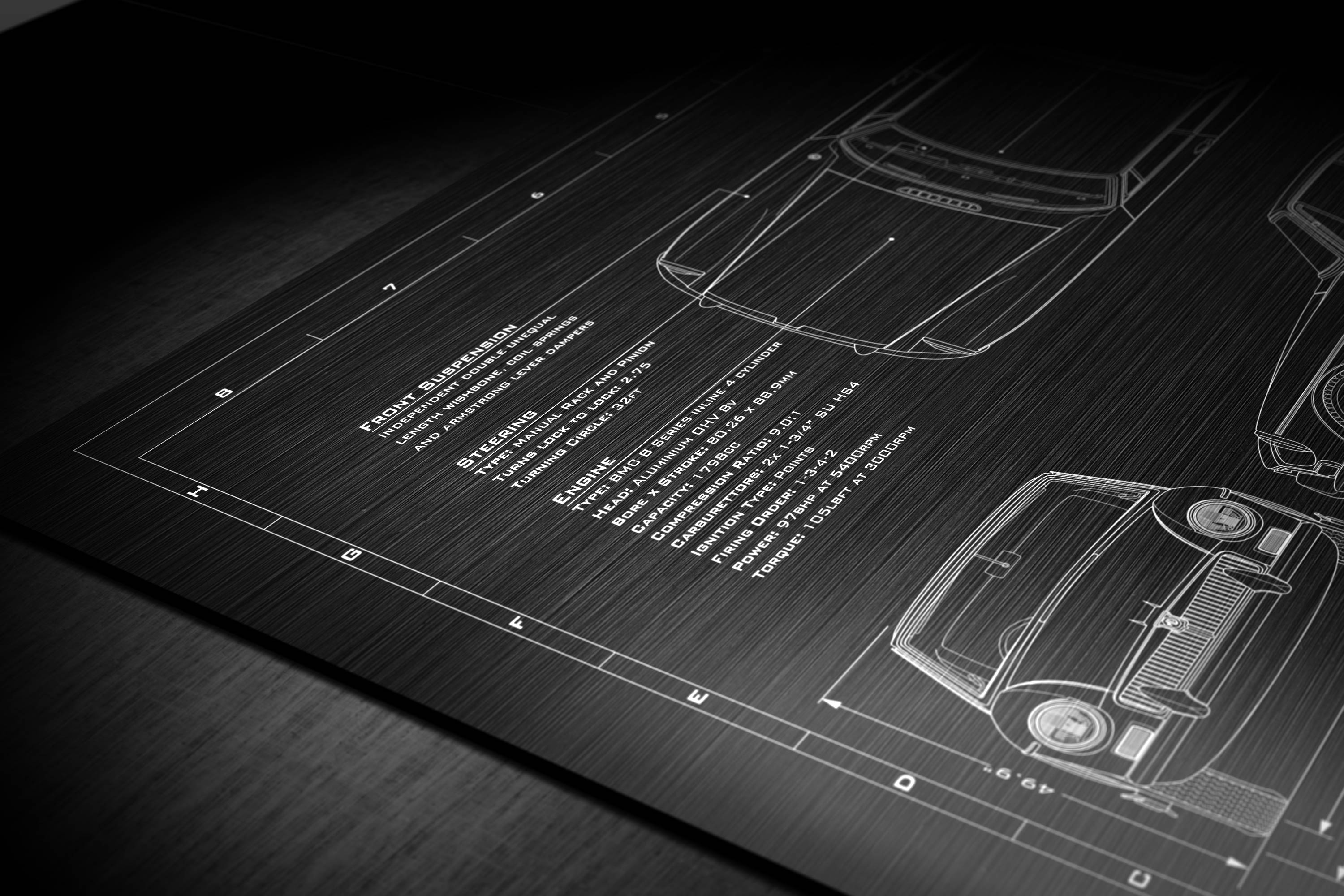 Our signature High Definition Orthographic™ illustrations are 100% original artwork, unavailable anywhere else. Each design begins with a specialist photography session with a real life example to generate the perfect reference images, before being digitally recreated by our talented in house artists to create a uniquely styled technical illustration of unparalleled detail and proportional accuracy.