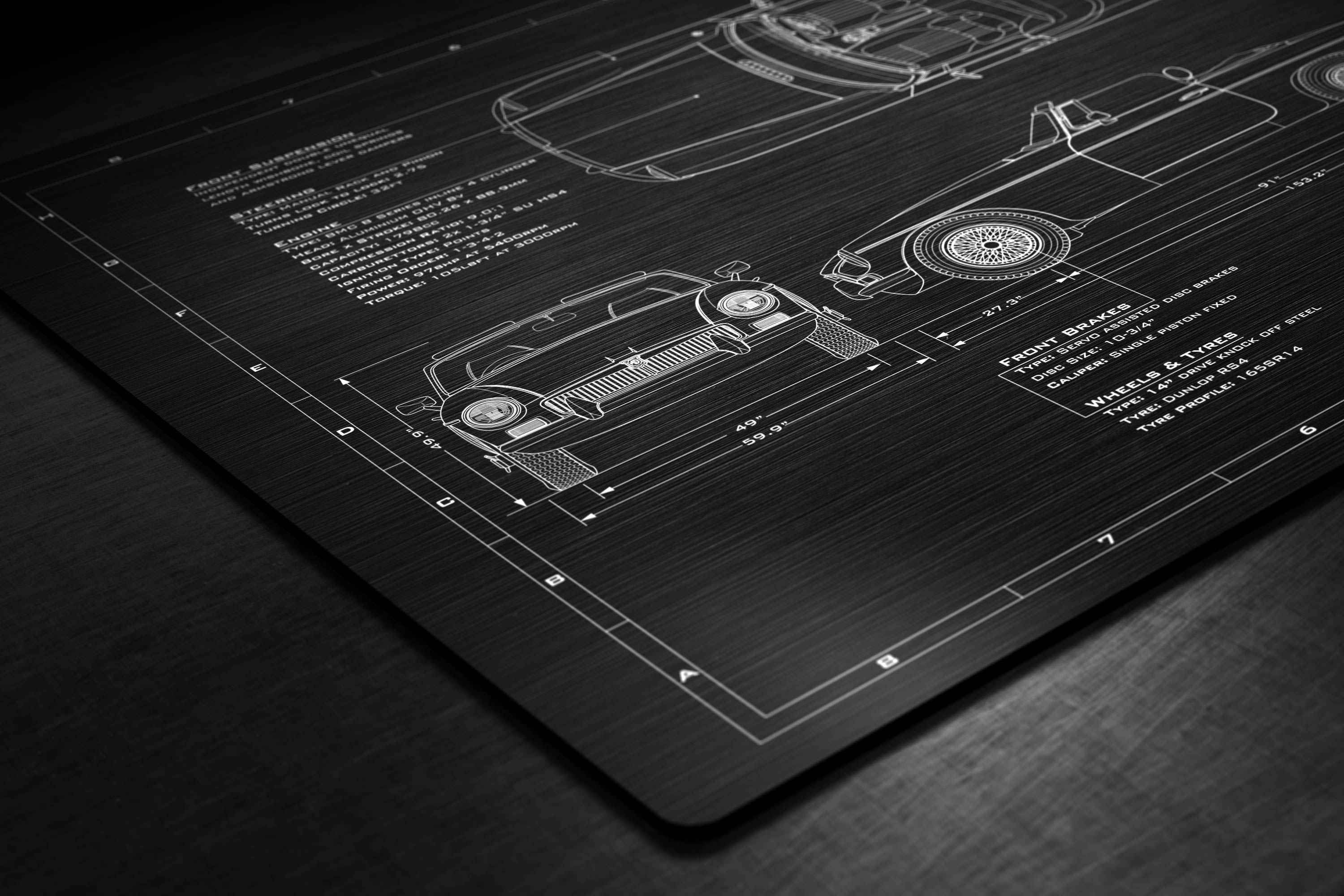 Our signature High Definition Orthographic™ illustrations are 100% original artwork, unavailable anywhere else. Each design begins with a specialist photography session with a real life example to generate the perfect reference images, before being digitally recreated by our talented in house artists to create a uniquely styled technical illustration of unparalleled detail and proportional accuracy.