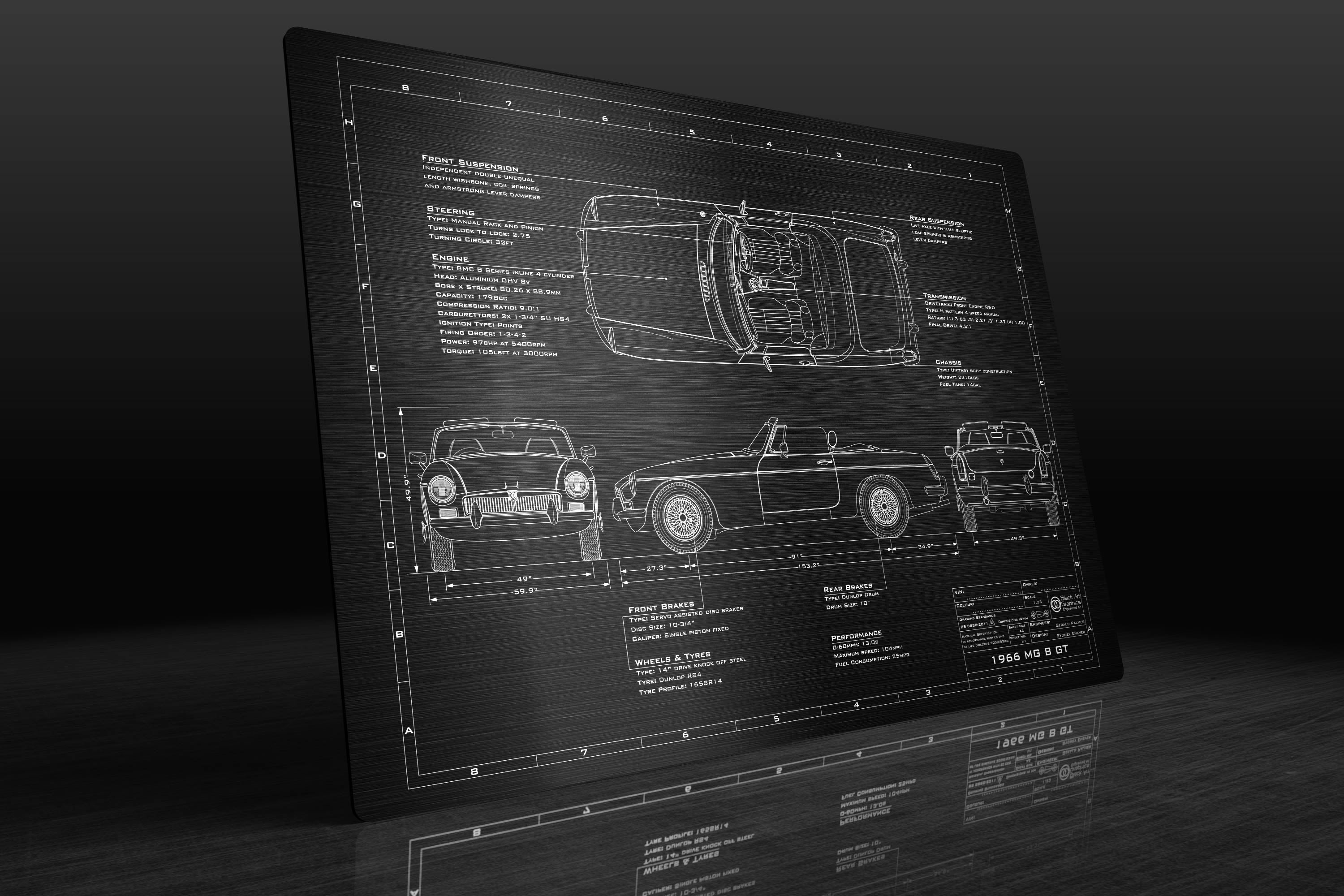 Laser Engraved 1967-1973 MGB Roadster Blueprint
