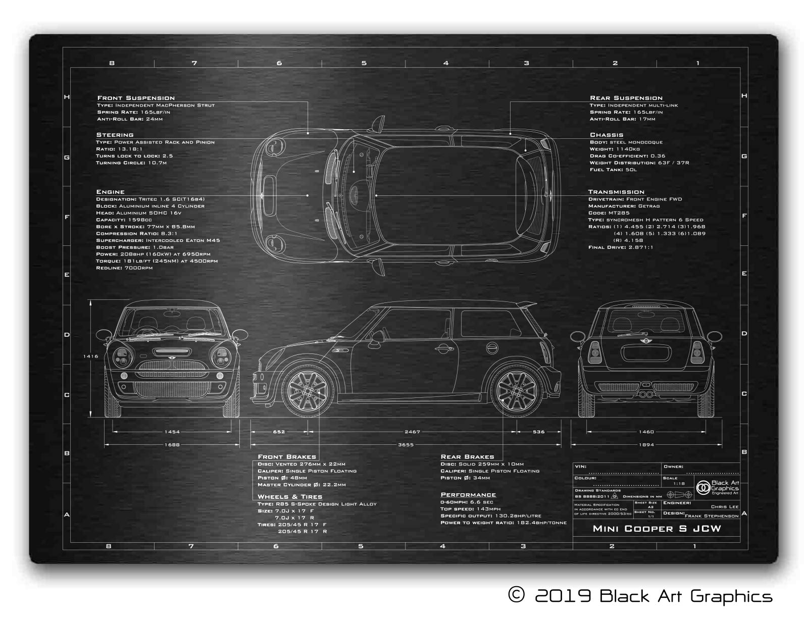 Whether you are looking for the perfect gift for a loved one, or simply a unique piece of art to commemorate your Cooper S ownership, our 2001-2006 Mini Cooper S 'Engineered Art' plaque is the perfect solution.