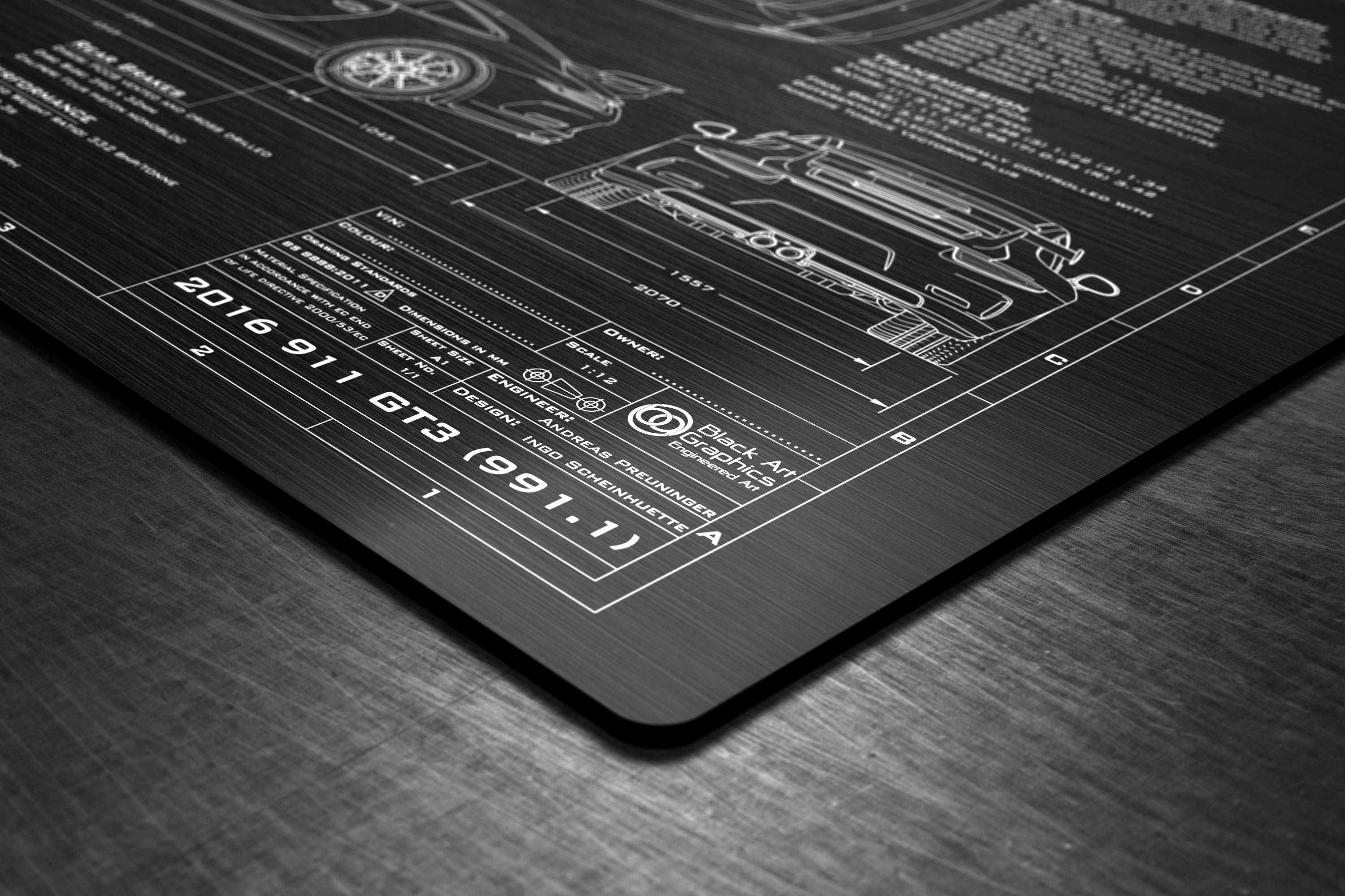 Laser Engraved 2014-2016 911 GT3 Blueprint