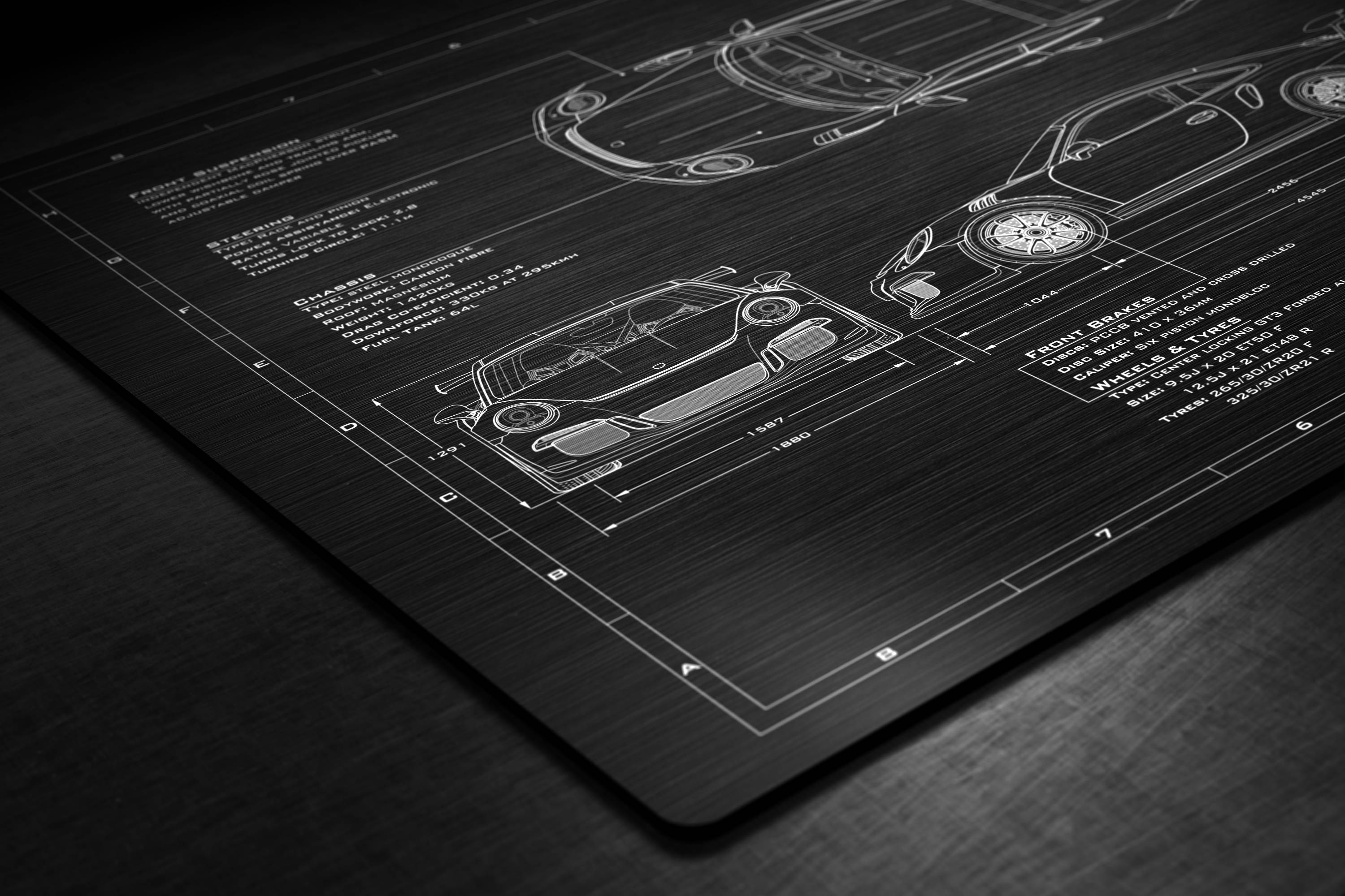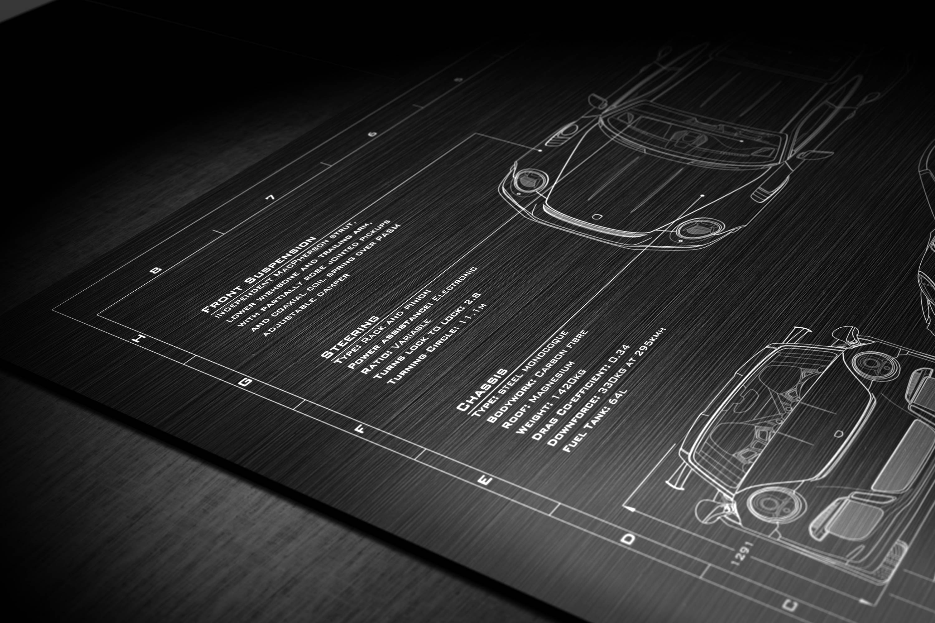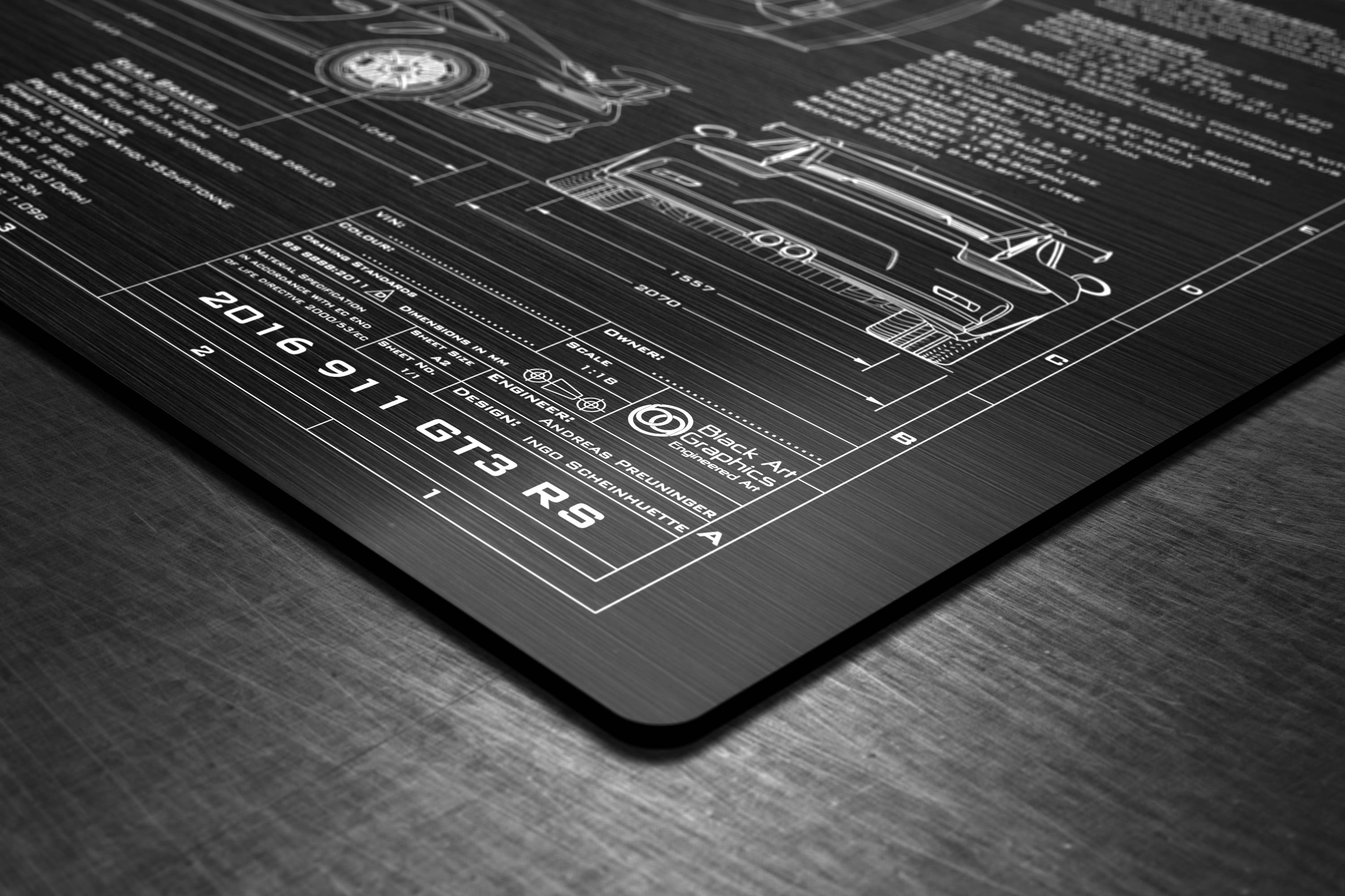 Laser Engraved 2016-2017 911 GT3 RS Blueprint