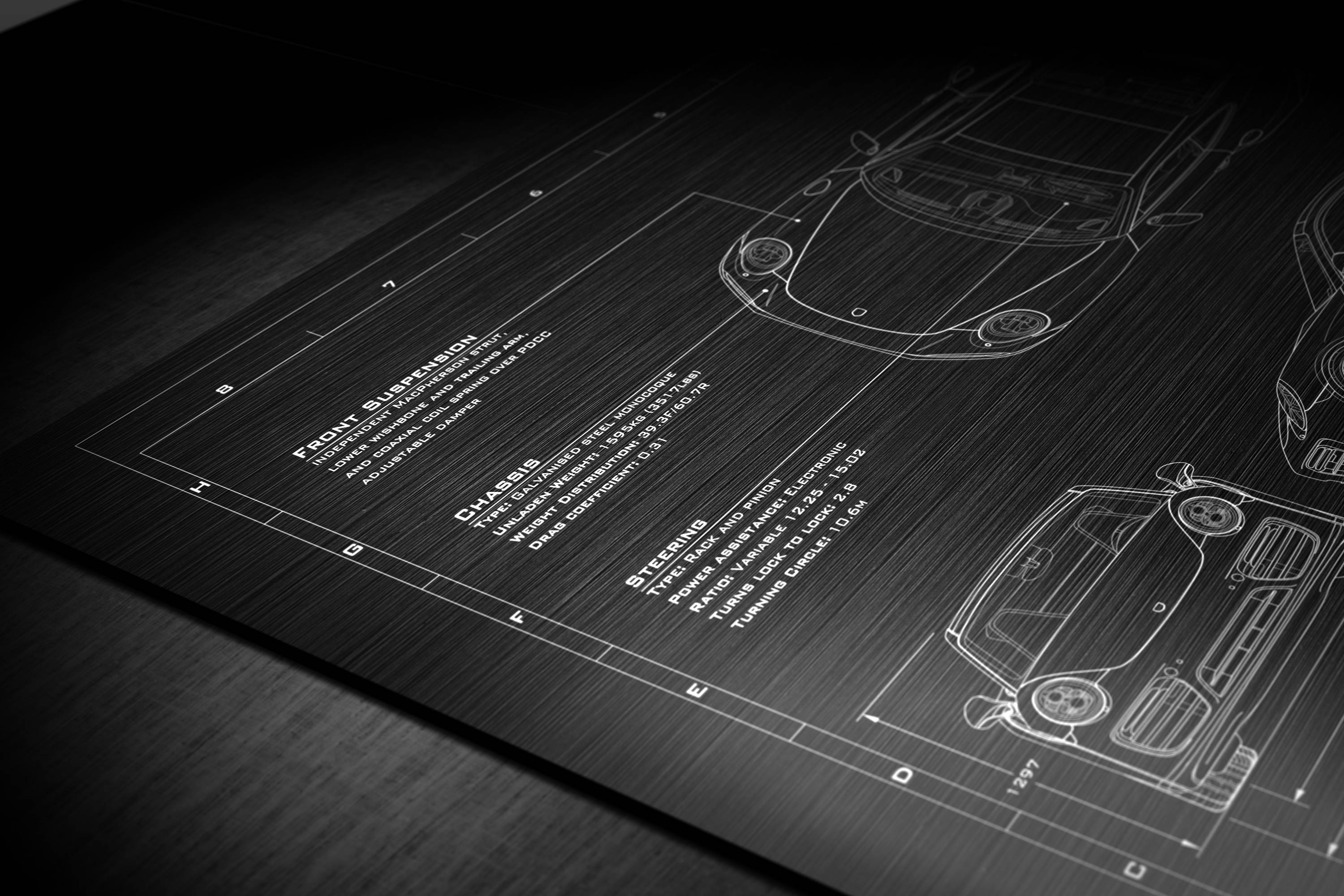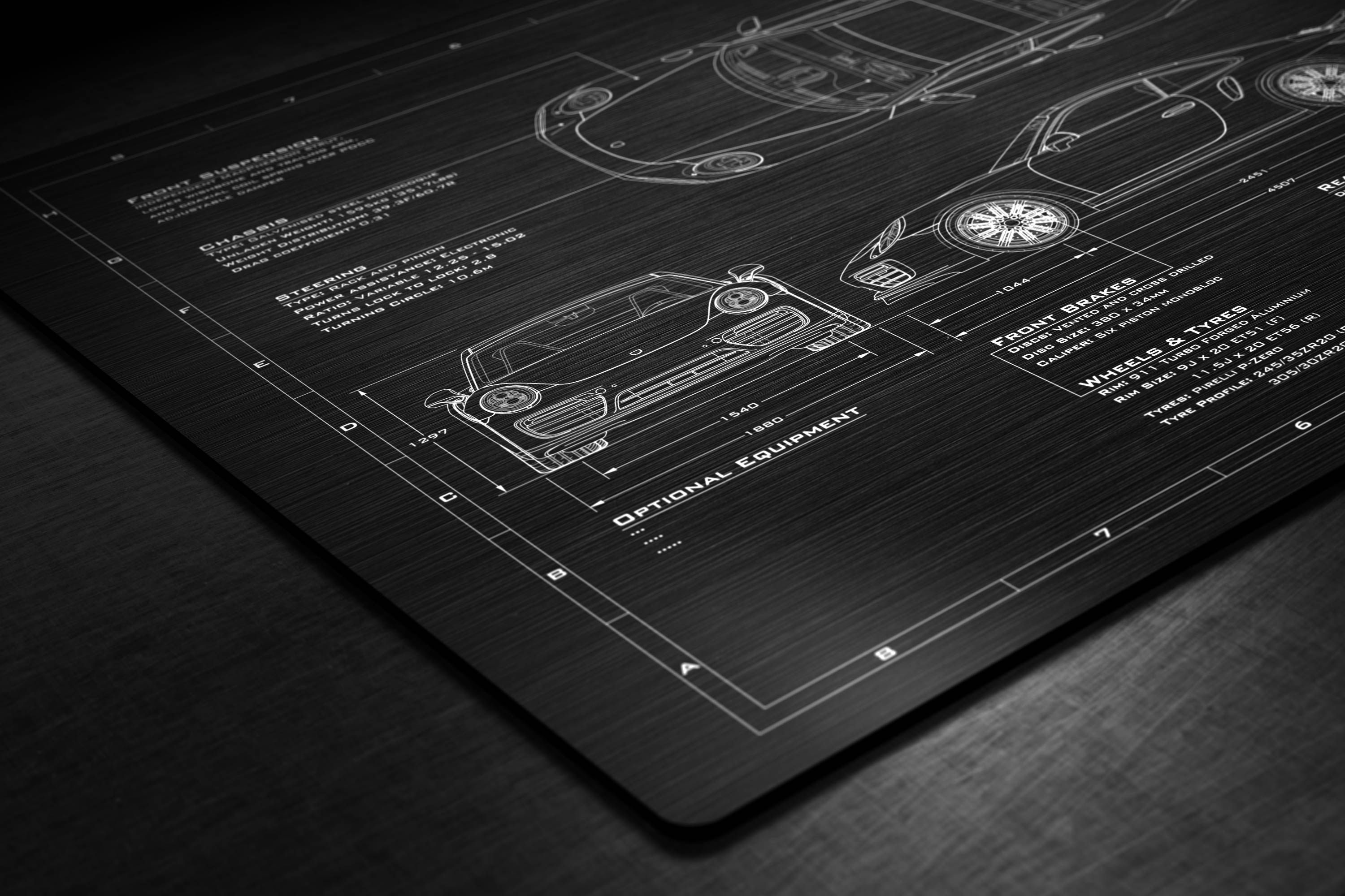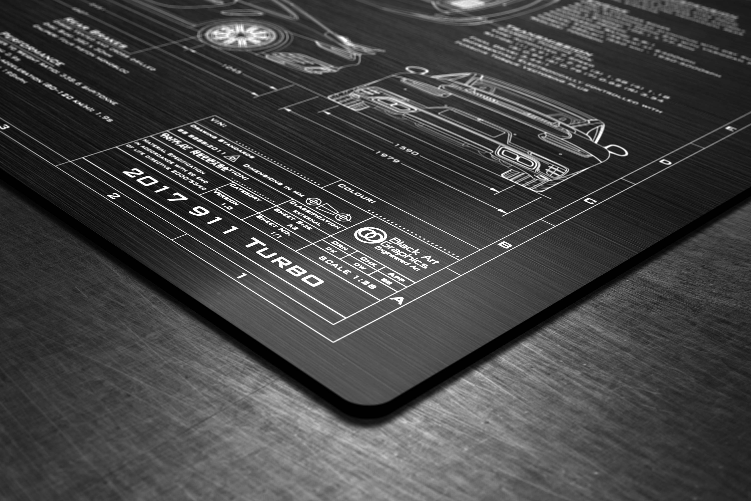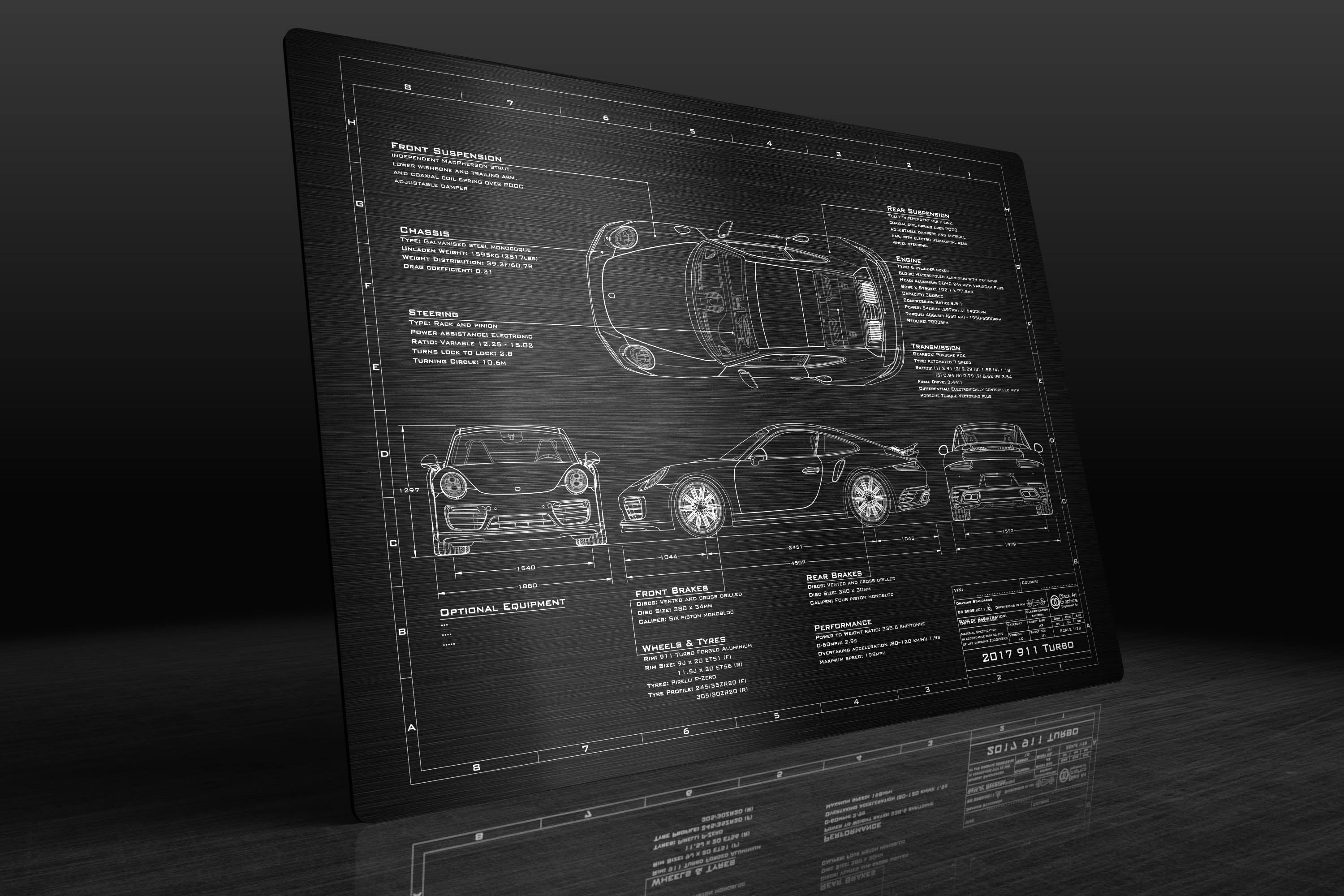 Laser Engraved 2017-2019 911 Turbo Blueprint