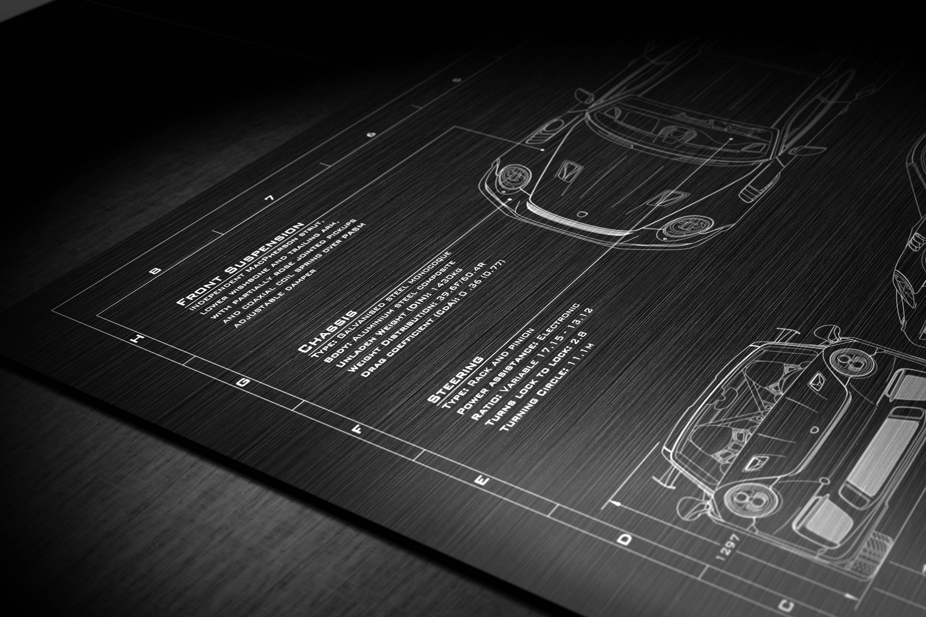 Laser Engraved 2018-2019 911 GT3 RS Blueprint