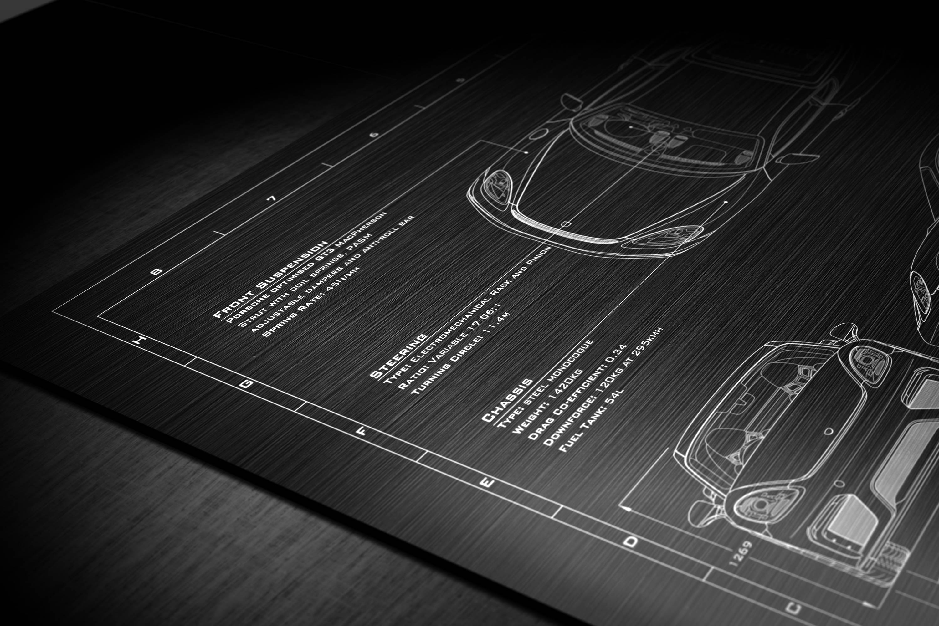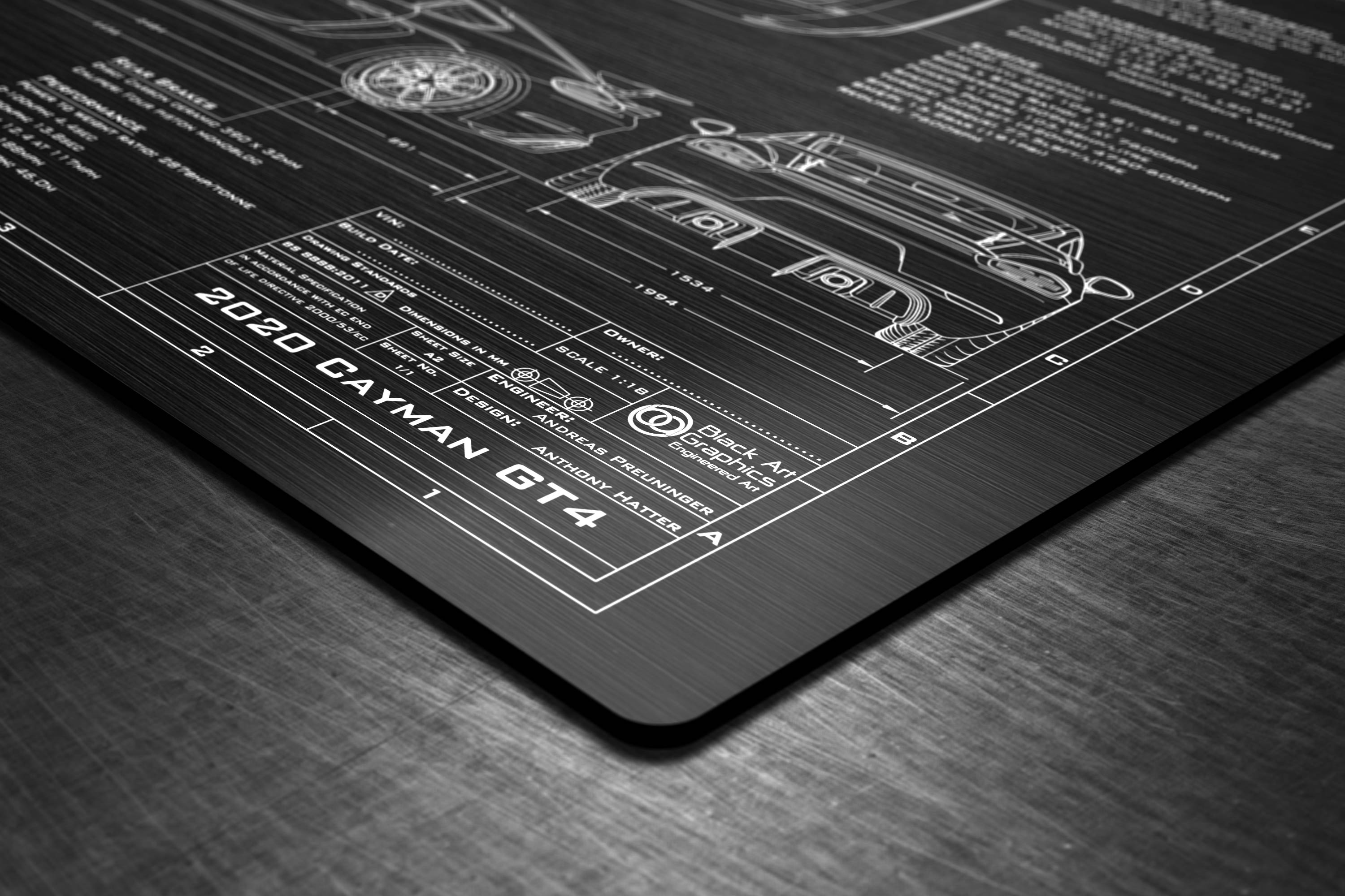 Laser Engraved 2018-2020 718 Cayman GT4 Blueprint