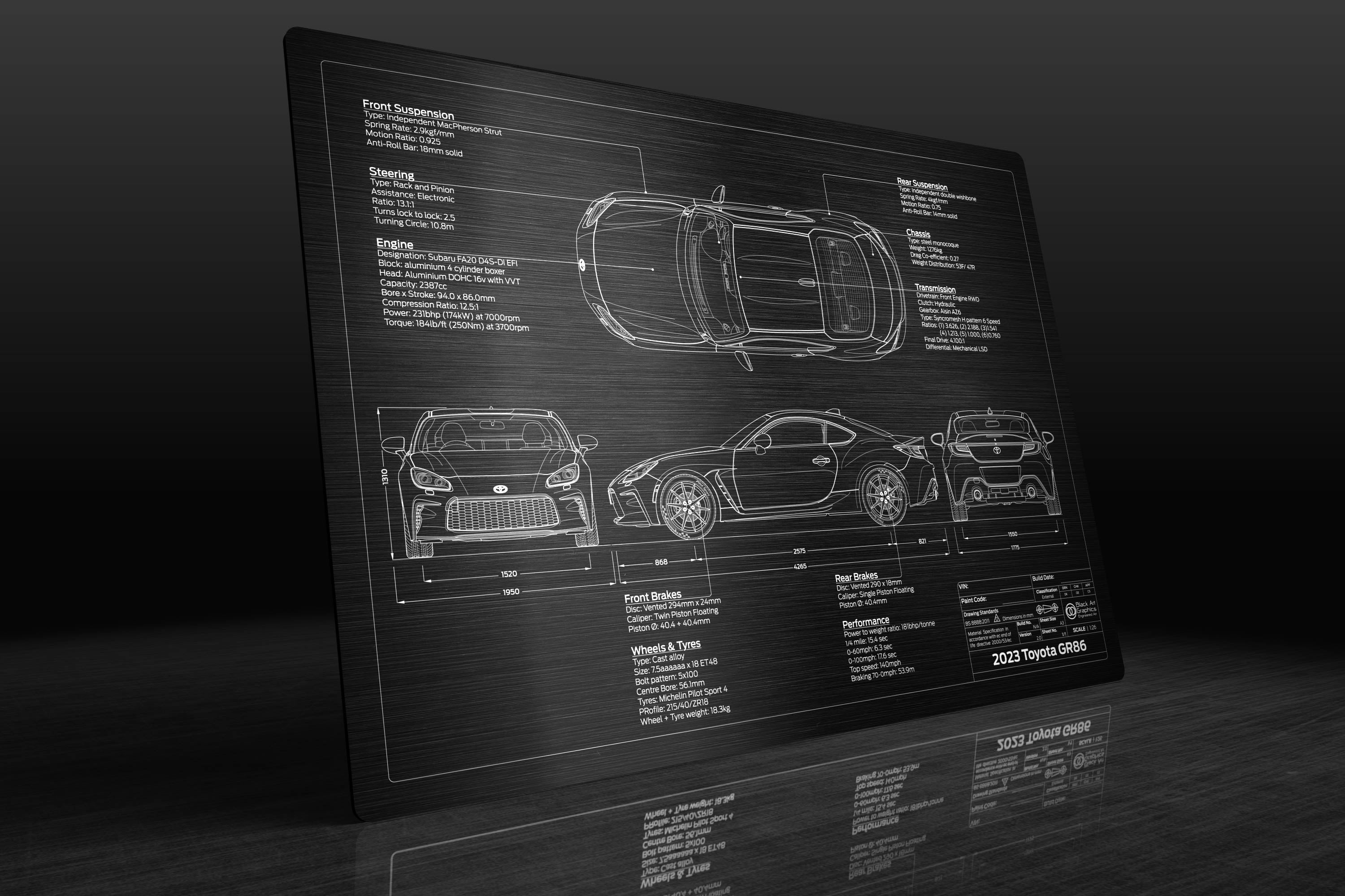Whether you are looking for the perfect gift for a loved one, or simply a unique piece of art to commemorate your GR86 ownership, our 2022-2024 Toyota GR86 'Engineered Art' plaque is the perfect solution.