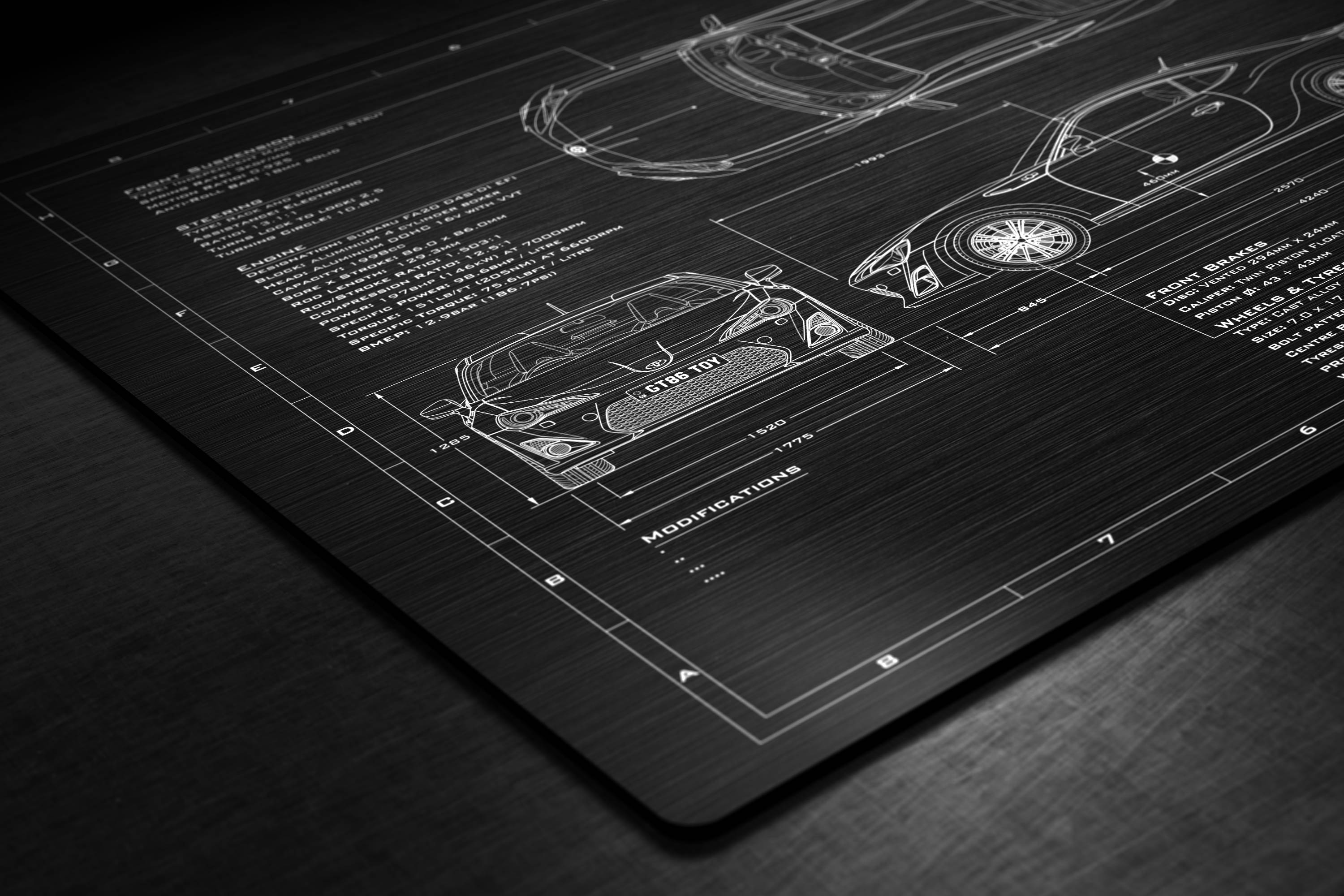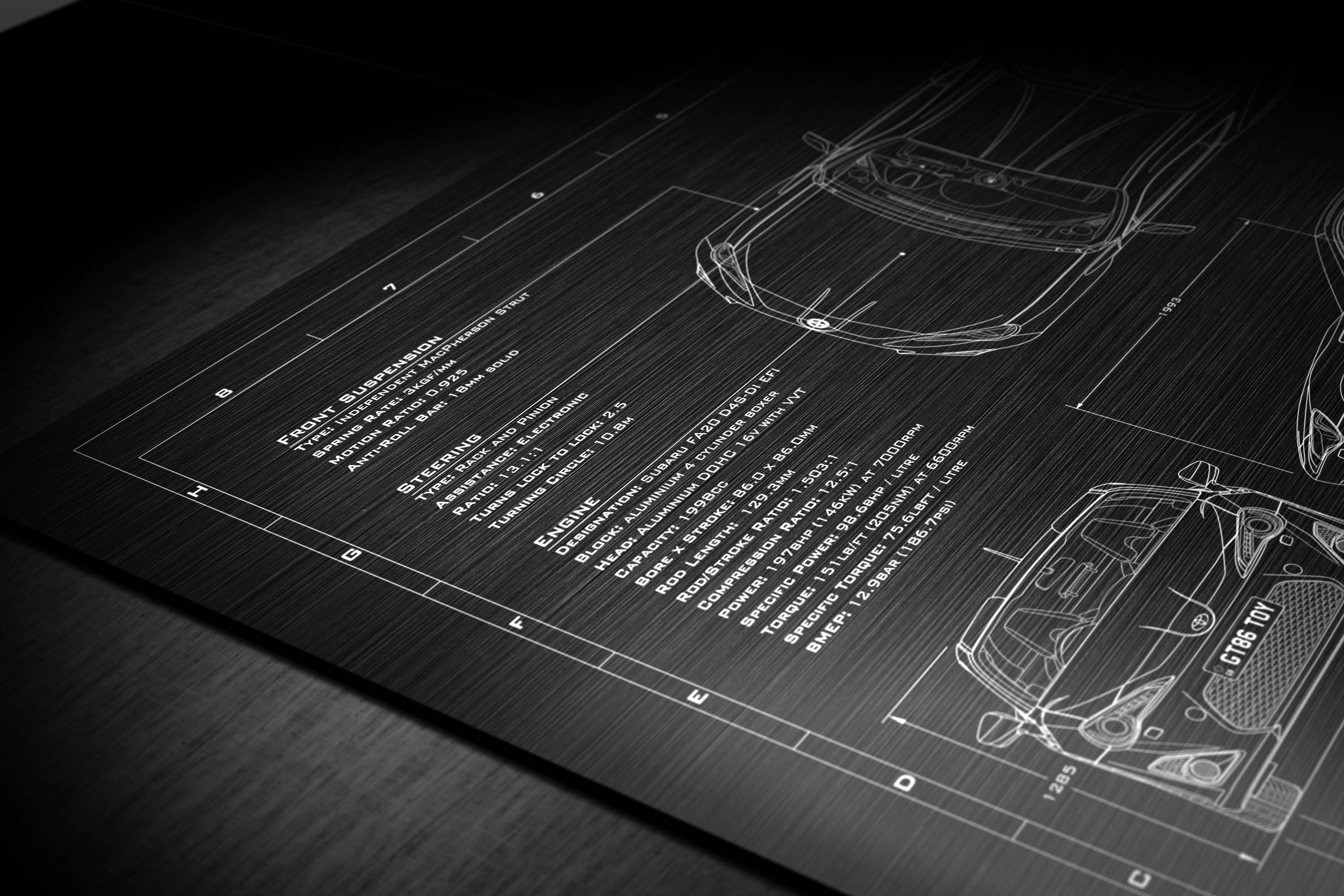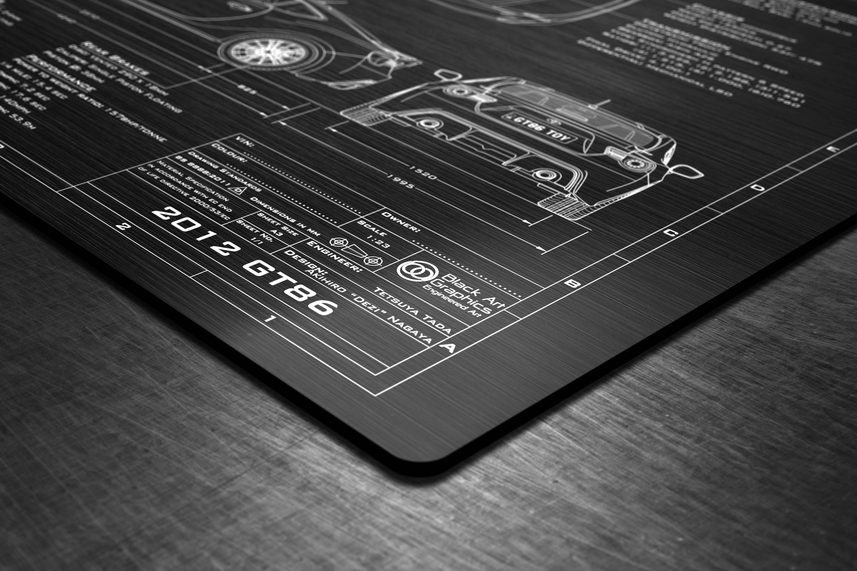 Laser Engraved 2013-2017 GT-86 Blueprint