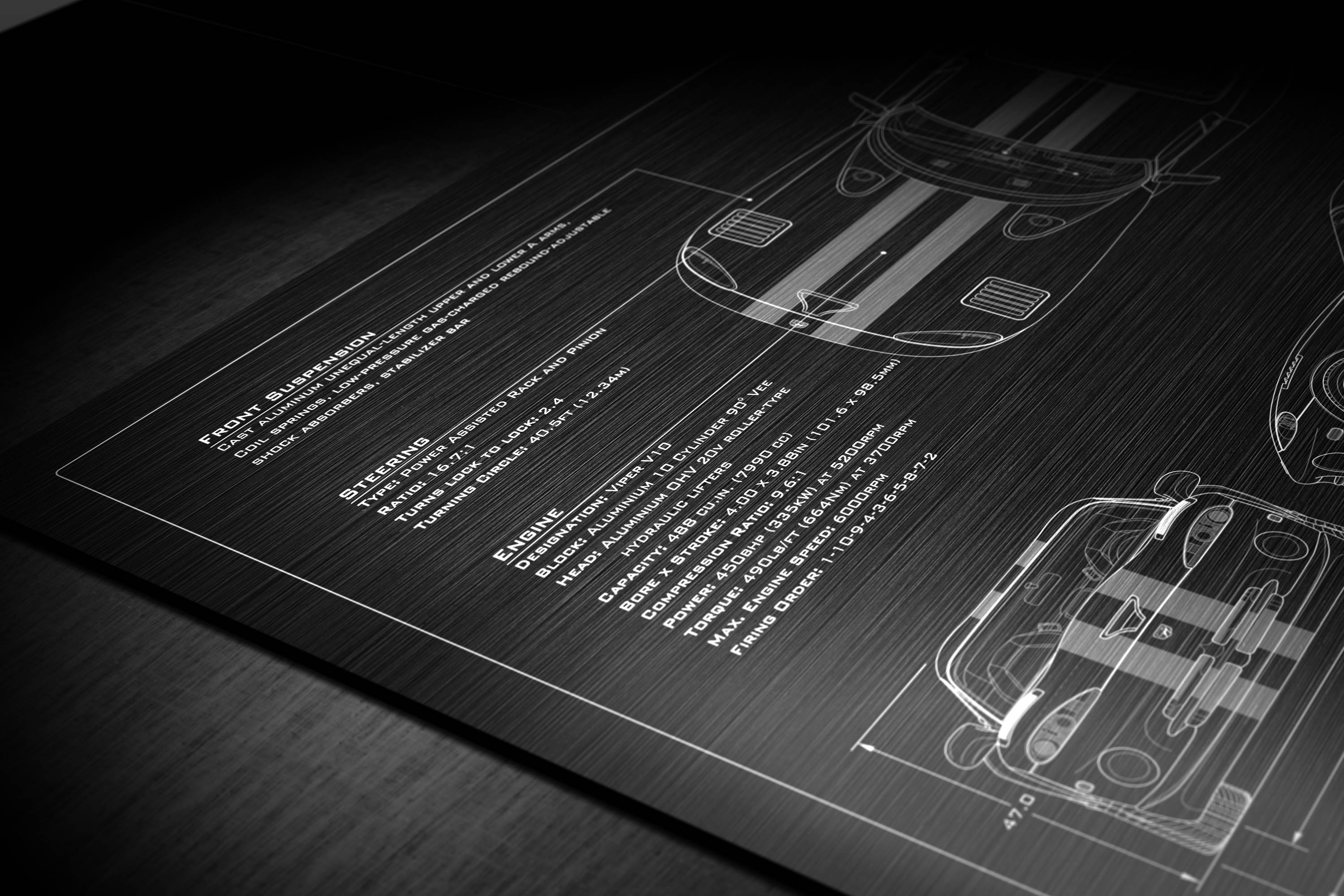 Whether you are looking for the perfect gift for a loved one, or simply a unique piece of art to commemorate your Viper ownership, our 1996-2002 Dodge Viper 'Engineered Art' plaque is the perfect solution.