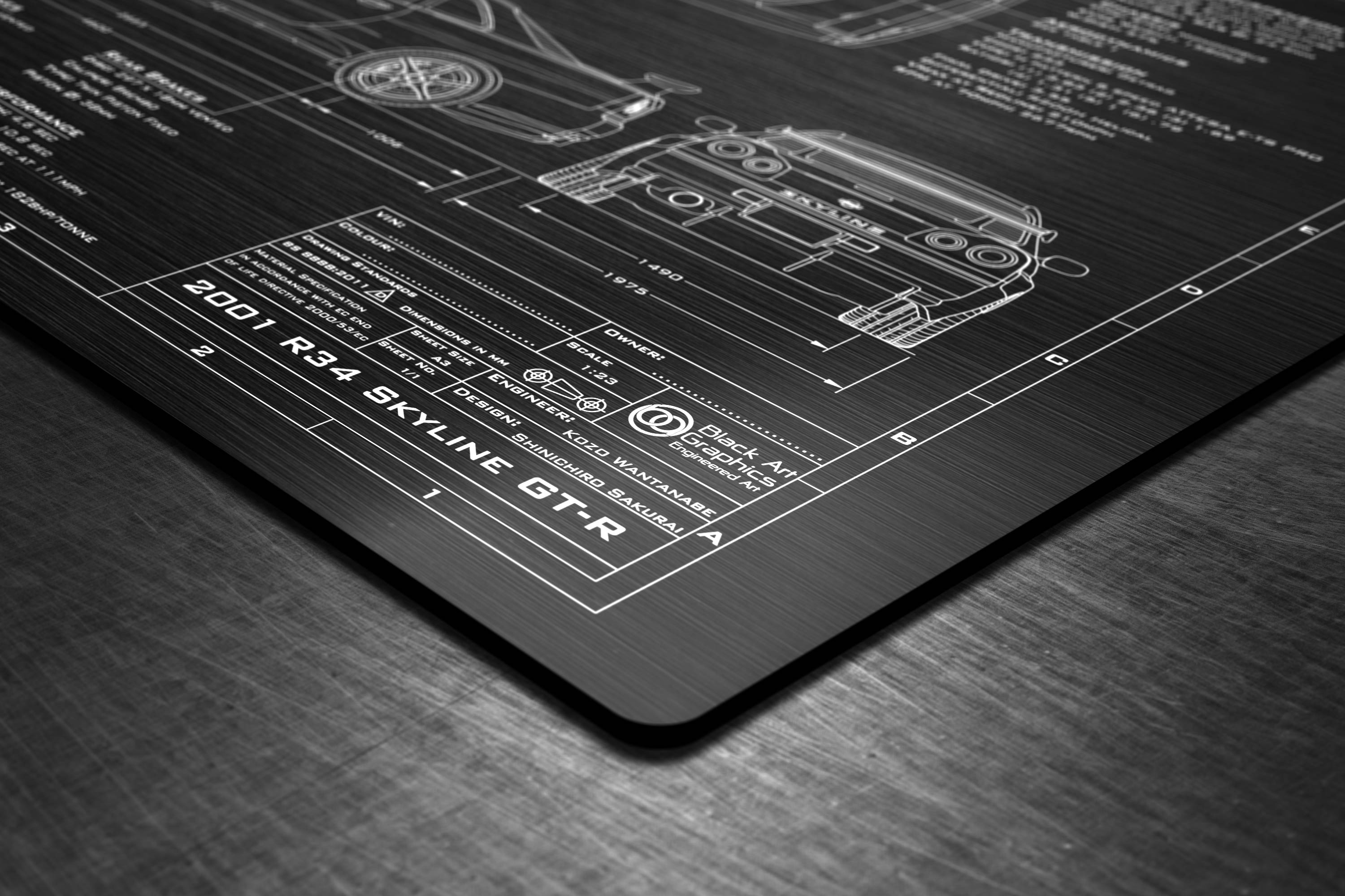Laser Engraved 1999-2002 Skyline GT-R Blueprint