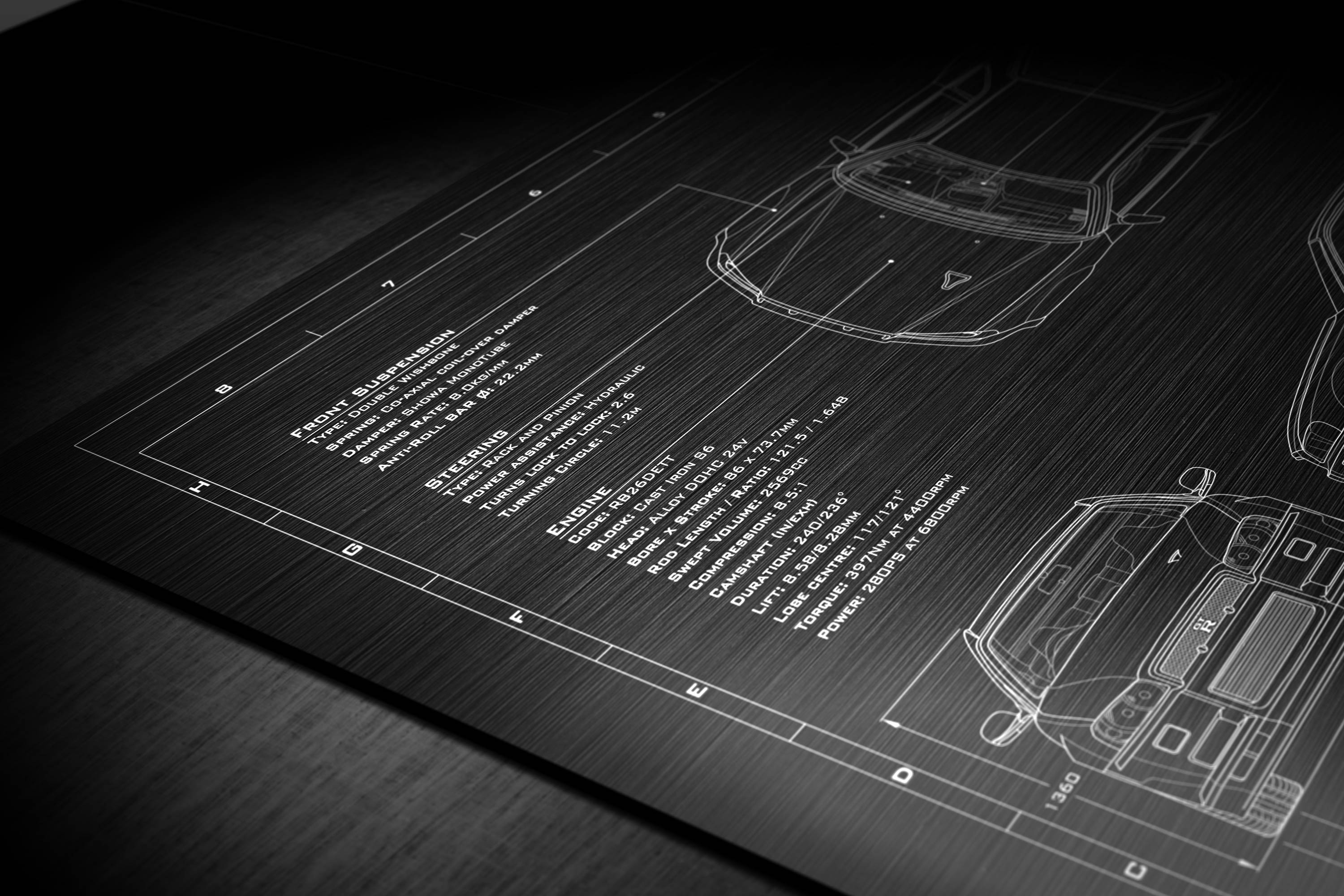 Our signature High Definition Orthographic™ illustrations are 100% original artwork, unavailable anywhere else. Each design begins with a specialist photography session with a real life example to generate the perfect reference images, before being digitally recreated by our talented in house artists to create a uniquely styled technical illustration of unparalleled detail and proportional accuracy.