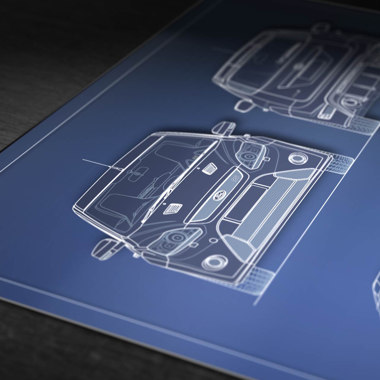 Our signature High Definition Orthographic™ illustrations are 100% original artwork, unavailable anywhere else. Each design begins with a specialist photography session with a real life example to generate the perfect reference images, before being digitally recreated by our talented in house artists to create a uniquely styled technical illustration of unparalleled detail and proportional accuracy.
