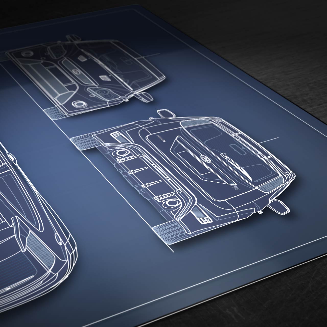 Whether it's a different combination of views, a combination of different vehicles in one design, a custom size, colour pallette or personalising the design with your license plate and VIN, our team are ready and waiting to create a customised product to suit your requirements.