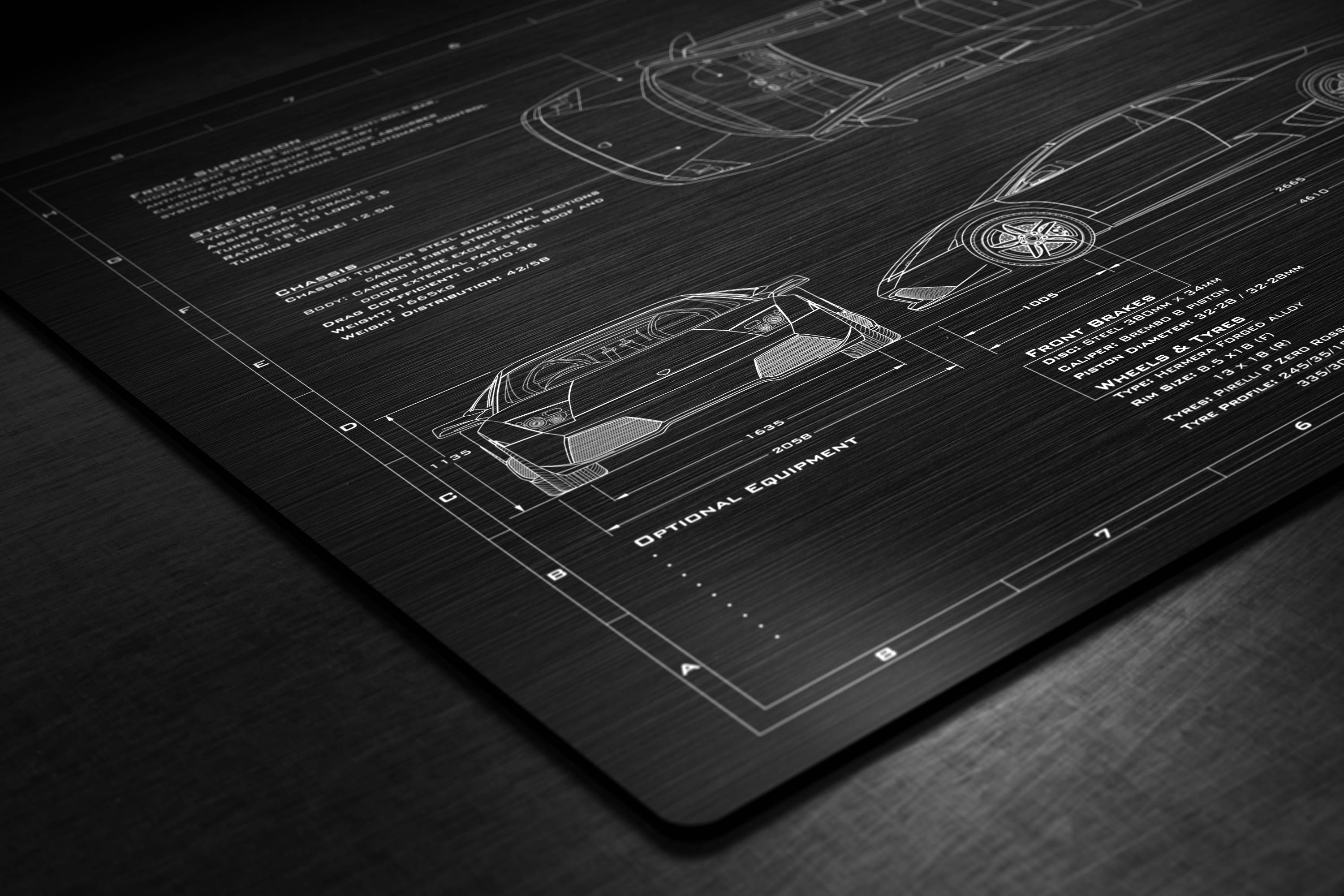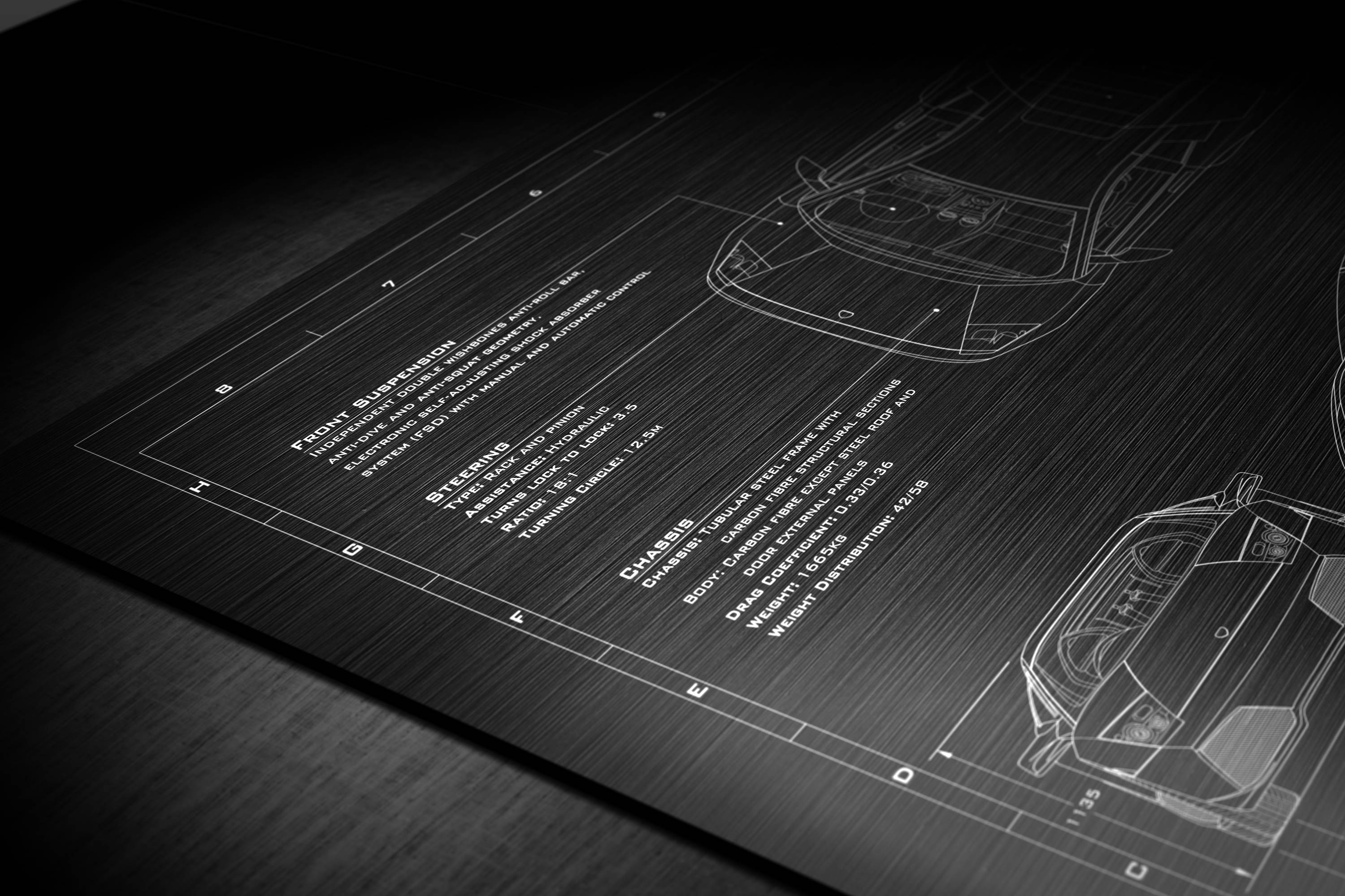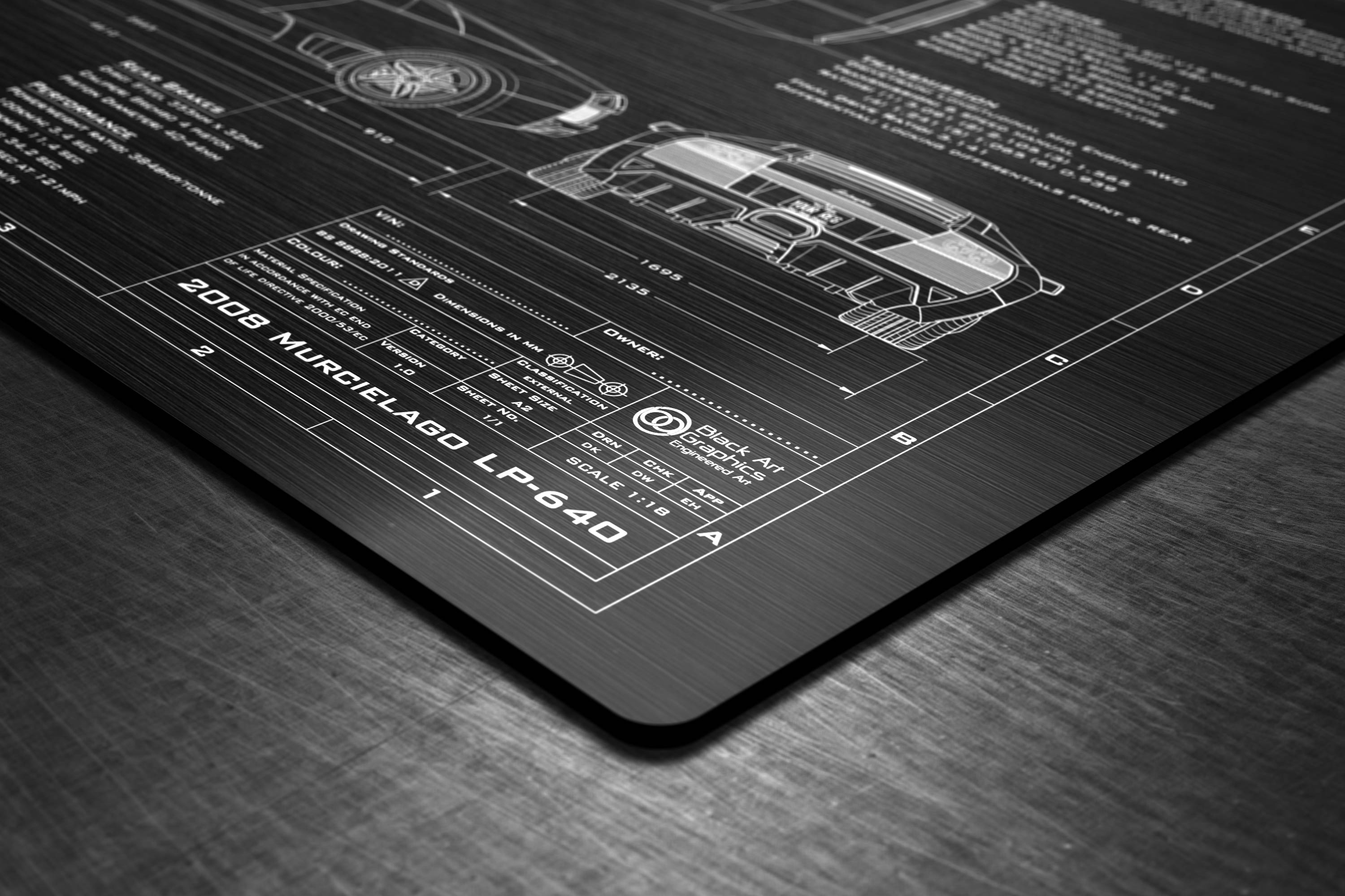 Laser Engraved 2006-2010 Murcielago LP-640 Blueprint