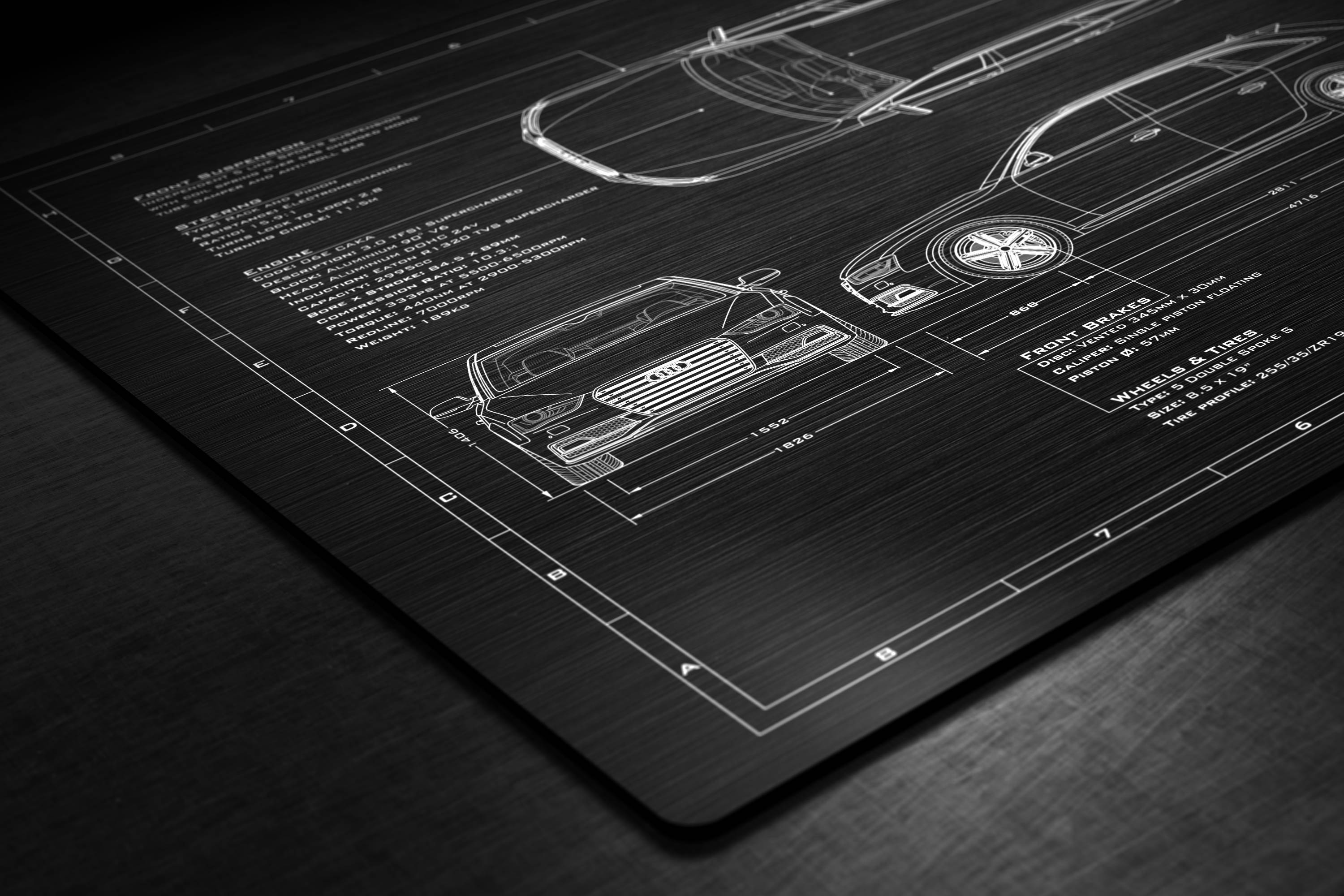 Laser Engraved 2009-2016 S4 Blueprint