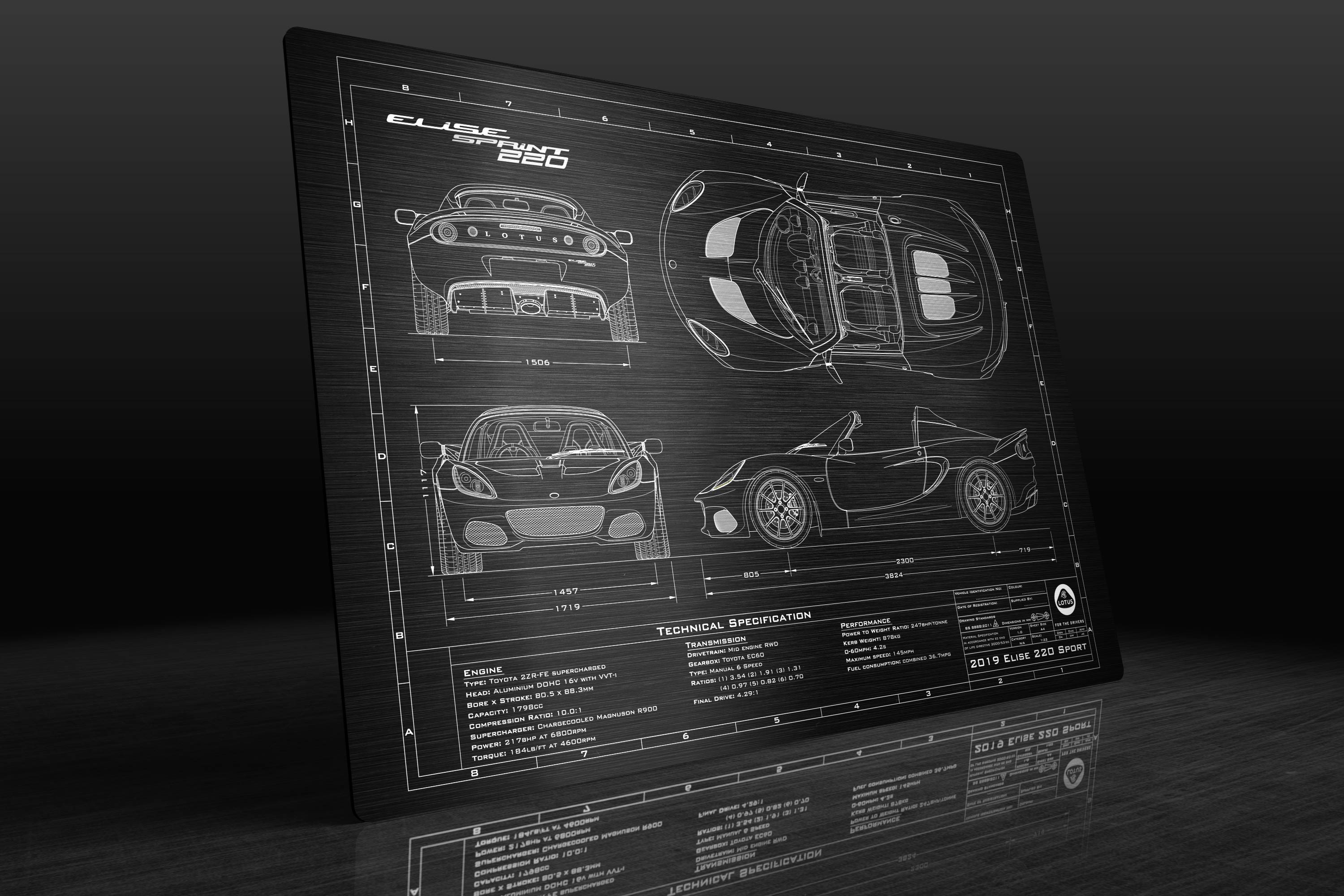 Laser Engraved 2018-2020 Elise 220 Sport Blueprint