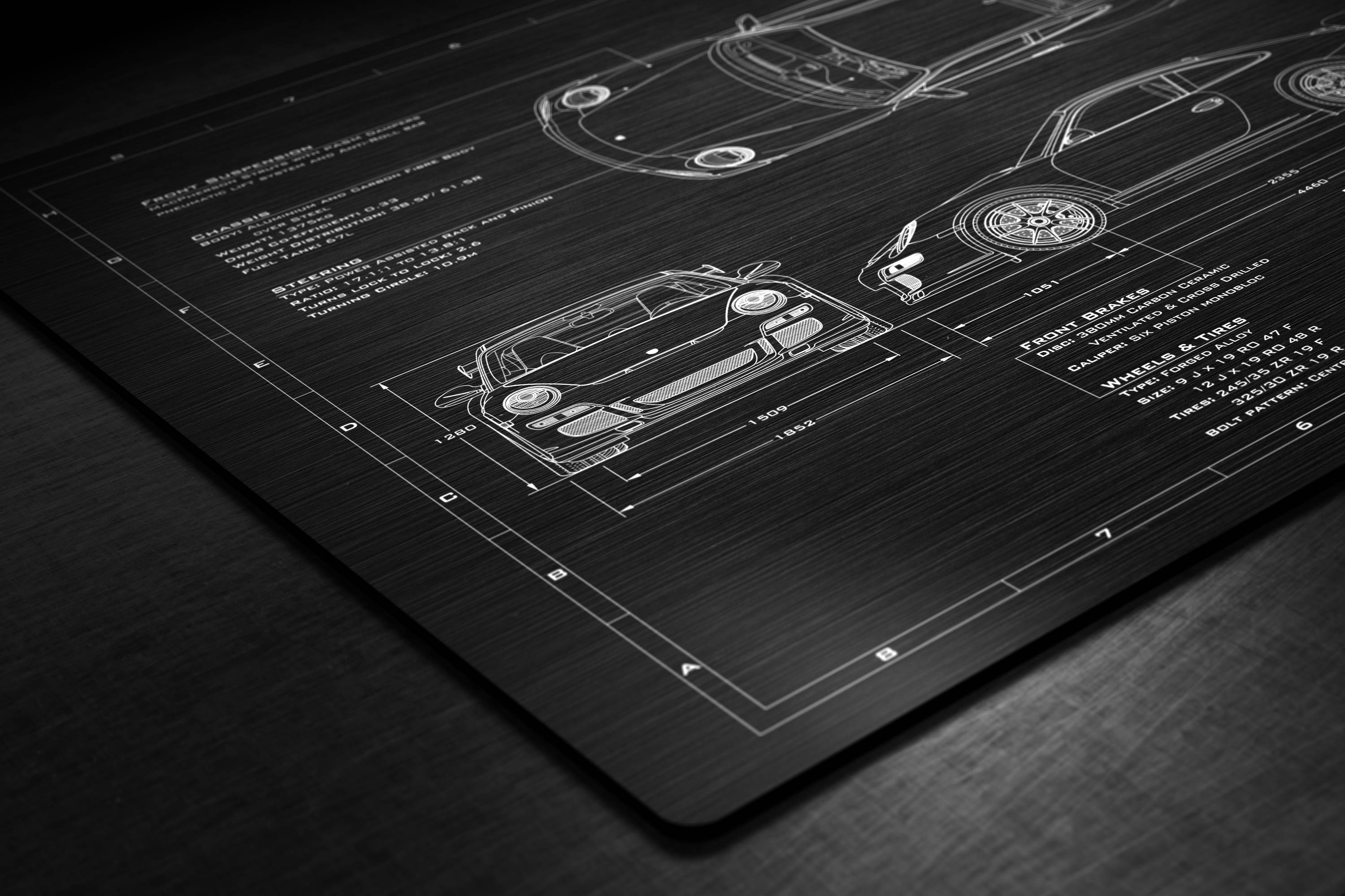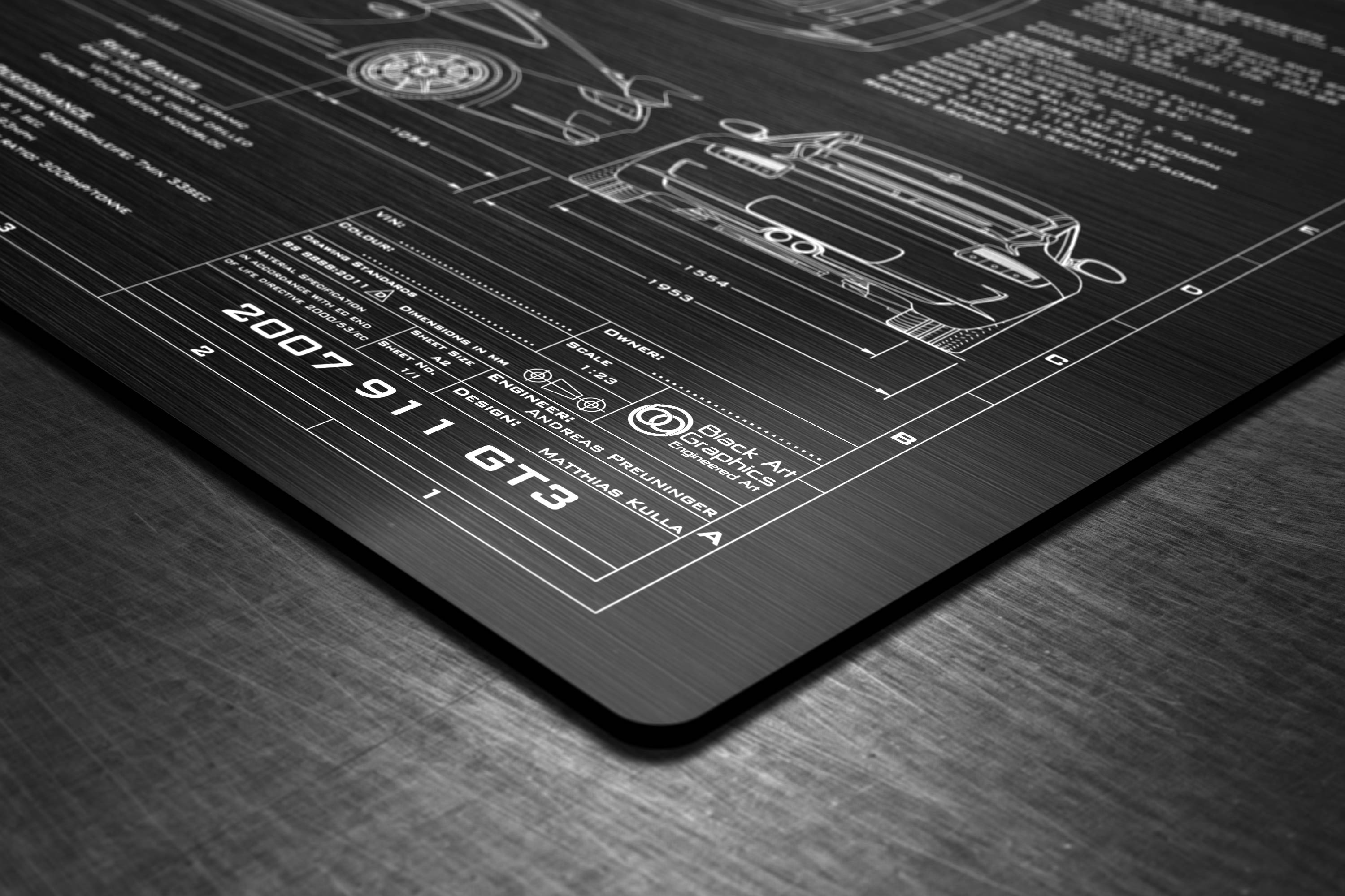 Laser Engraved 2007-2009 911 GT3 Blueprint