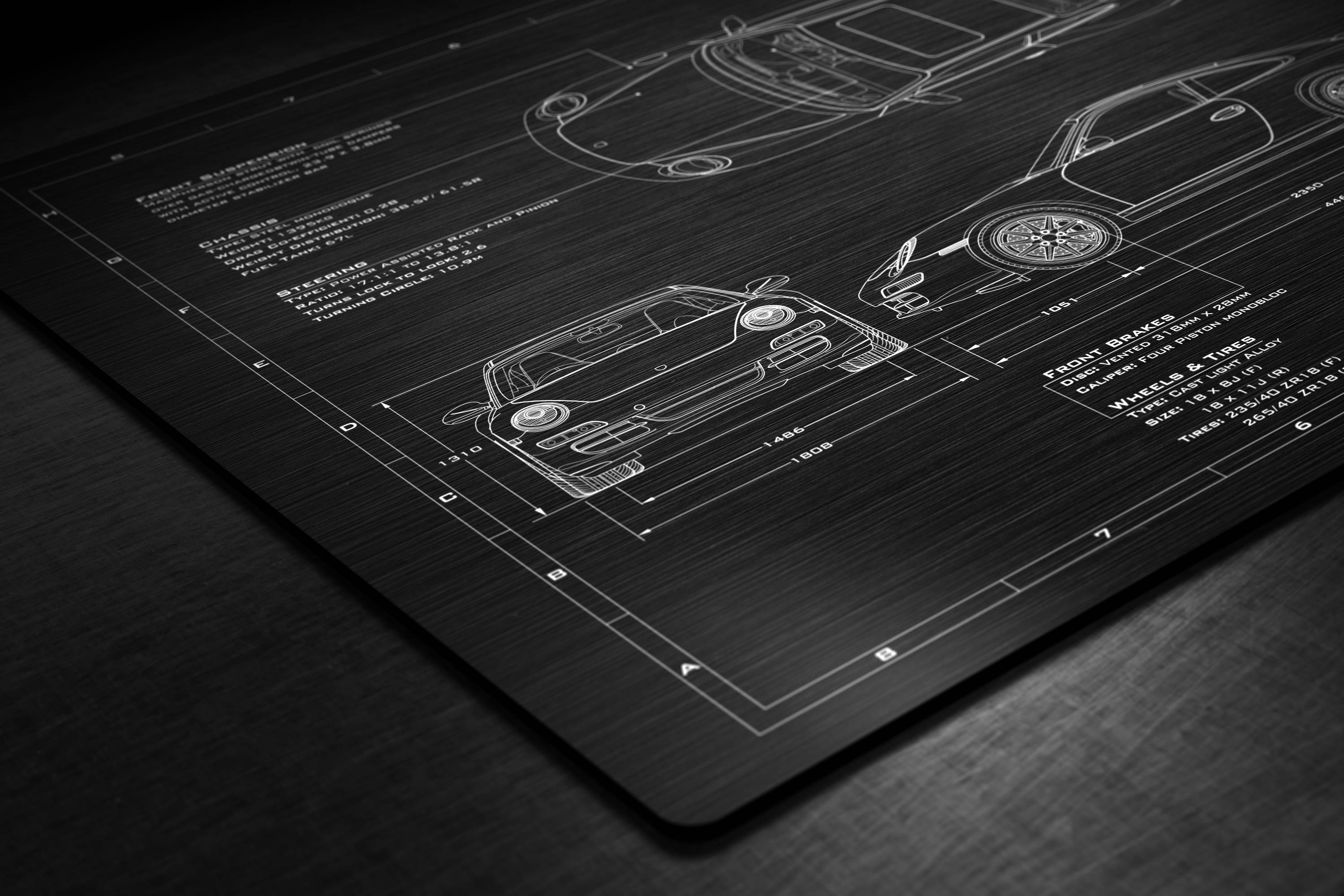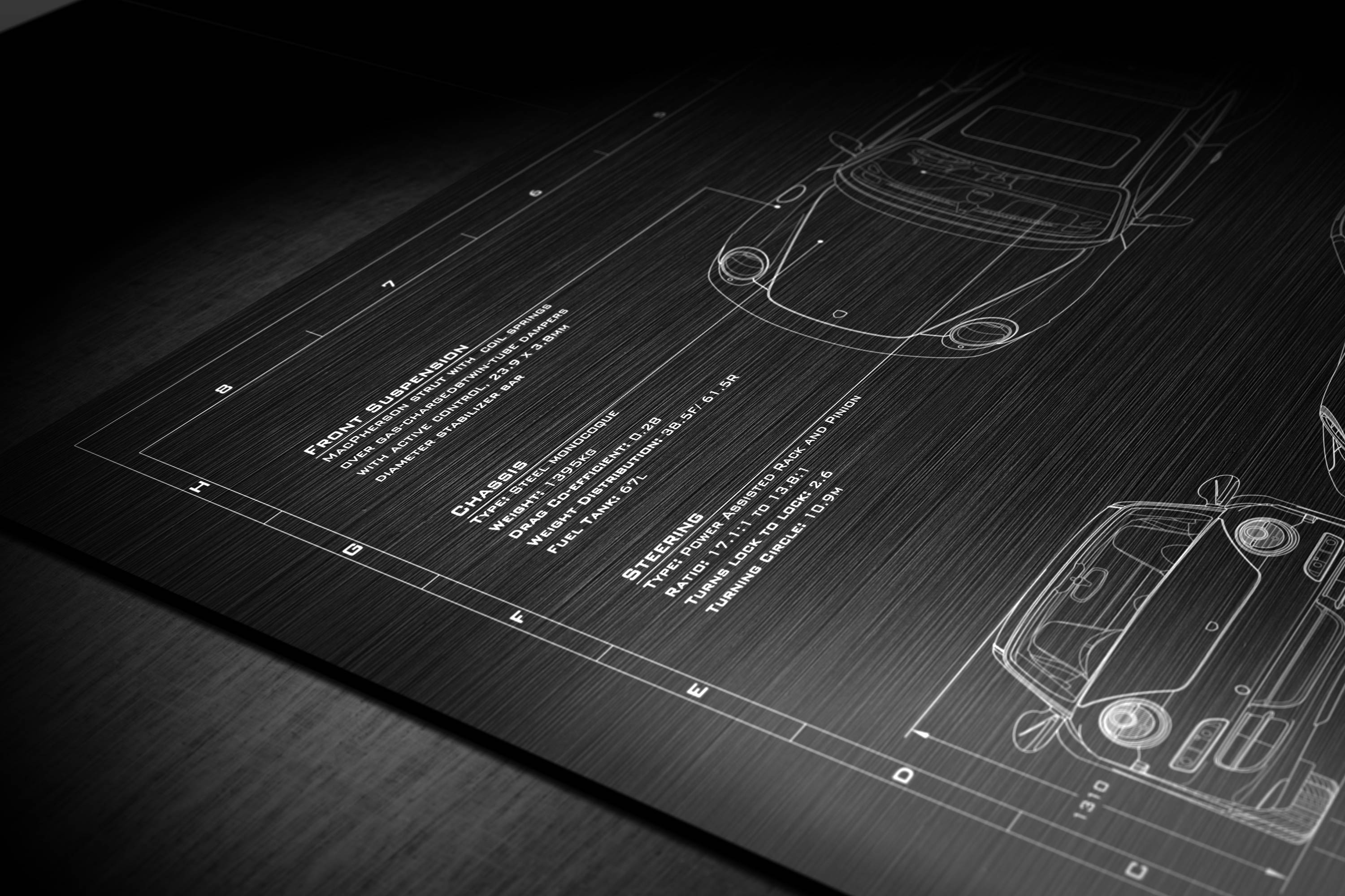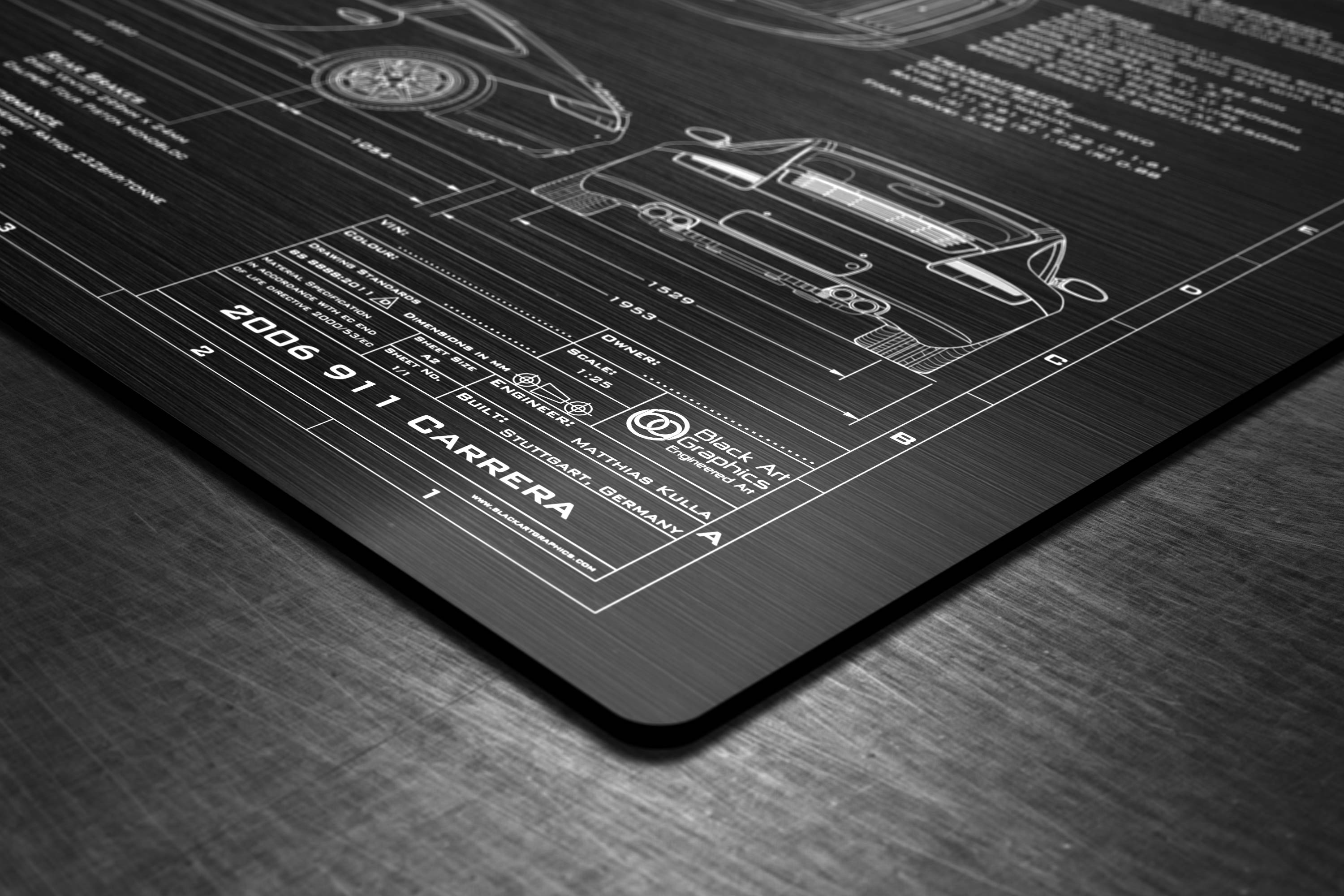Laser Engraved 2005-2008 911 Carrera Blueprint