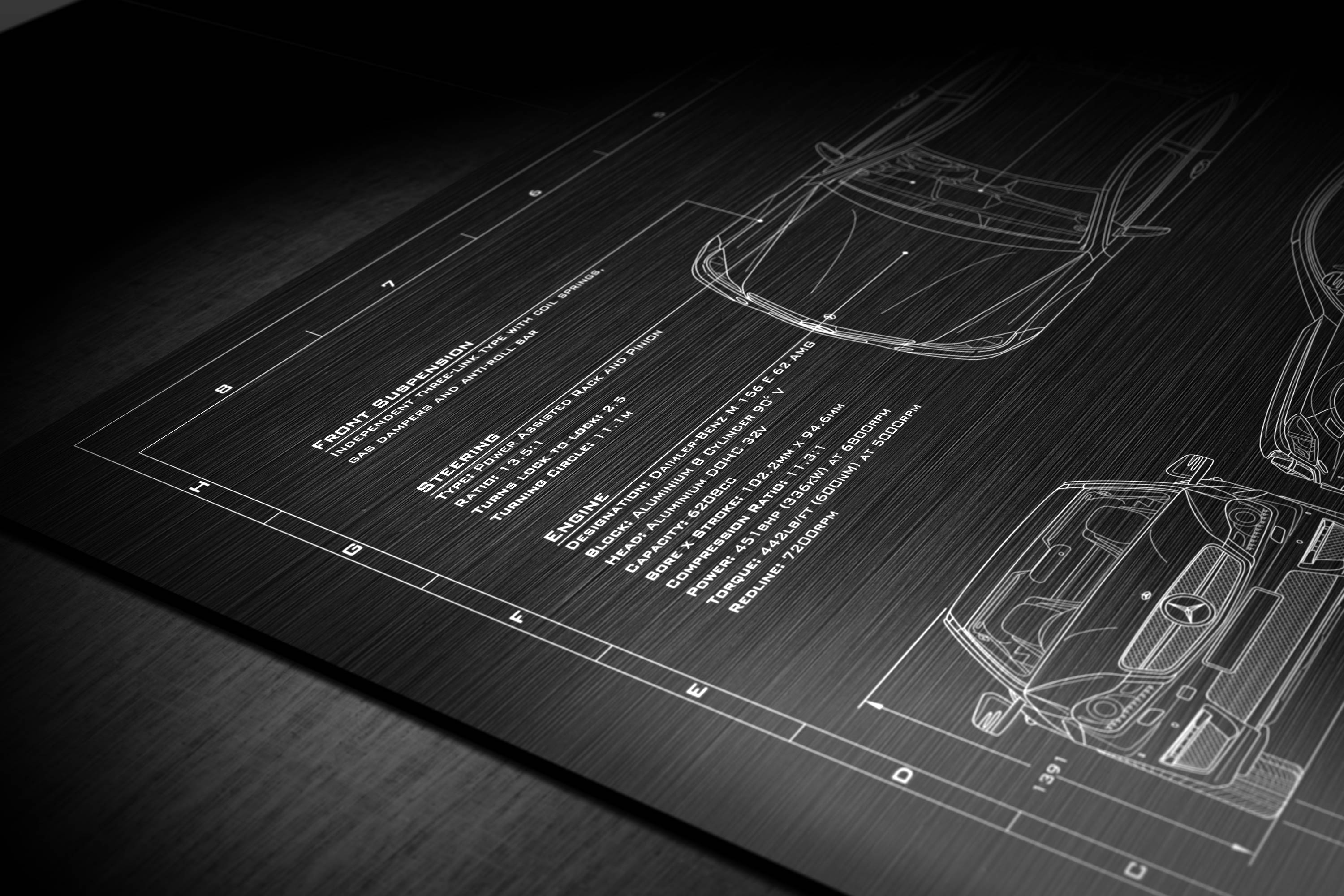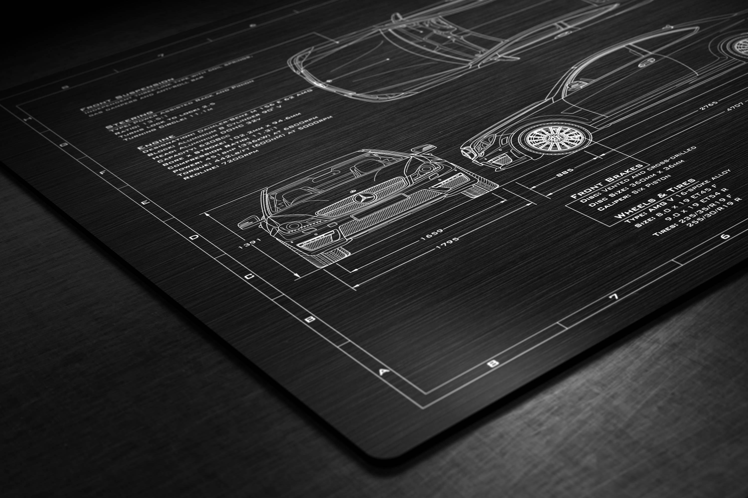 Laser Engraved 2008-2015 C63 AMG Blueprint