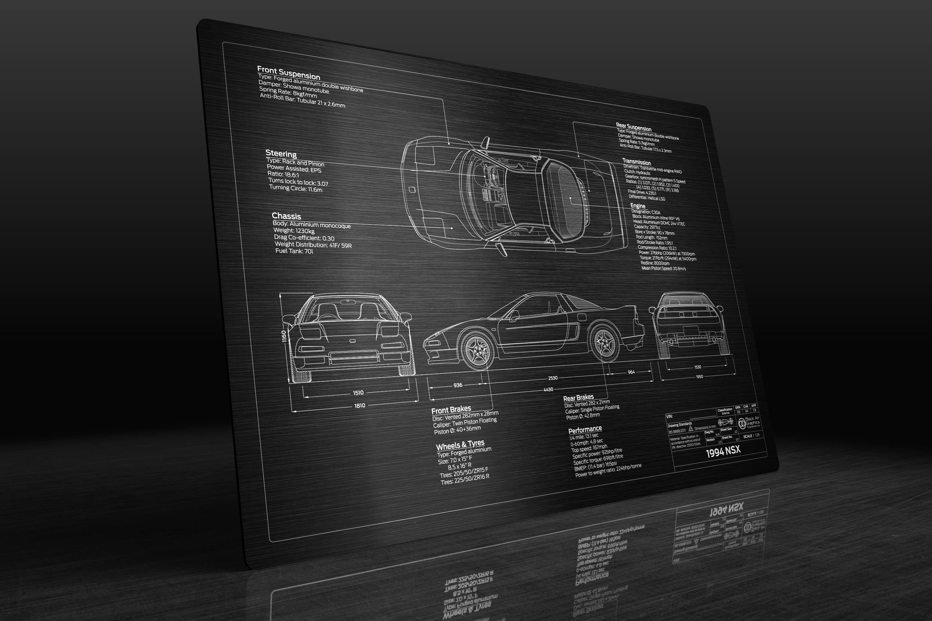 Laser Engraved 1990-2002 NSX Blueprint