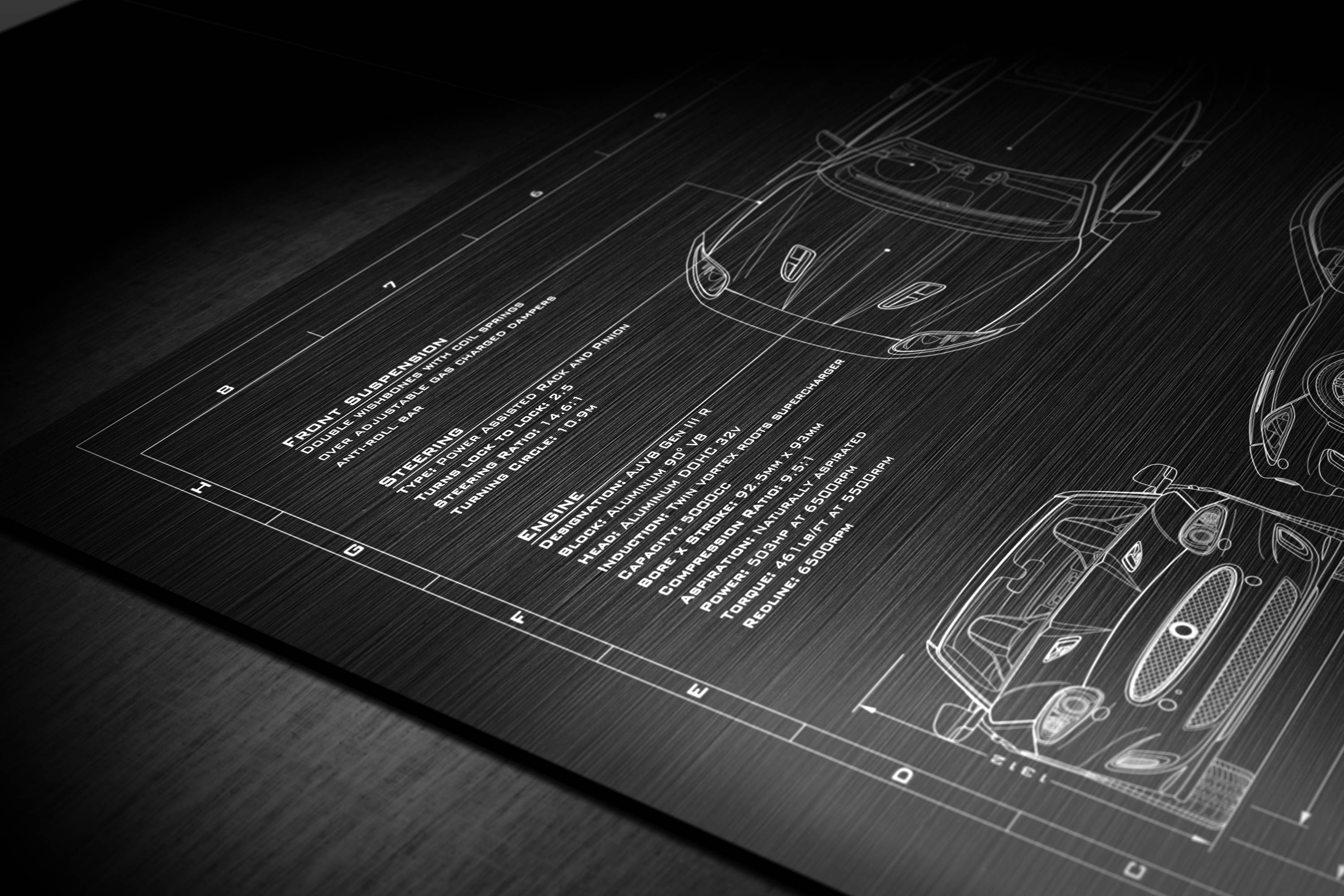 Our signature High Definition Orthographic™ illustrations are 100% original artwork, unavailable anywhere else. Each design begins with a specialist photography session with a real life example to generate the perfect reference images, before being digitally recreated by our talented in house artists to create a uniquely styled technical illustration of unparalleled detail and proportional accuracy.