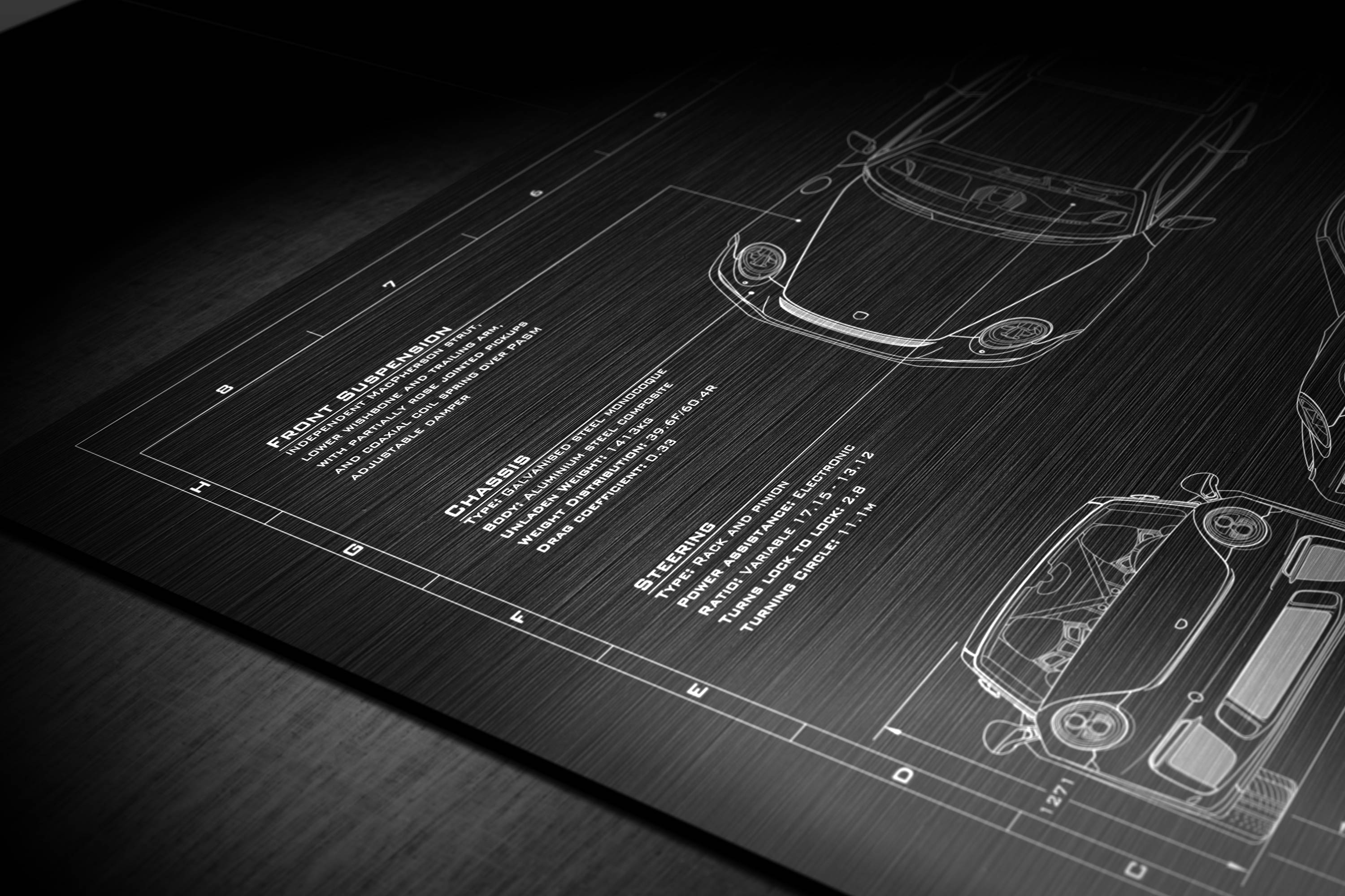 Laser Engraved 2017-2018 911 GT3 Blueprint