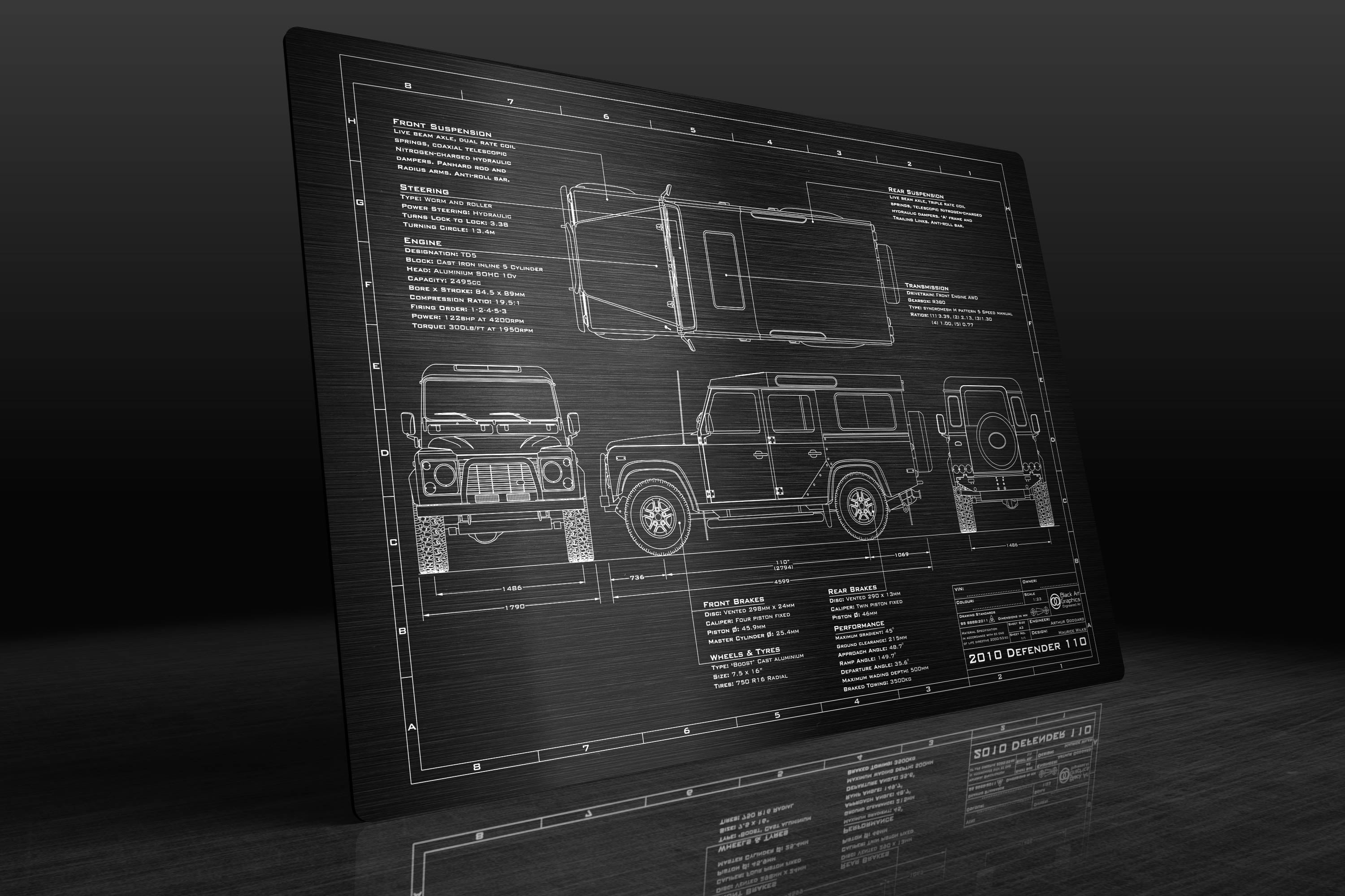 Laser Engraved 1990-2015 Defender 110 Blueprint